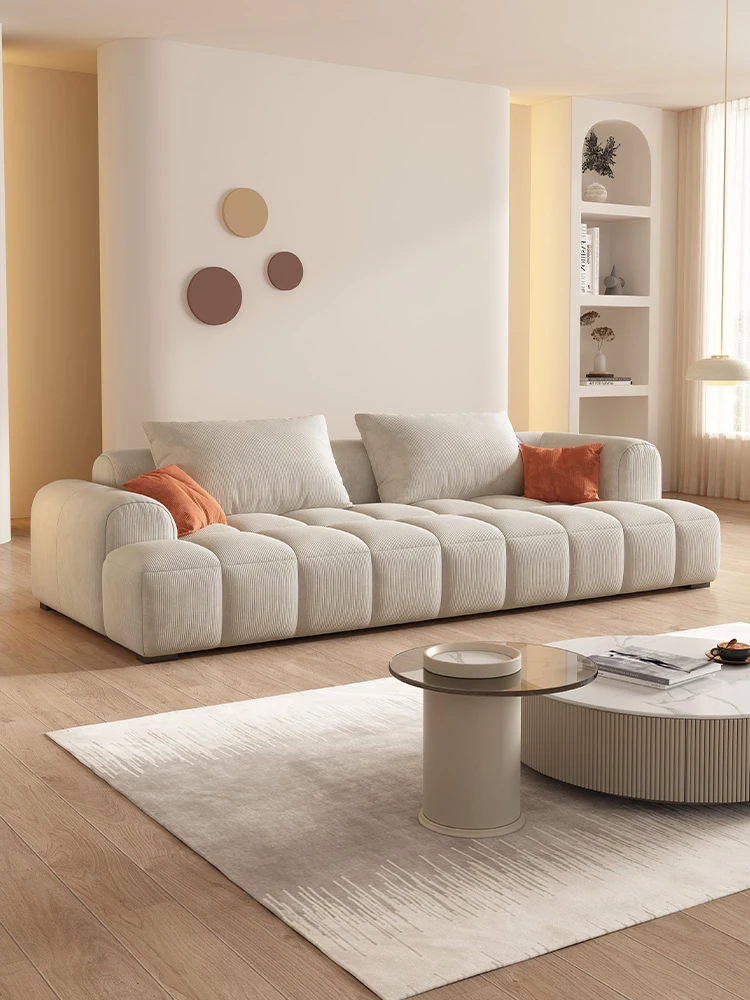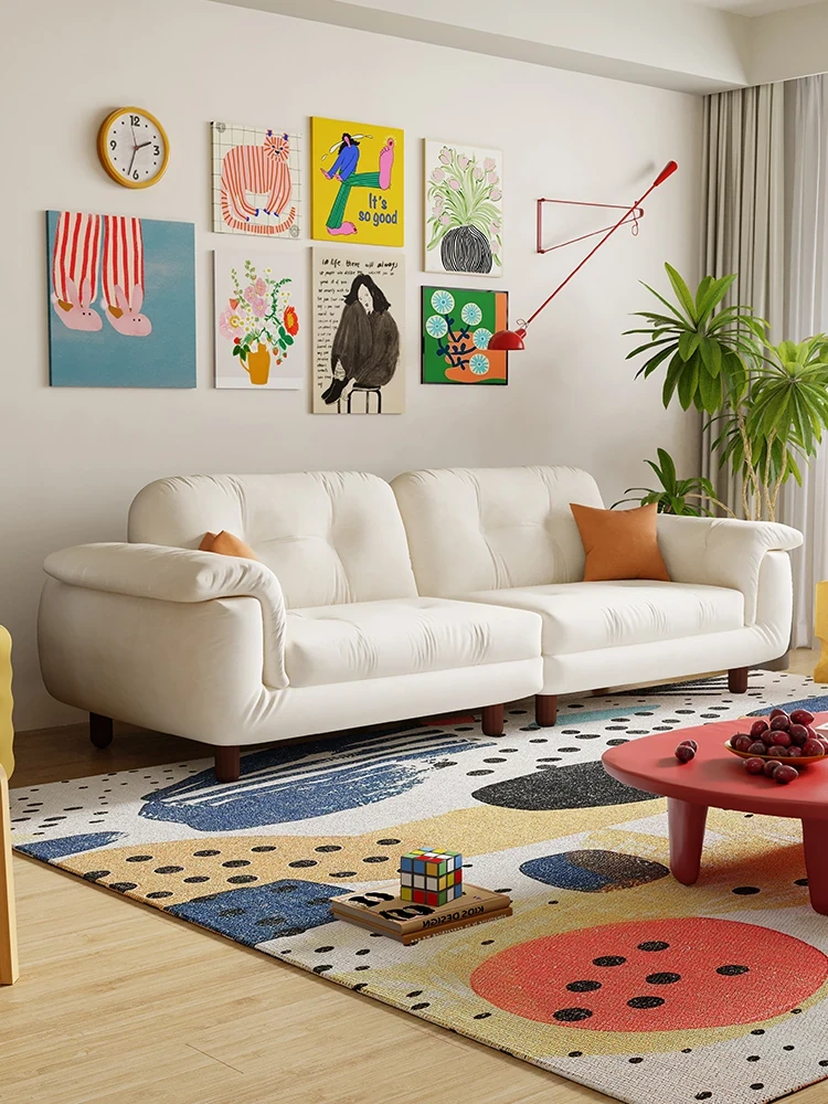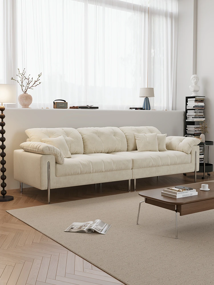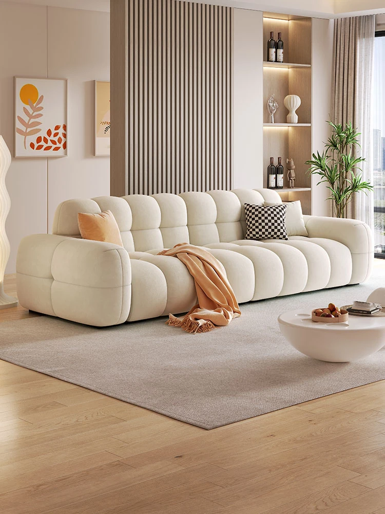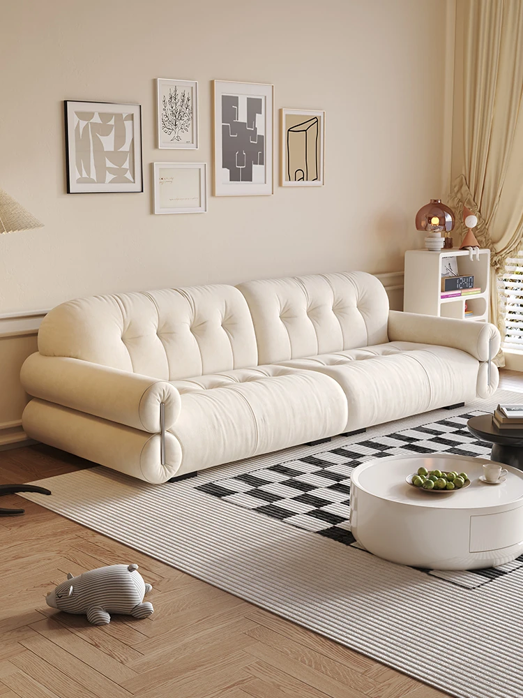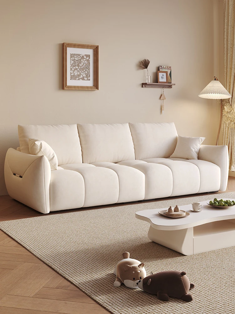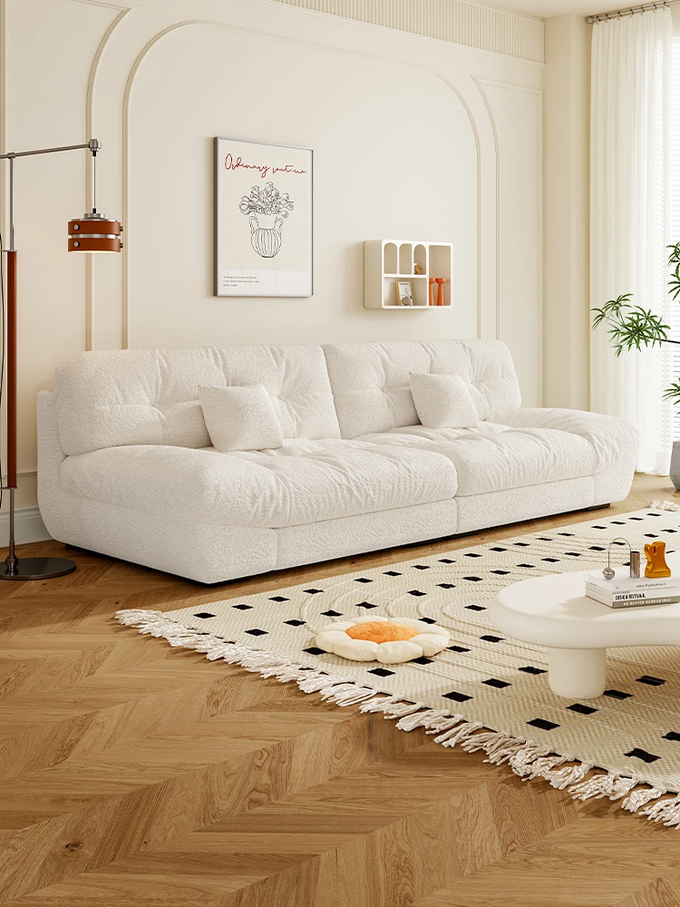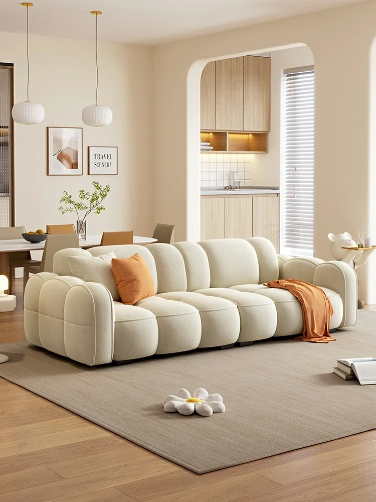 Modern Minimalist French Cream Puff Cloud Sofa for Small Apartments - Plush Fabric Living Room Couch, Perfect for Cozy Spaces!
