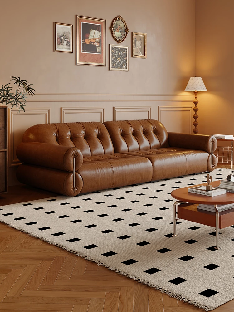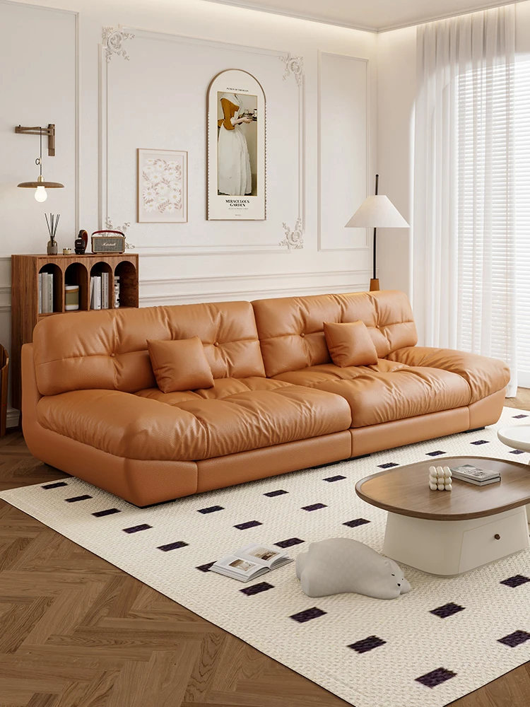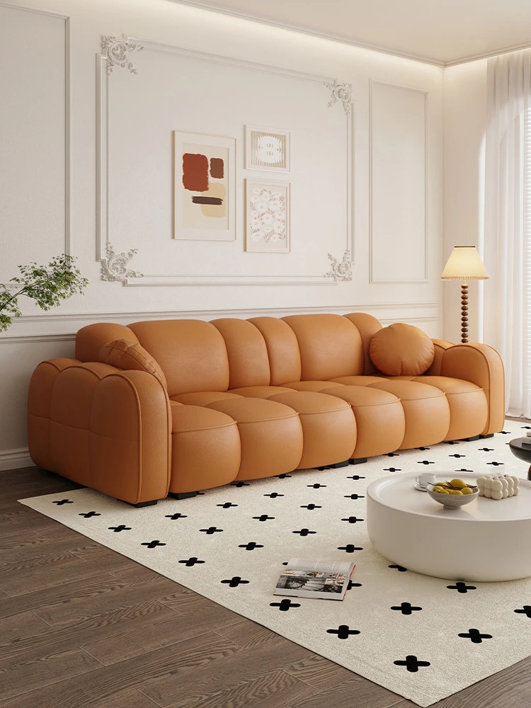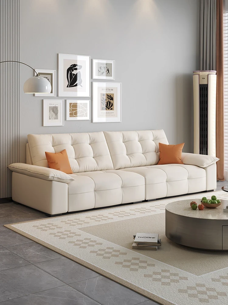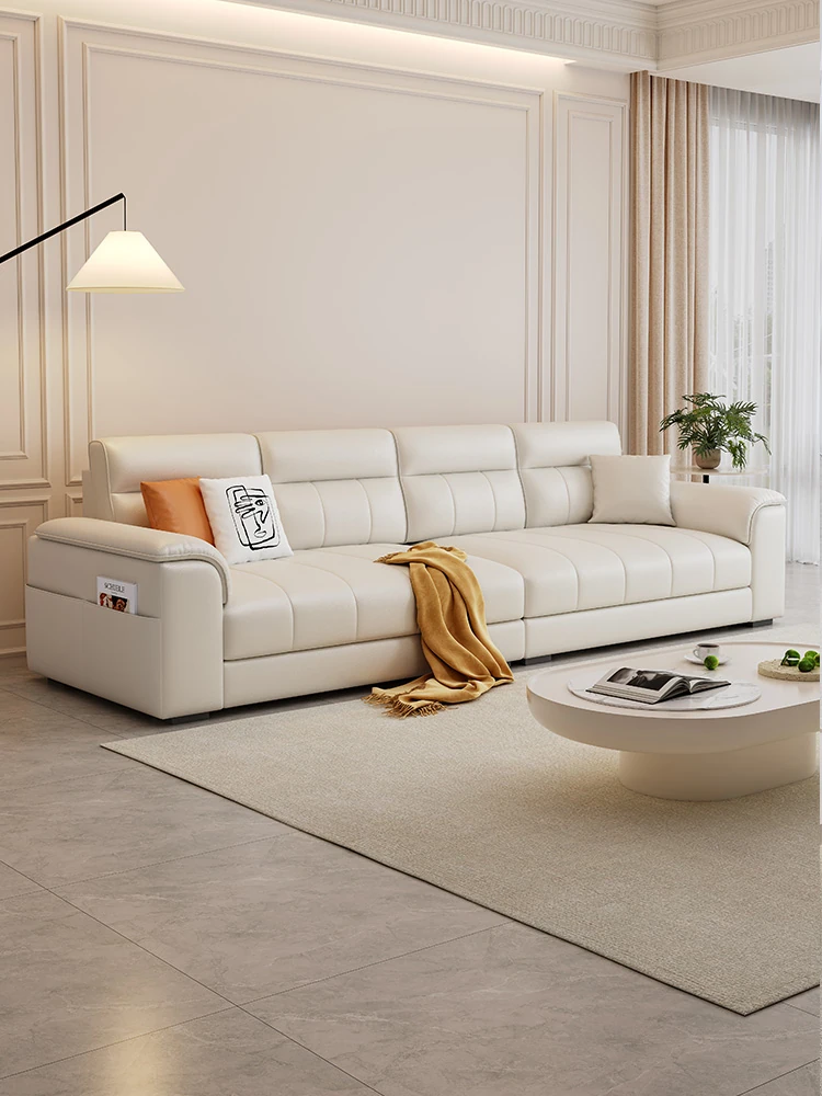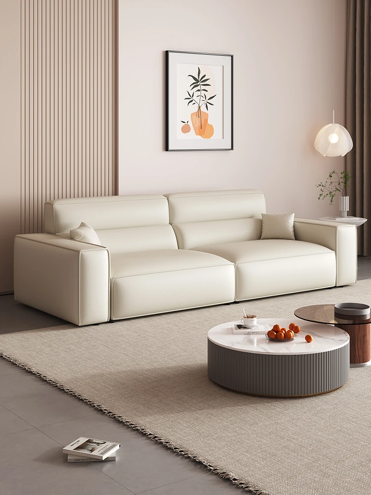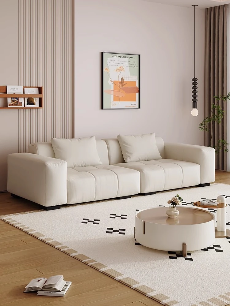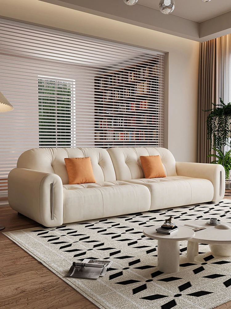 2025 New Creamy Leather Sofa - Modern Minimalist Design for Small Apartments and Airbnb - Stylish Nordic Living Room Furniture
