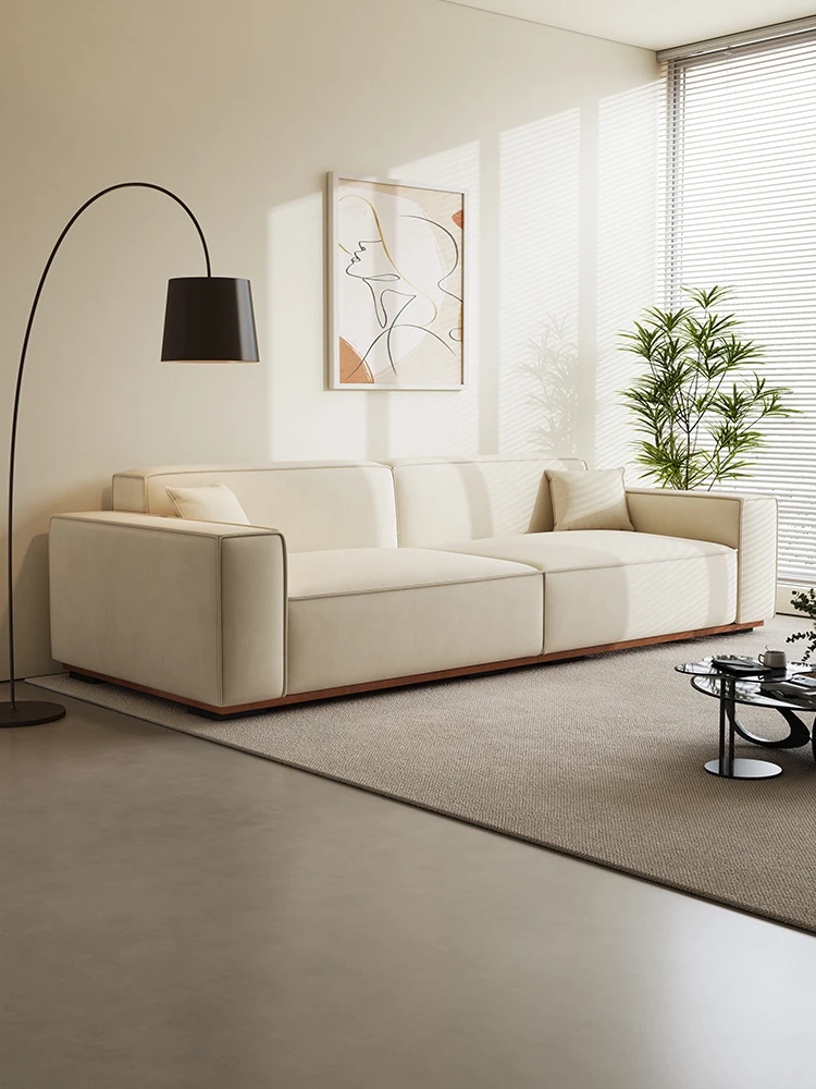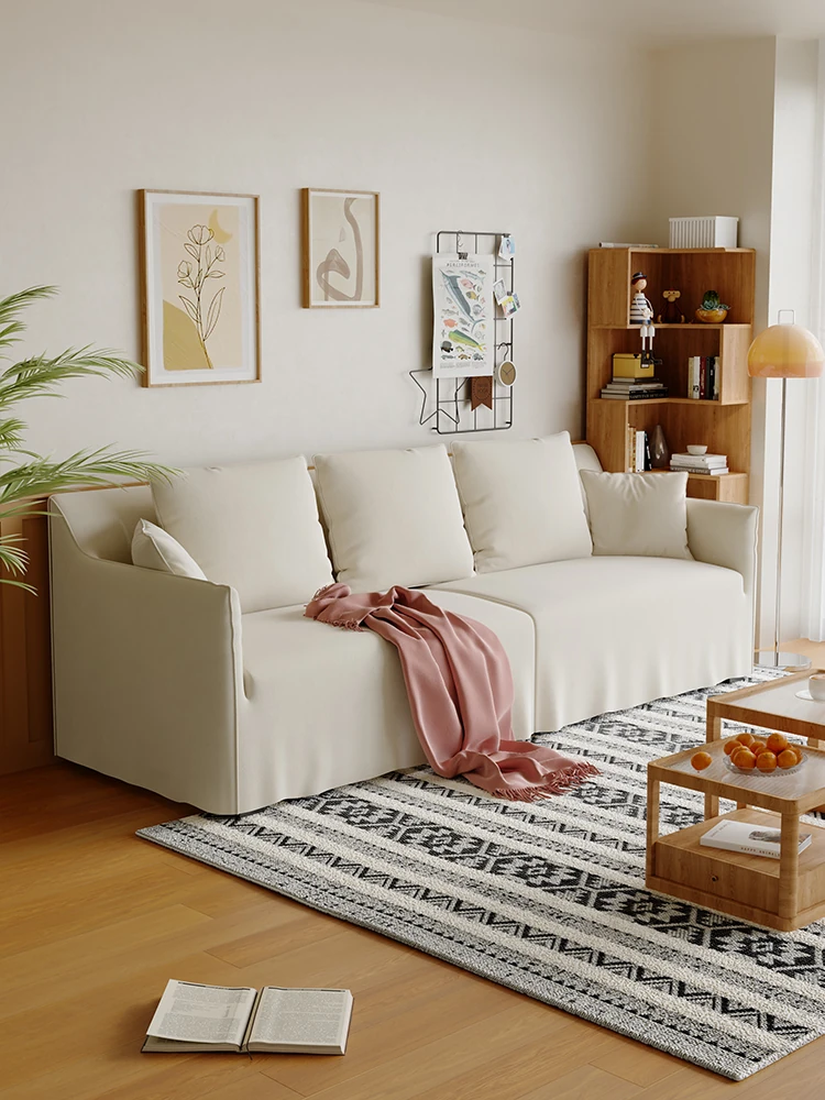 Creamy INS Wooden Cloud Fabric Sofa – Japanese Minimalist Design for Small Living Rooms – Solid Wood Puff Sofa with Straight Lines – Perfect for Cozy Spaces
