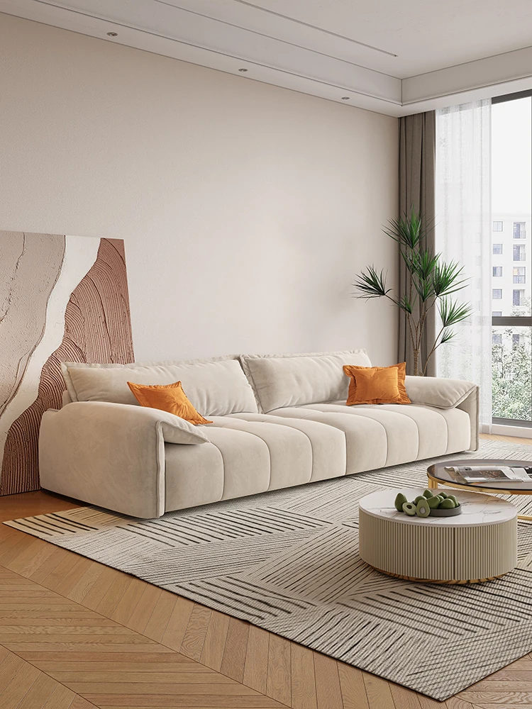Italian Minimalist Luxury Velvet Cloud Sofa - Modern Simple Design for Living Room, Apartment, or Office - Comfortable Seating for 3-4 People