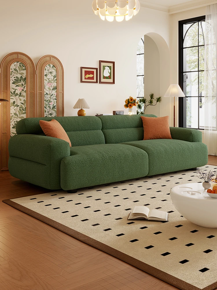 Creamy Minimalist Lamb Fleece Sofa for Small Living Rooms – Affordable Cloud-Style Couch for Apartments and Guesthouses