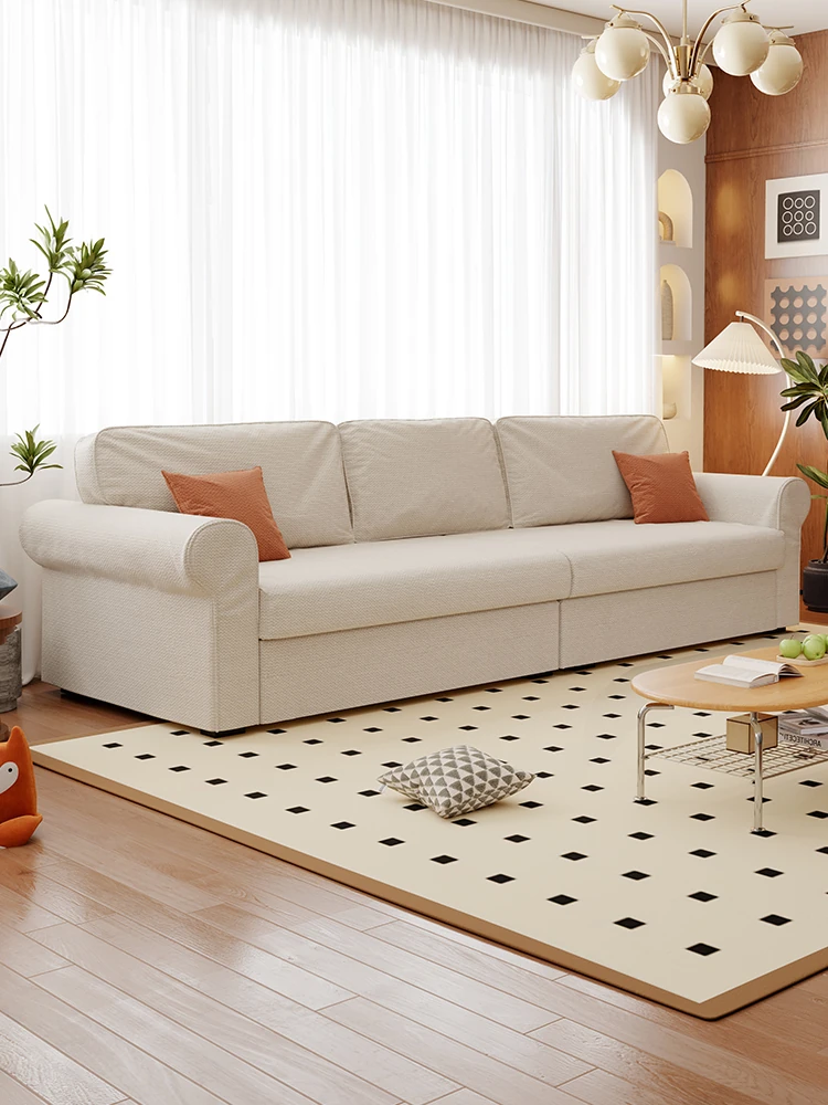 French Cream Upholstered Cat-Proof Sofa for Small Living Rooms – Minimalist Design with Solid Pine Base, Straight-Line 3-Seater for Home Comfort