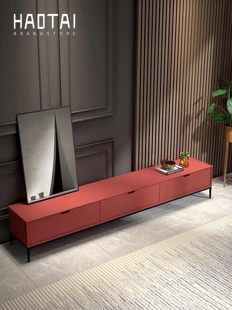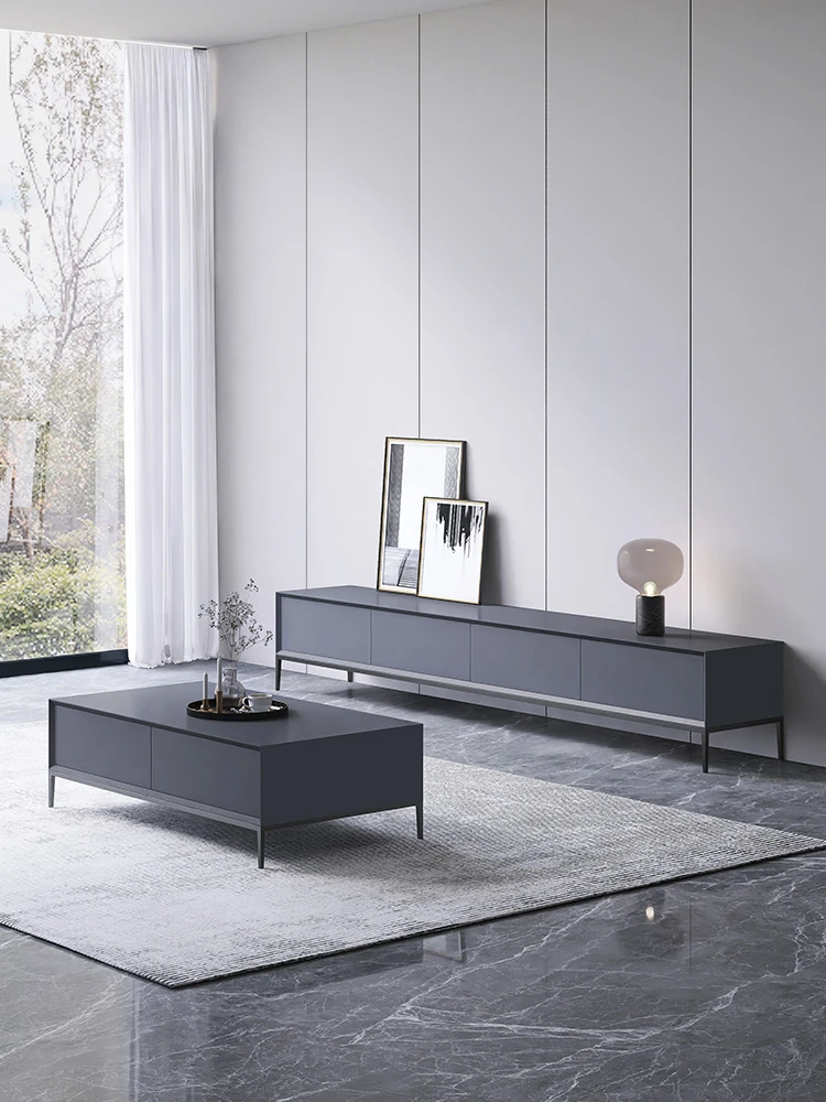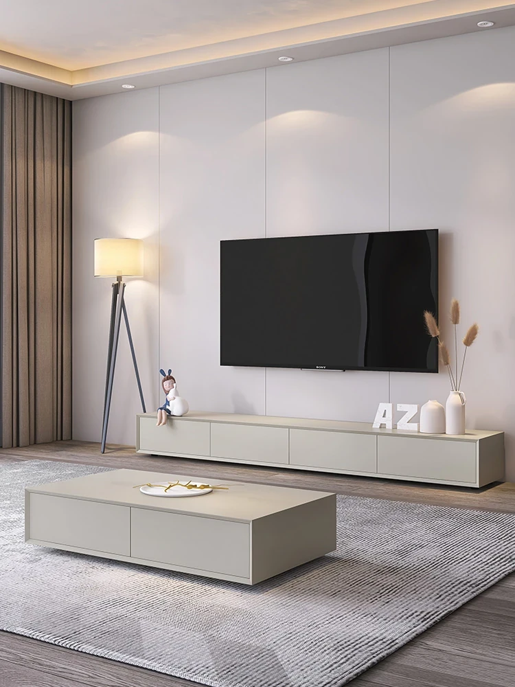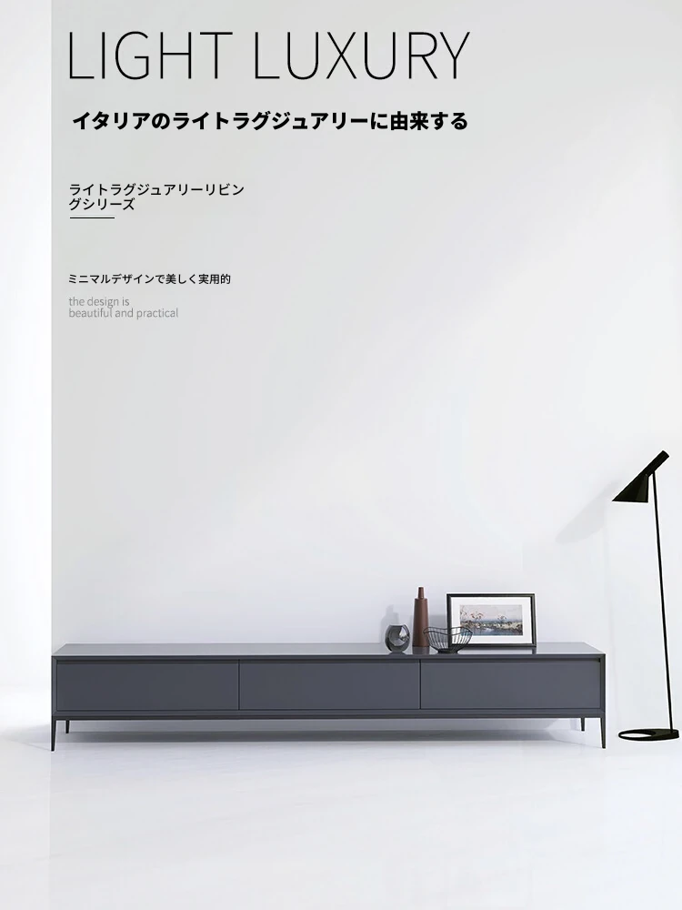 イタリアンミニマルデザインの高級塗装リビングテーブル&テレビキャビネット - 北欧スタイルのシンプルで洗練された無垢材製、軽やかに贅沢なインテリアを演出する映像機器収納家具!