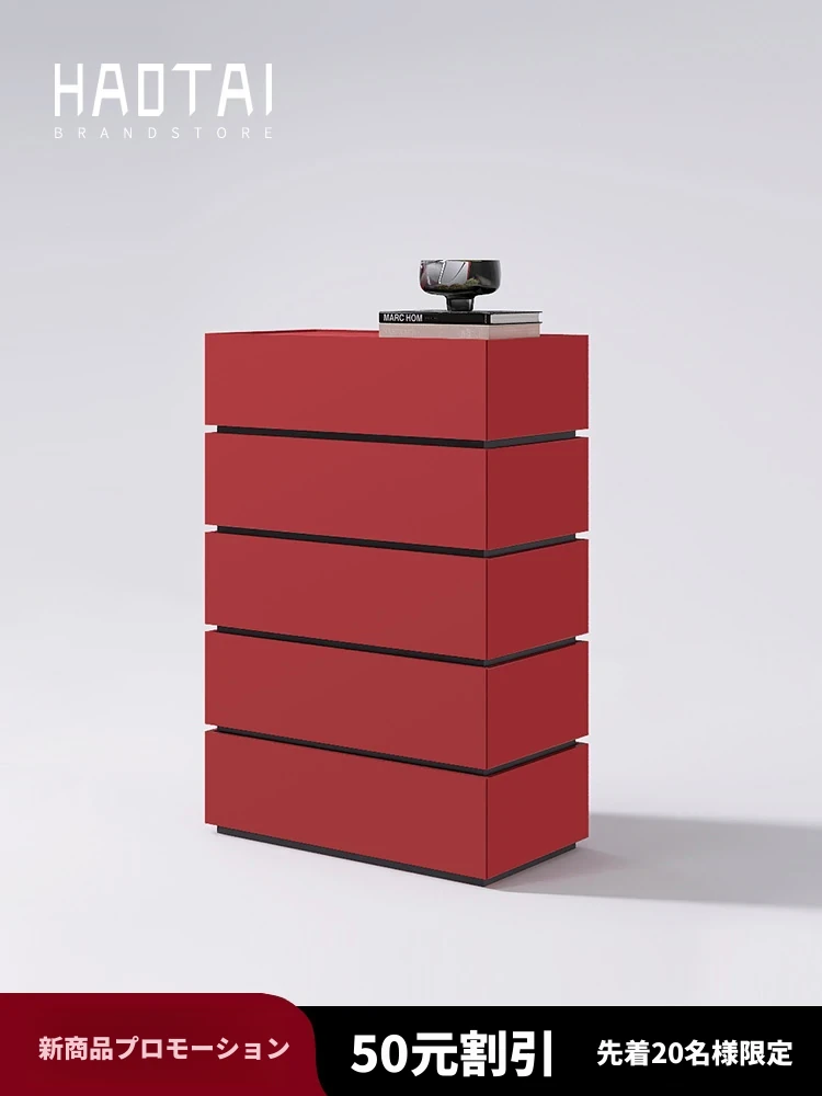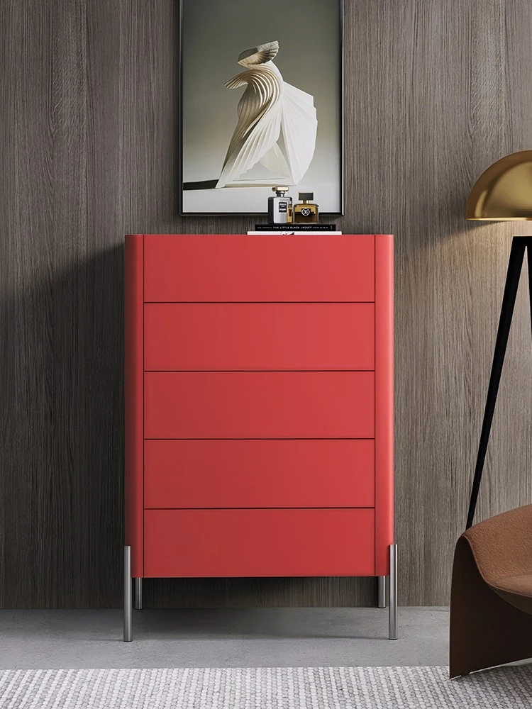 イタリアンミニマルデザインの焼き塗装五斗キャビネット - 北欧スタイルのシンプルでモダンなリビング用無垢材収納キャビネット、寝室のベッドサイドにぴったりの家具。