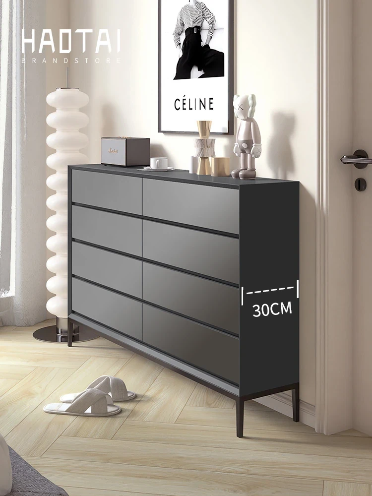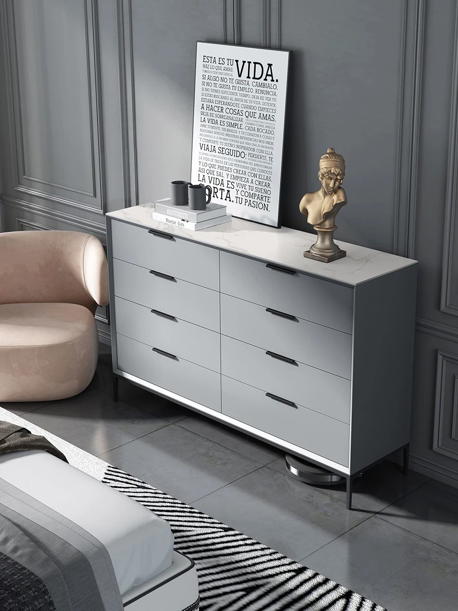 イタリアンミニマリズムの極薄スラブ八段チェスト - モダンでシンプルな家庭用ストレージ、リビングルームやベッドルームのマルチファンクションキャビネット。洗練されたデザインで空間を美しく演出!