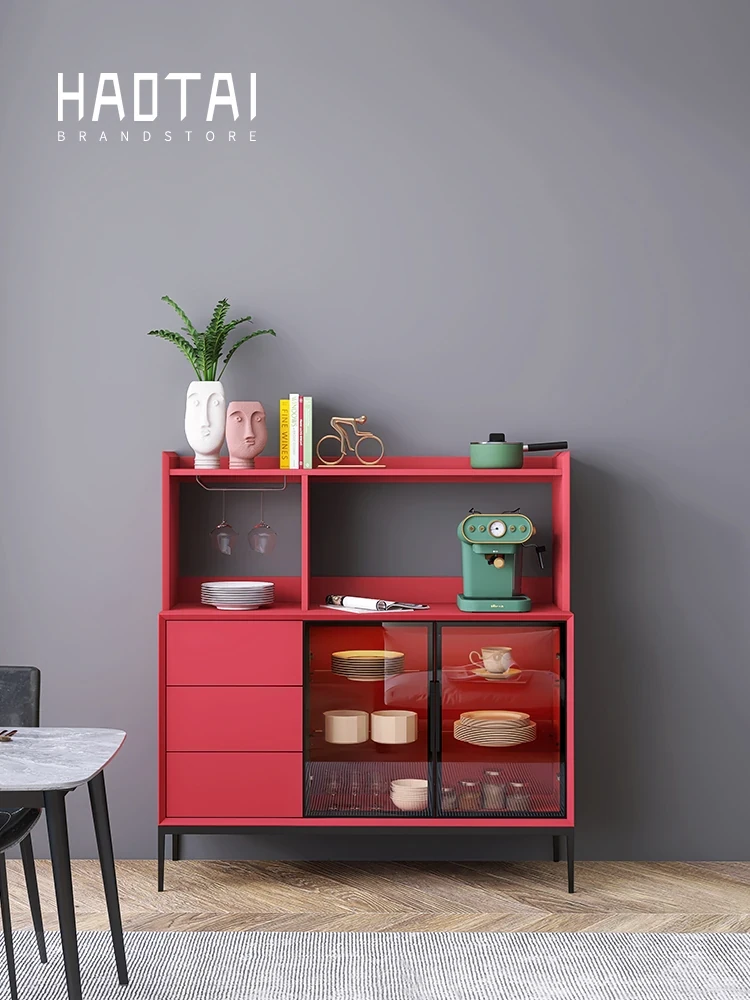 イタリアンミニマルデザインの高級塗装サイドボード!機能的な実木製のマルチユースハイボード、現代的な北欧スタイルで、収納力抜群の食器棚&ティーキャビネット。あなたのリビングルームを洗練された空間に!