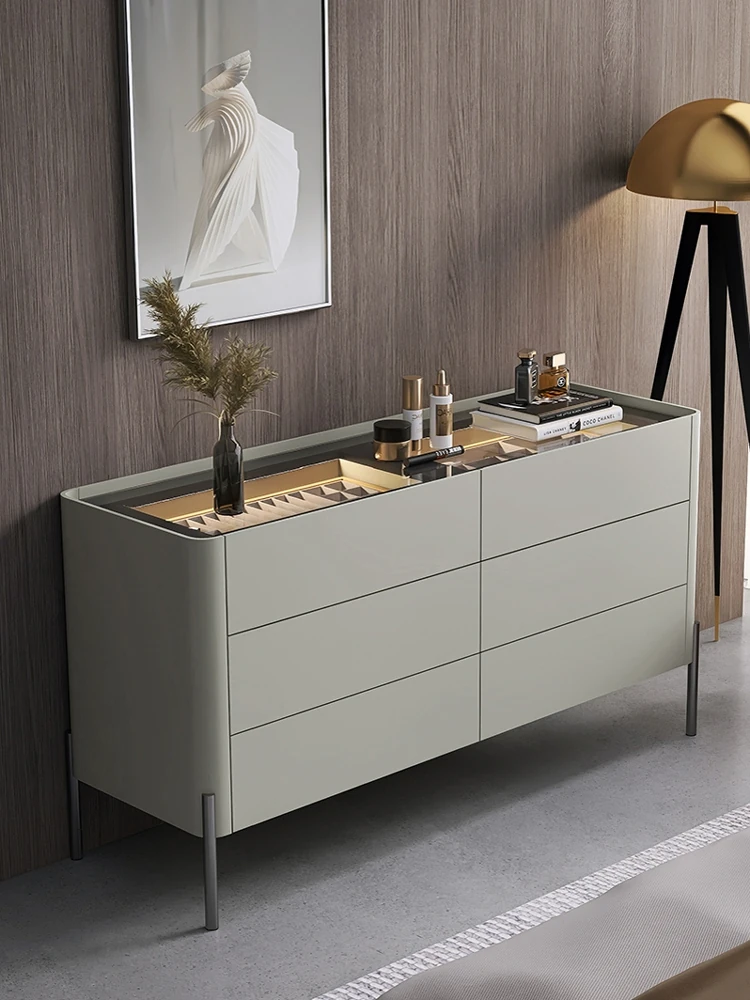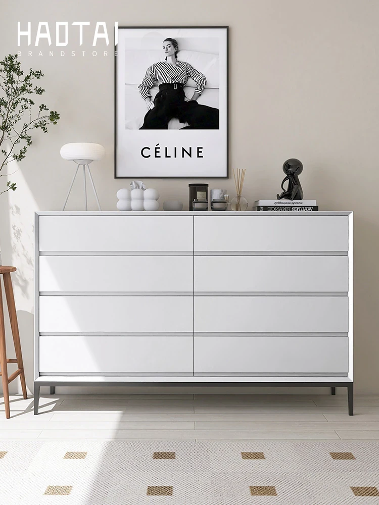 イタリアンミニマルデザインの大容量塗装チェスト、現代的なドレッサーと収納コンビネーション、北欧スタイルのベッドサイドキャビネット。おしゃれで機能的な収納スペースを提供します!