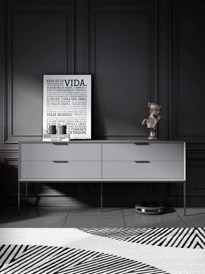 イタリアンミニマリズムのウッド仕上げサイドボード、ラグジュアリーな玄関やモダンなリビングにぴったり!シンプルでスタイリッシュなデザインの収納キャビネット。ティーセットやテレビを美しく収納できる、洗練されたアイテムです。