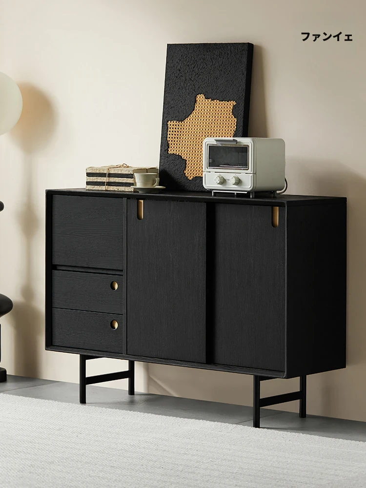 ヴァンヤ家具 半影ダイニングサイドキャビネット 天然木製 ブラック収納キャビネット モダンシンプル 家庭用 リビング収納キャビネット 玄関収納 使いやすさとスタイリッシュさを兼ね備えた一品!