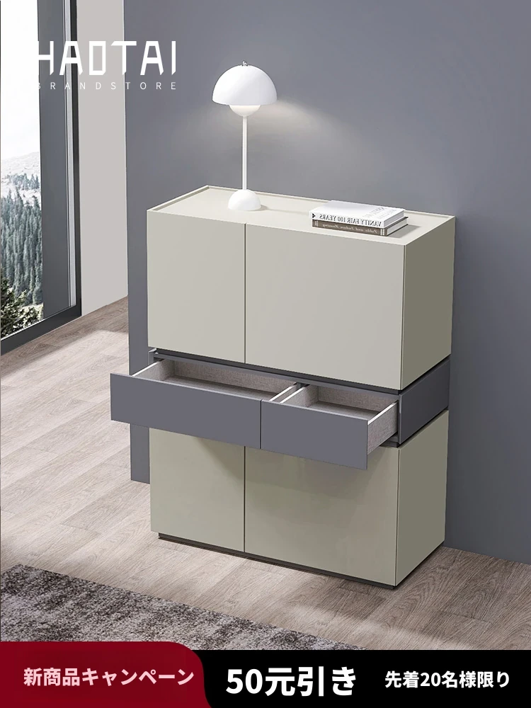 イタリアンミニマリズムの焼き漆シューズキャビネット - シンプルでスタイリッシュな実木製の玄関収納、引き出し付きで便利!モダンなデザインがあなたのエントランスを引き立てます。