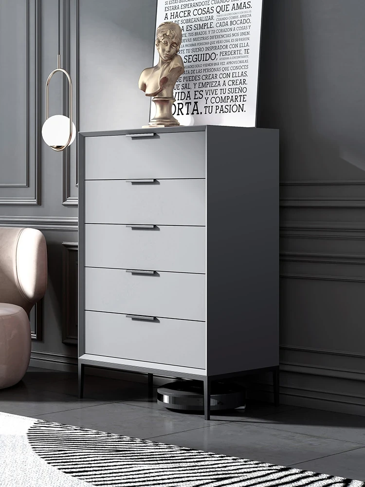 高級感溢れるイタリアンミニマリズムの塗装仕上げ五斗チェスト!現代的なシンプルデザインで、寝室や玄関の収納に最適。おしゃれで機能的、あなたの生活空間を格上げするアイテムです!