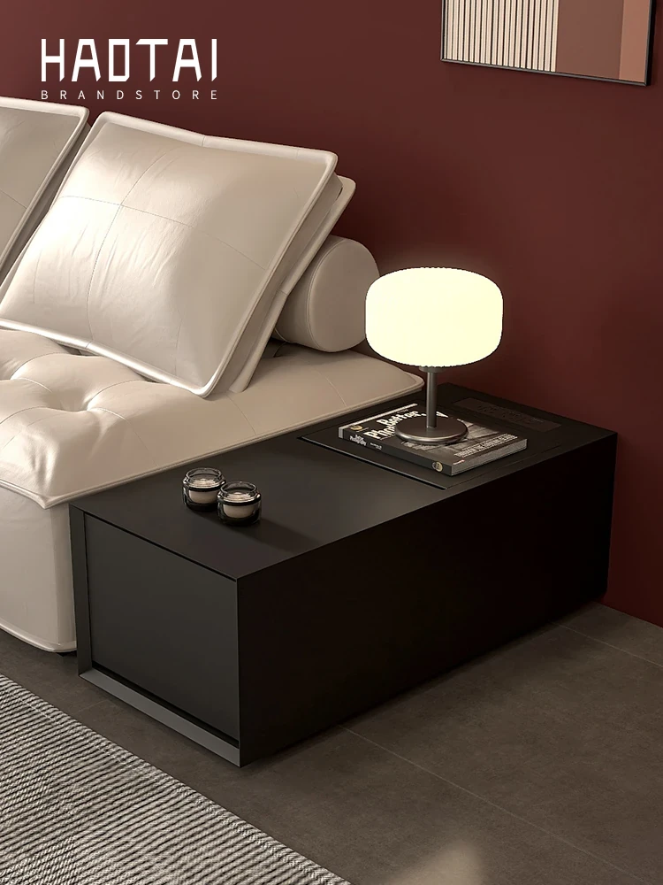 イタリアンミニマリストソファサイドテーブル・隙間収納・リビング用シンプル長方形・ウッド仕上げ・便利なアームチェスト!おしゃれで機能的なデザインで、あなたのリビングをスタイリッシュに演出します。
