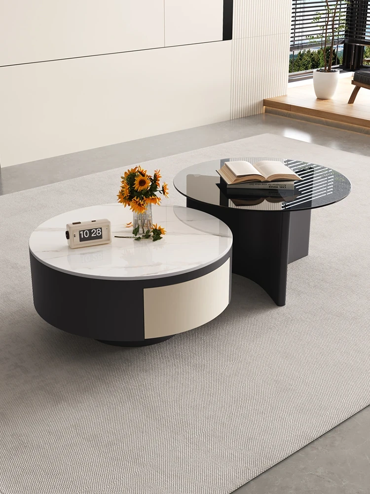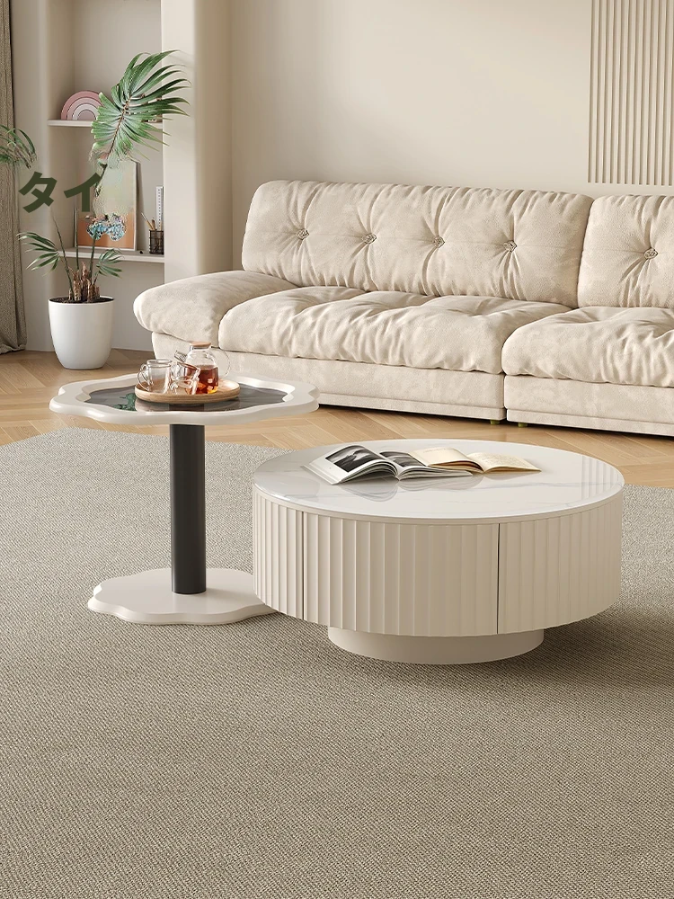 現代的ミニマリストテクノロジー石製コーヒーテーブルセット、ラグジュアリー感漂うコンパクトなリビングに最適!自吸機能付きで収納も充実、クリーム風スタイルのティーテーブルでおしゃれな空間を演出します。