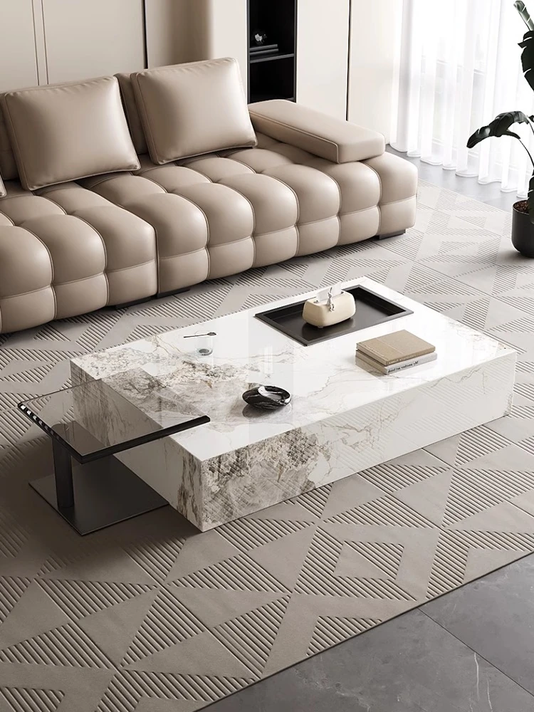 イタリアンラグジュアリー 厚手の岩板製フロアコーヒーテーブル モダンな小型リビングに最適なデザイナーズスタイル 強化ガラスのサイドテーブル