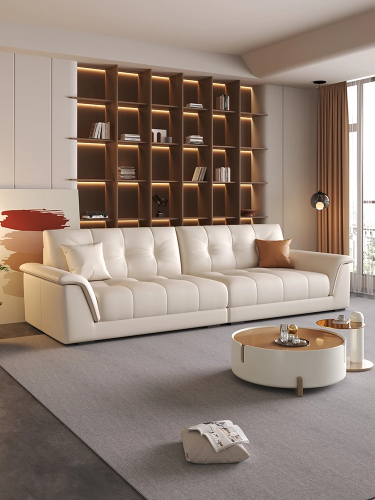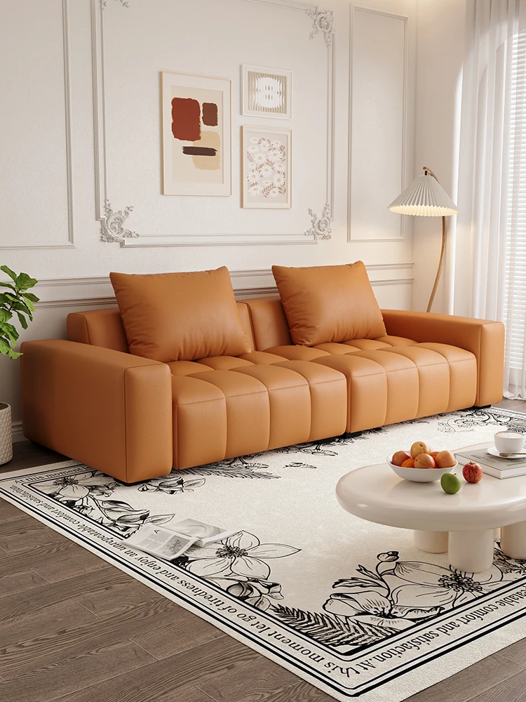 2025 New Anti-Soil Cat Scratch Resistant Large Black Tiger Leather Sofa - Modern Minimalist Design for Small Living Rooms, Perfect for Stylish Spaces!