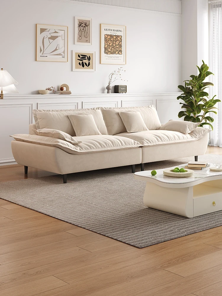 Luxury Cream Velvet Jelly Sofa - French Style Creative Cloud-Shaped Fabric Sofa for Small Apartments and Living Rooms, Perfect for Cozy Spaces