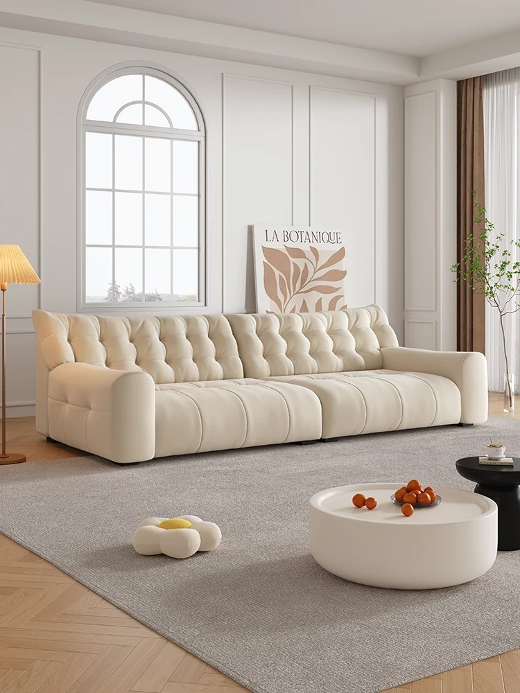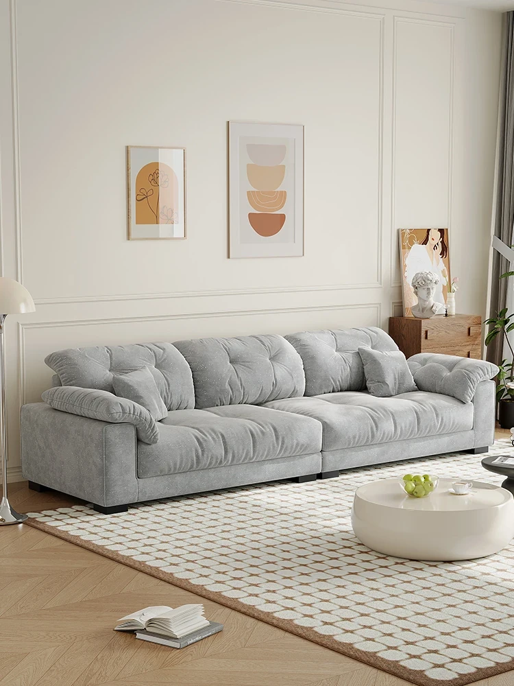 Creamy Cotton-Linen Biscuit Sofa - Perfect for Small Apartments and Cozy Living Rooms, Featuring Stylish Cloud Puff Design for Home Comfort