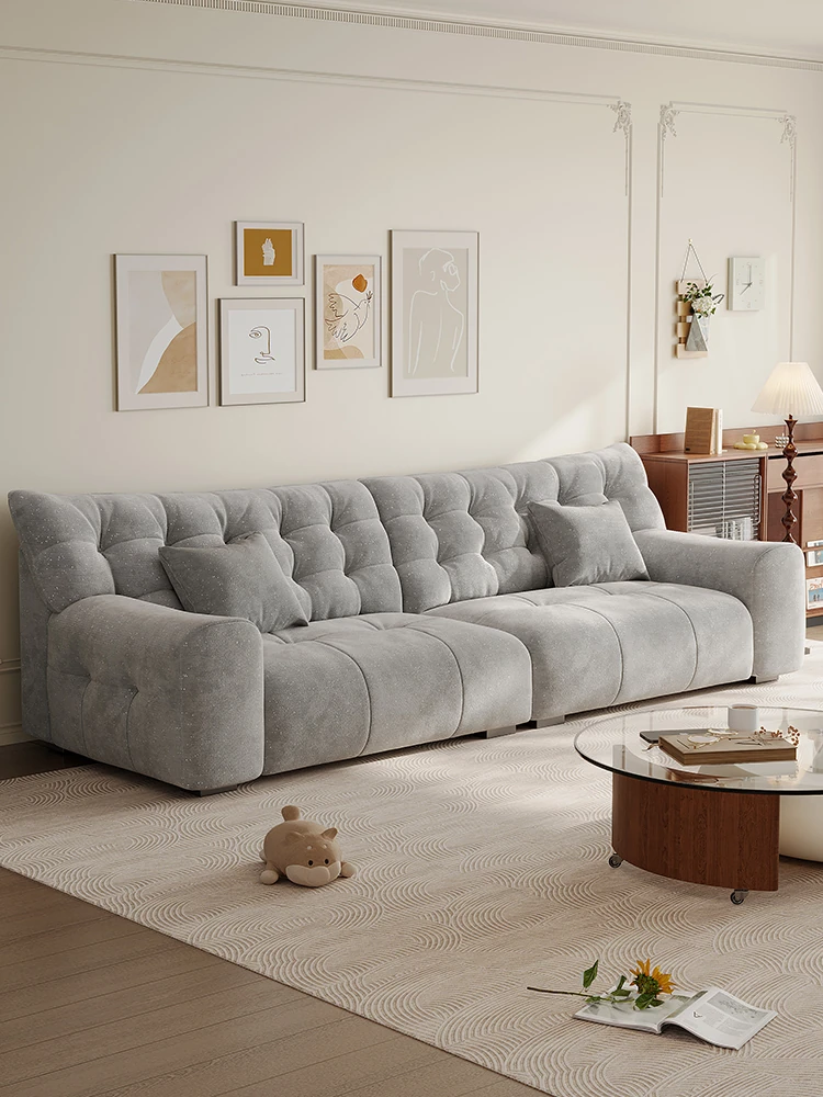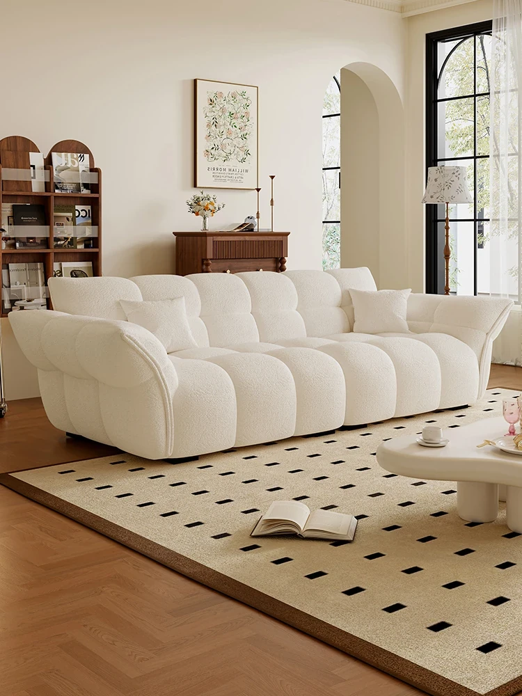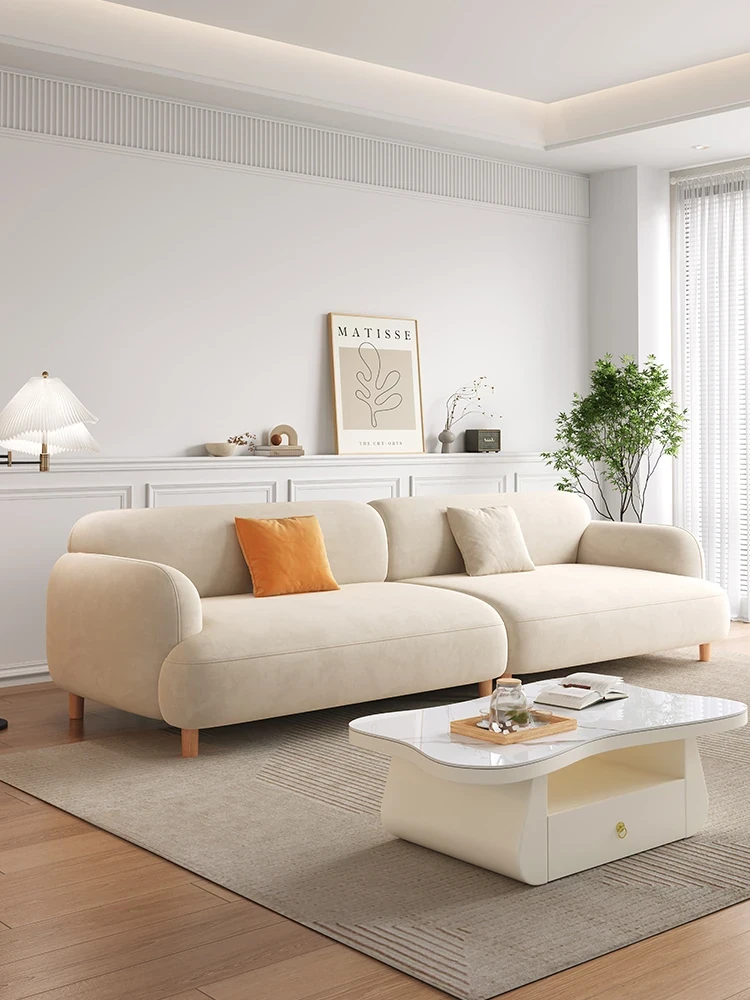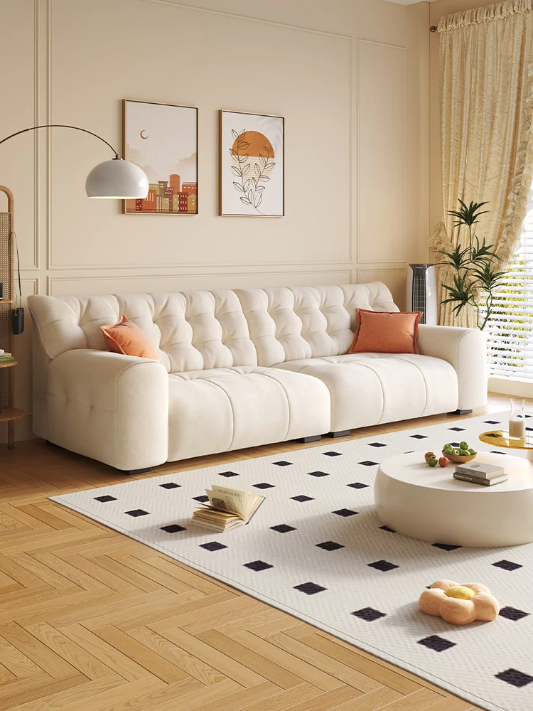French Cream Puff Marshmallow Fabric Sofa for Small Living Rooms - Modern Minimalist Cloud Sofa with Cat Scratch Resistance