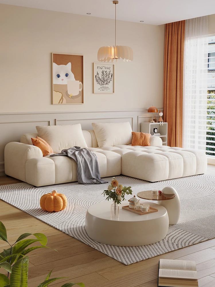 Cream Puff Marshmallow Cat Scratch-Proof Sofa - Perfect for Apartments and Small Living Rooms, Modular Design with Piano Key Aesthetic