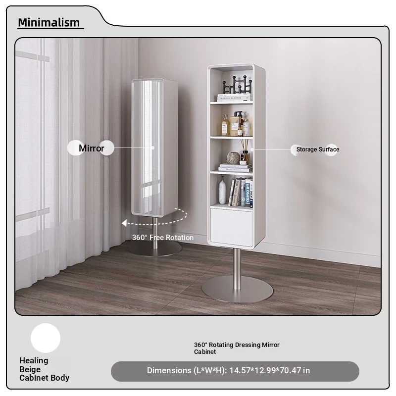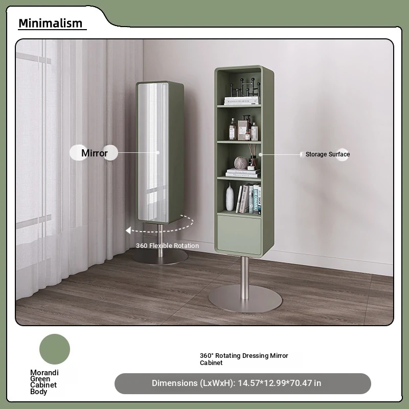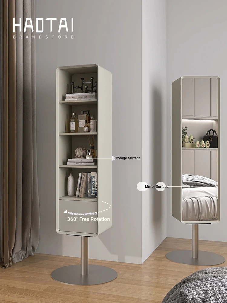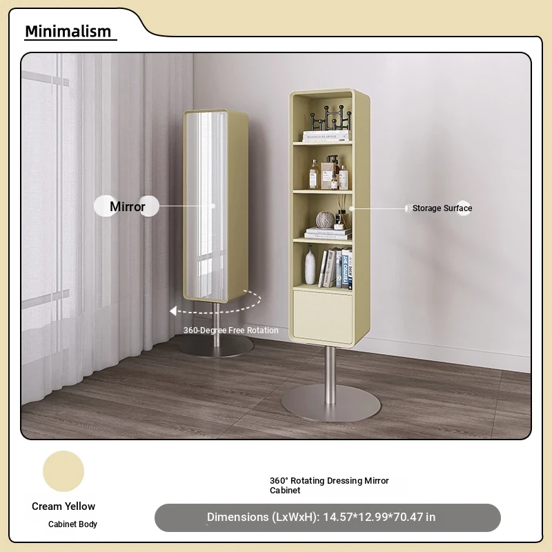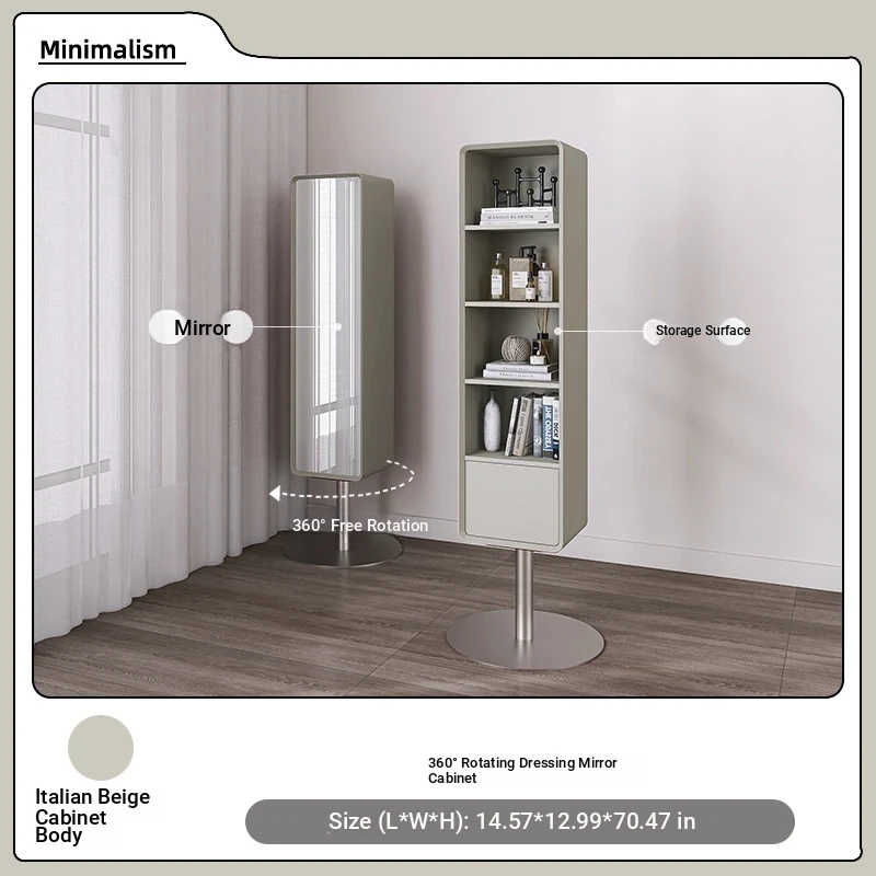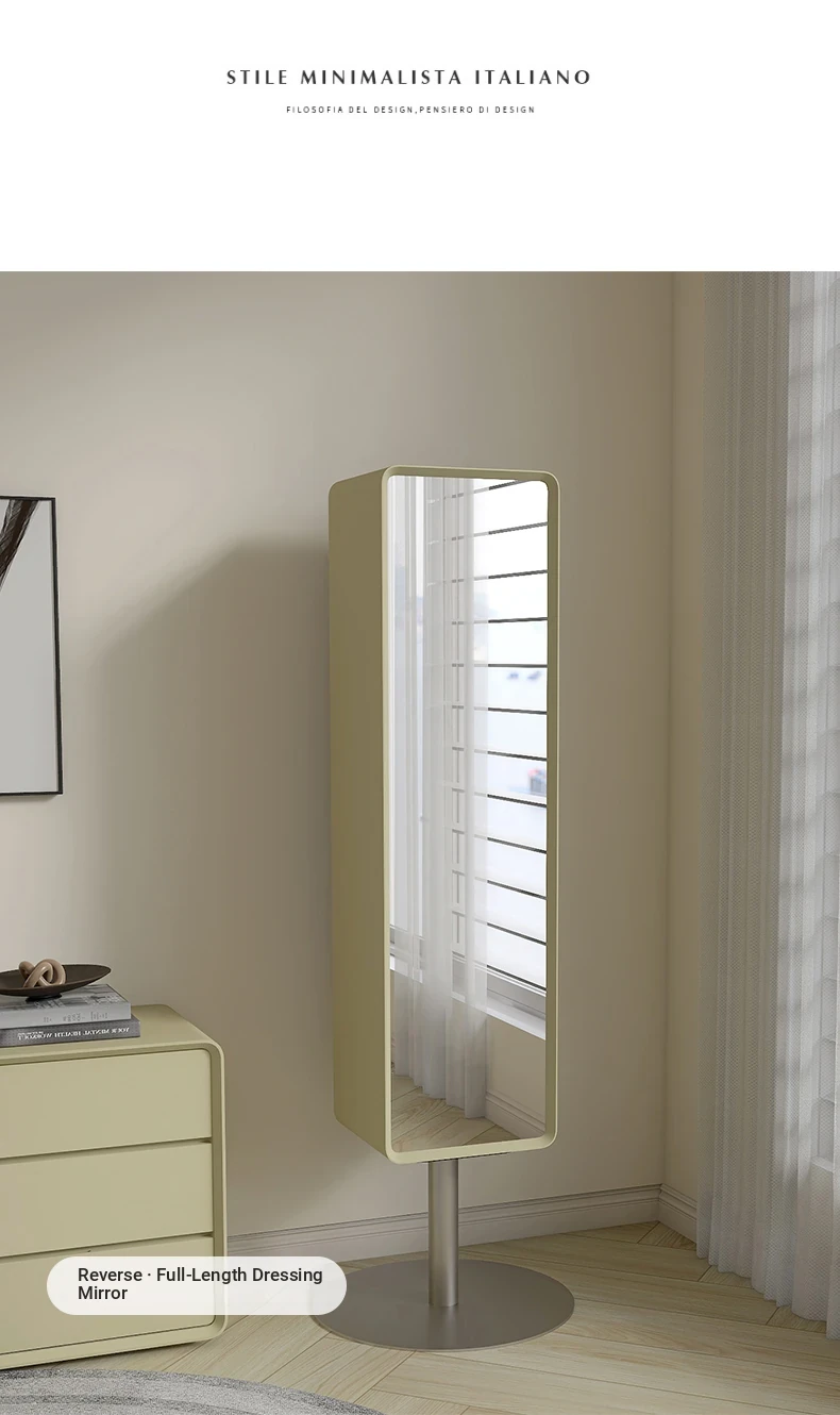 All-Natural Solid Wood Rotating Full-Length Mirror with Storage Rack - Stylish Minimalist Dressing Mirror for Home Use, Perfect for Bedrooms and Outfit Try-Ons