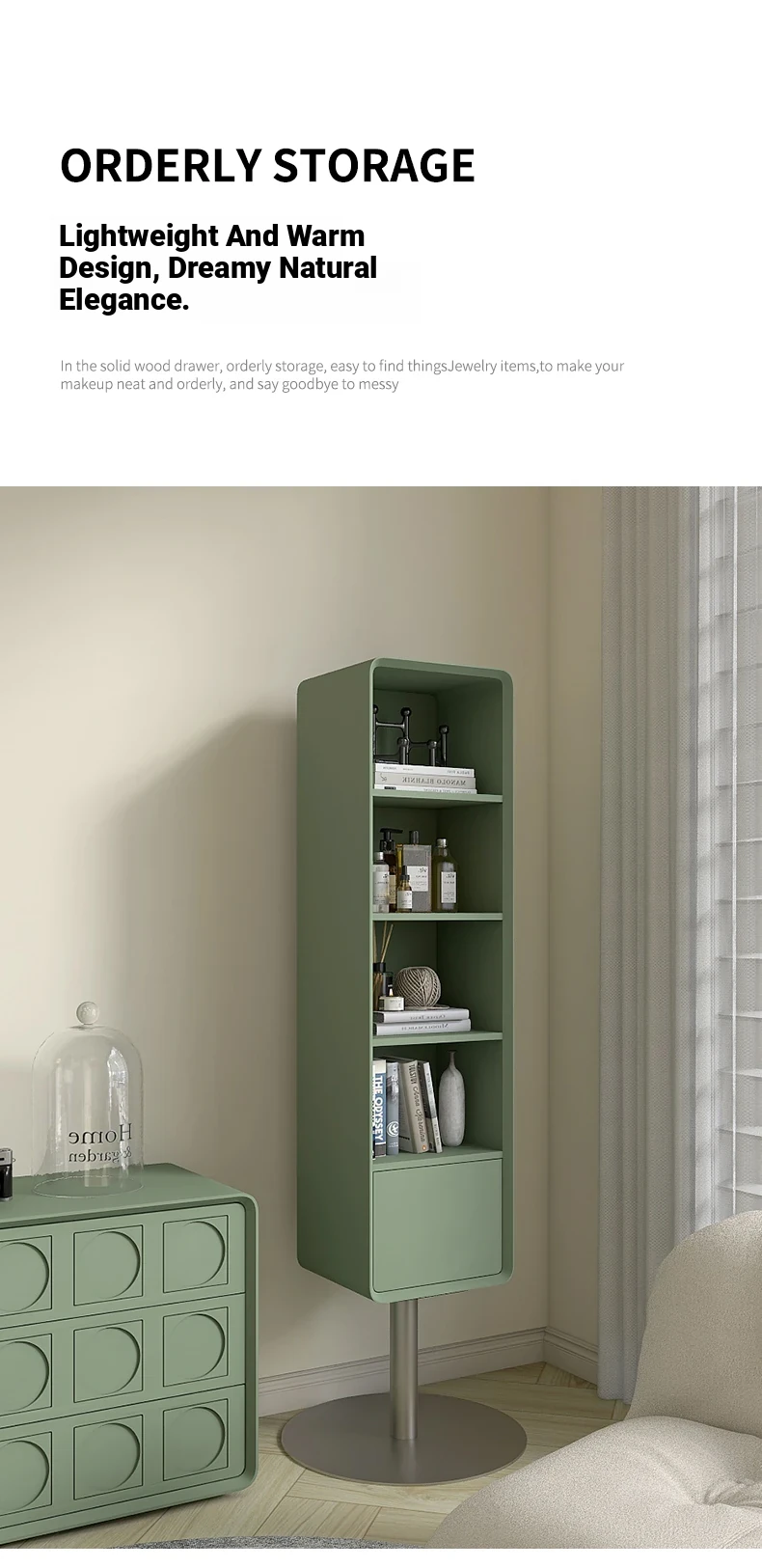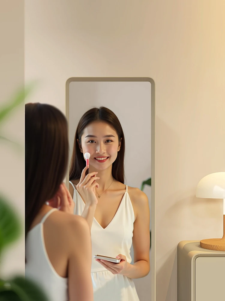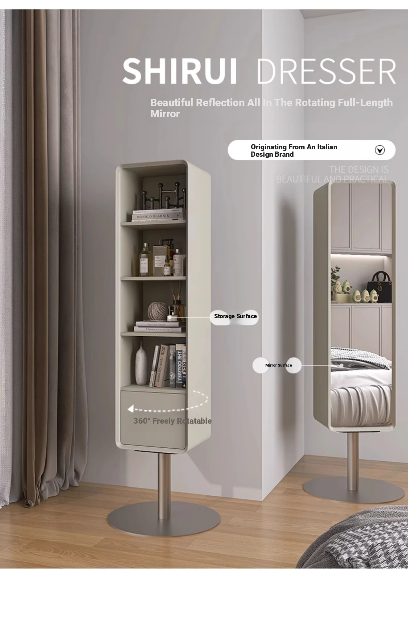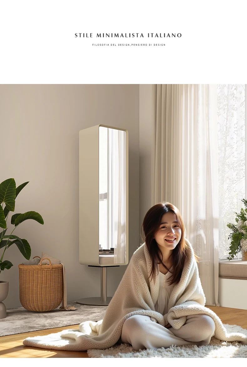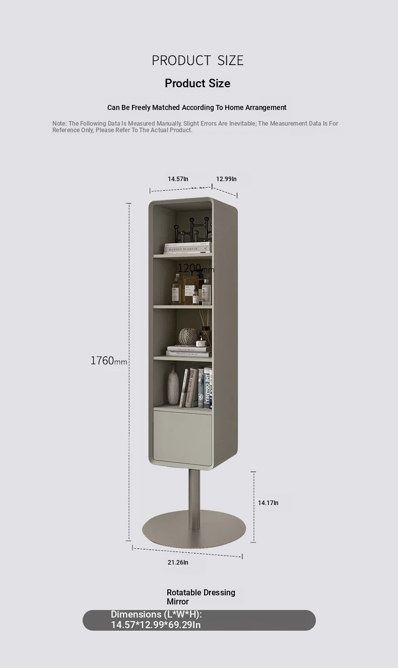 All-Natural Solid Wood Rotating Full-Length Mirror with Storage Rack - Stylish Minimalist Dressing Mirror for Home Use, Perfect for Bedrooms and Outfit Try-Ons