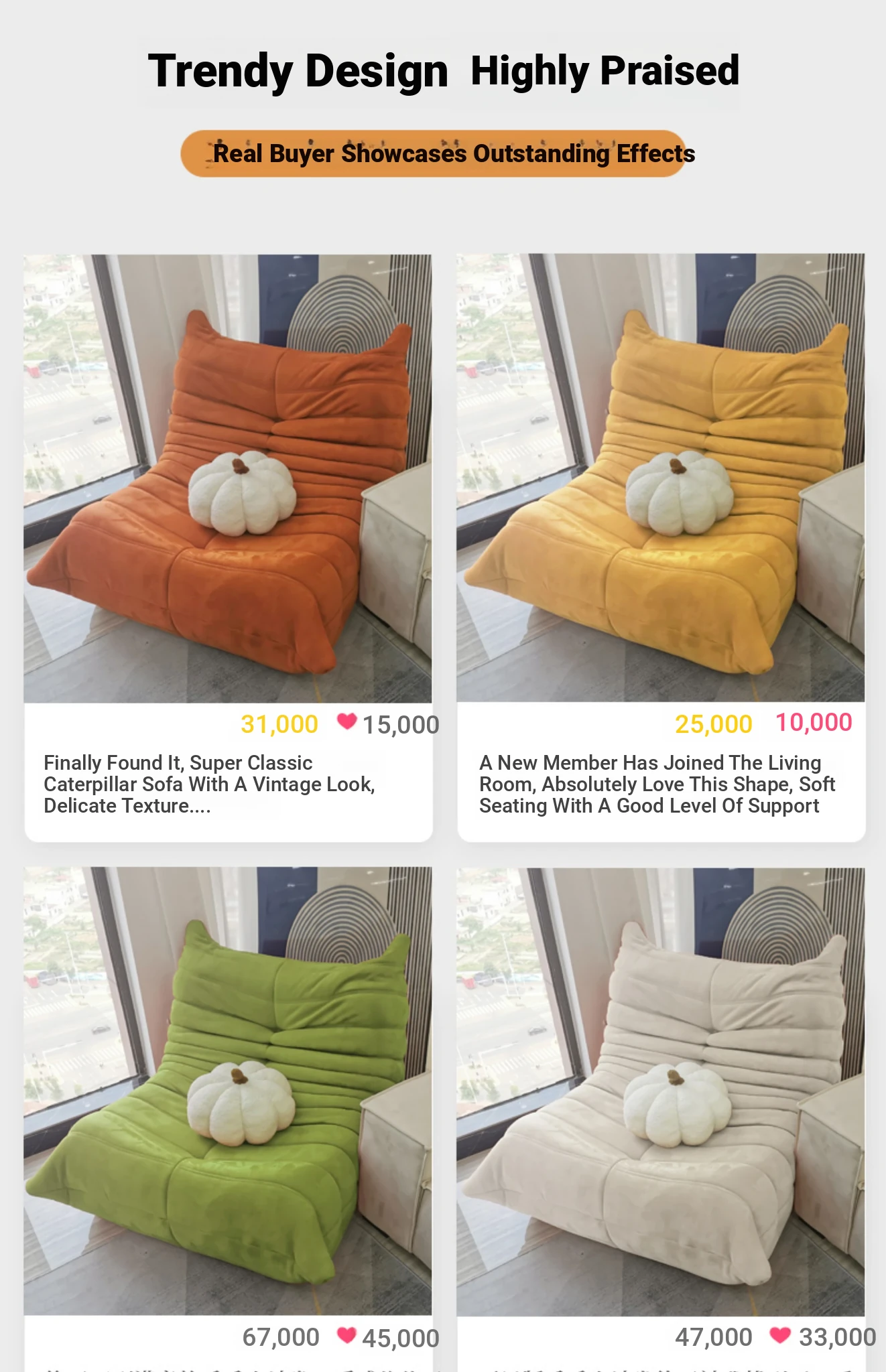 Italian Minimalist Luxury Caterpillar Sofa - Cozy and Chic Lounge Chair for Living Room or Balcony, Ready-to-Install, Trendy Instagram Style