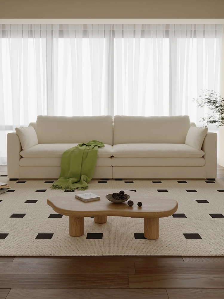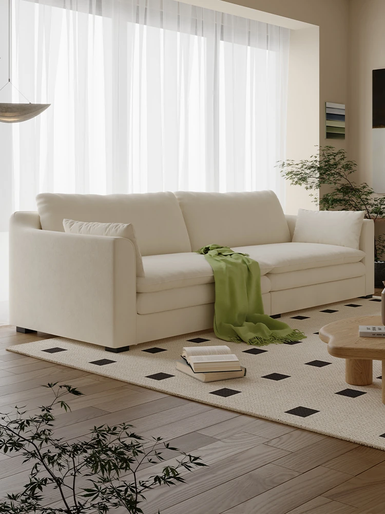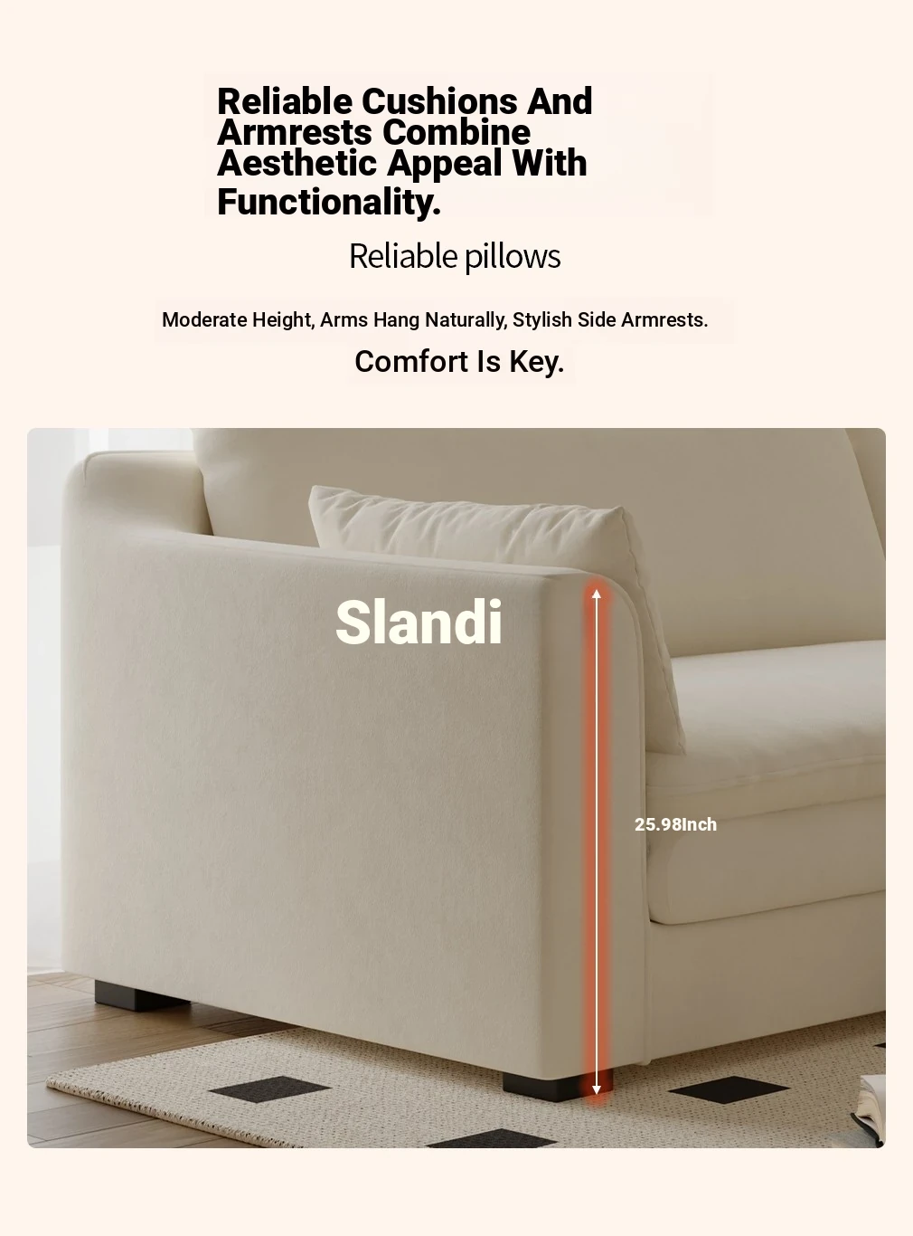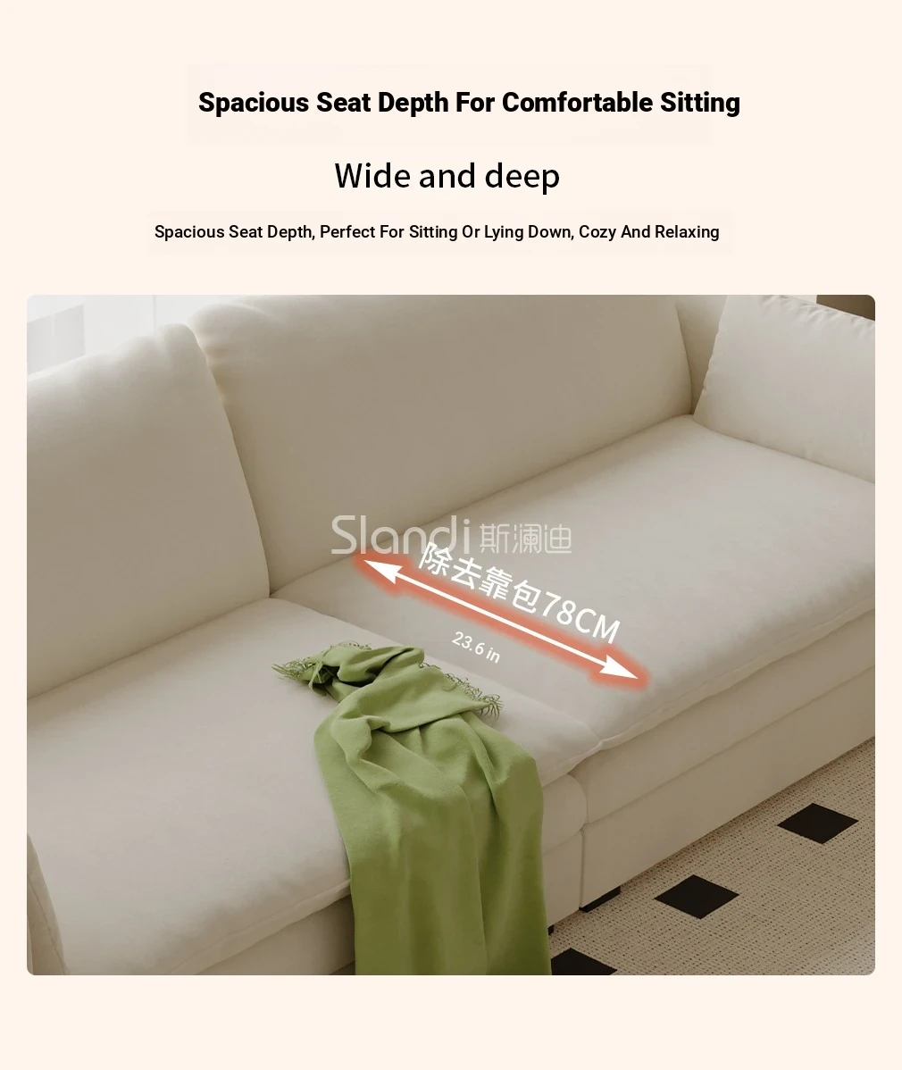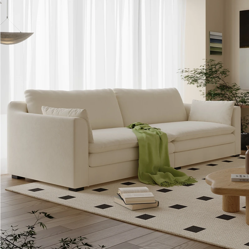 Trendy Fabric Sofa for Small Spaces - Modern Minimalist Cream-Colored Sofa for 3-4 People, Perfect for Stylish Living Rooms