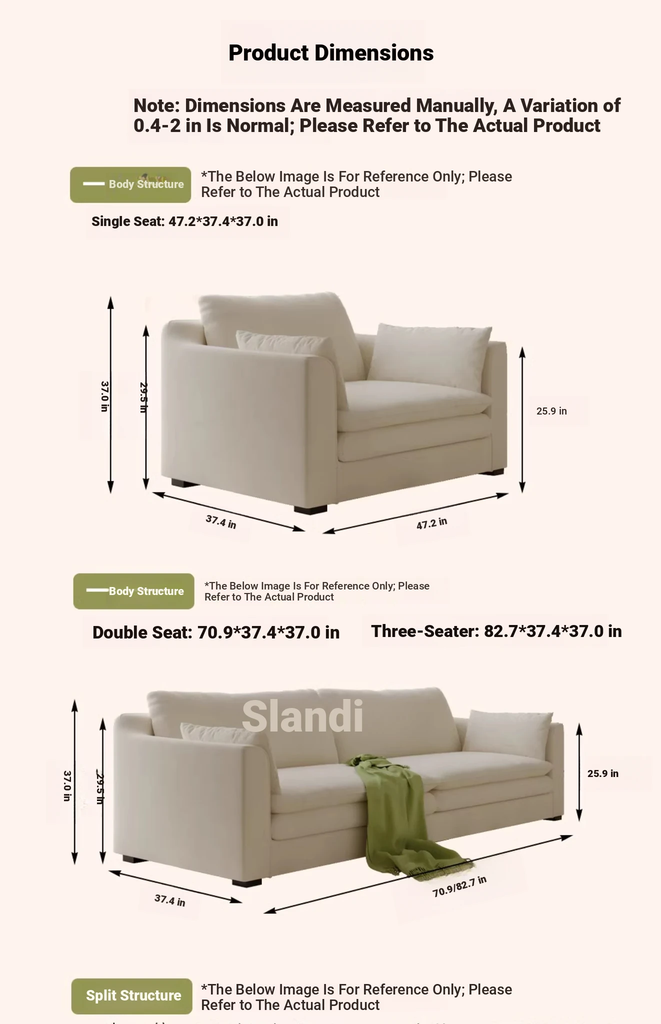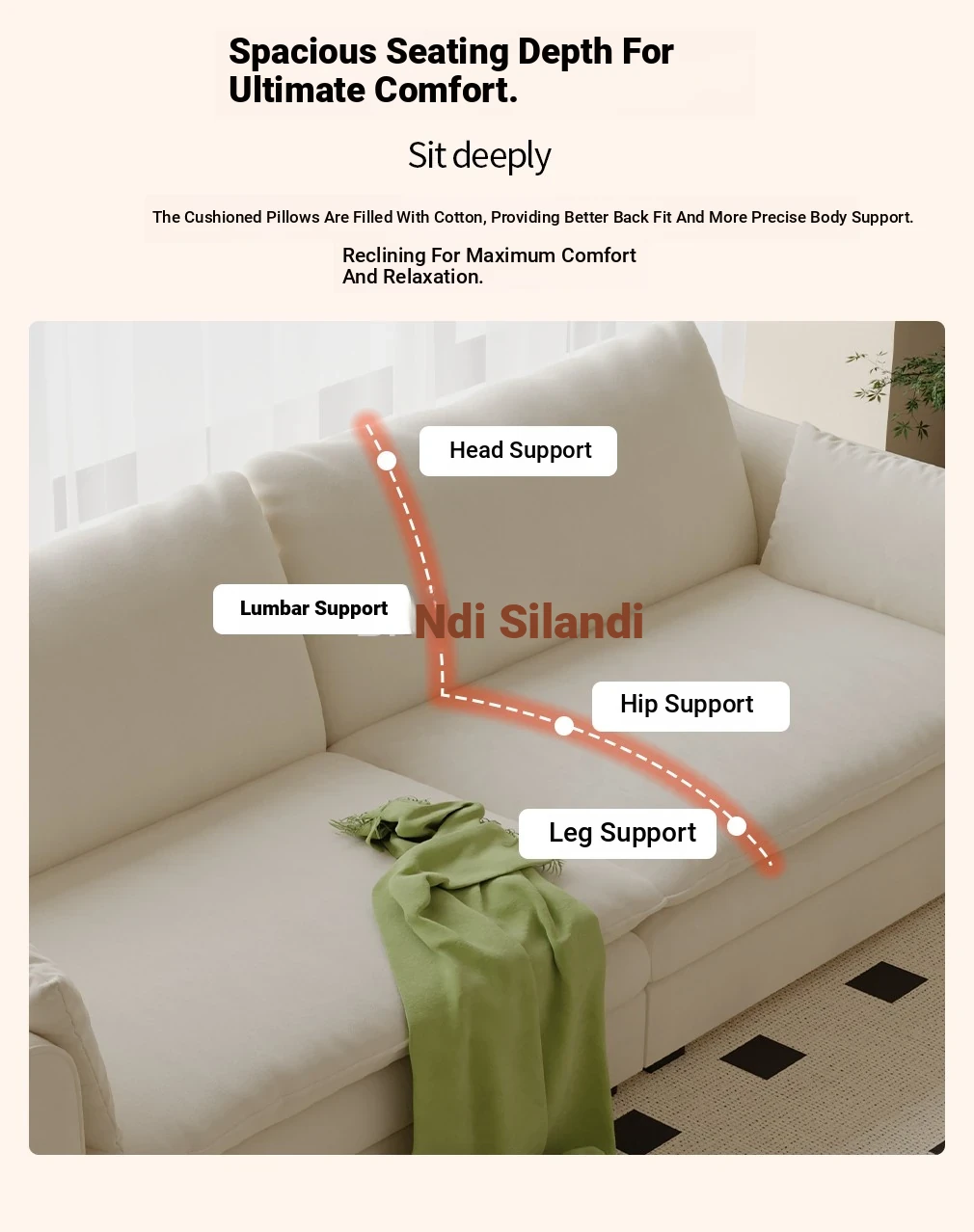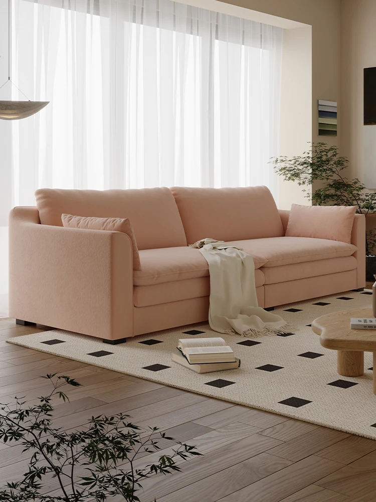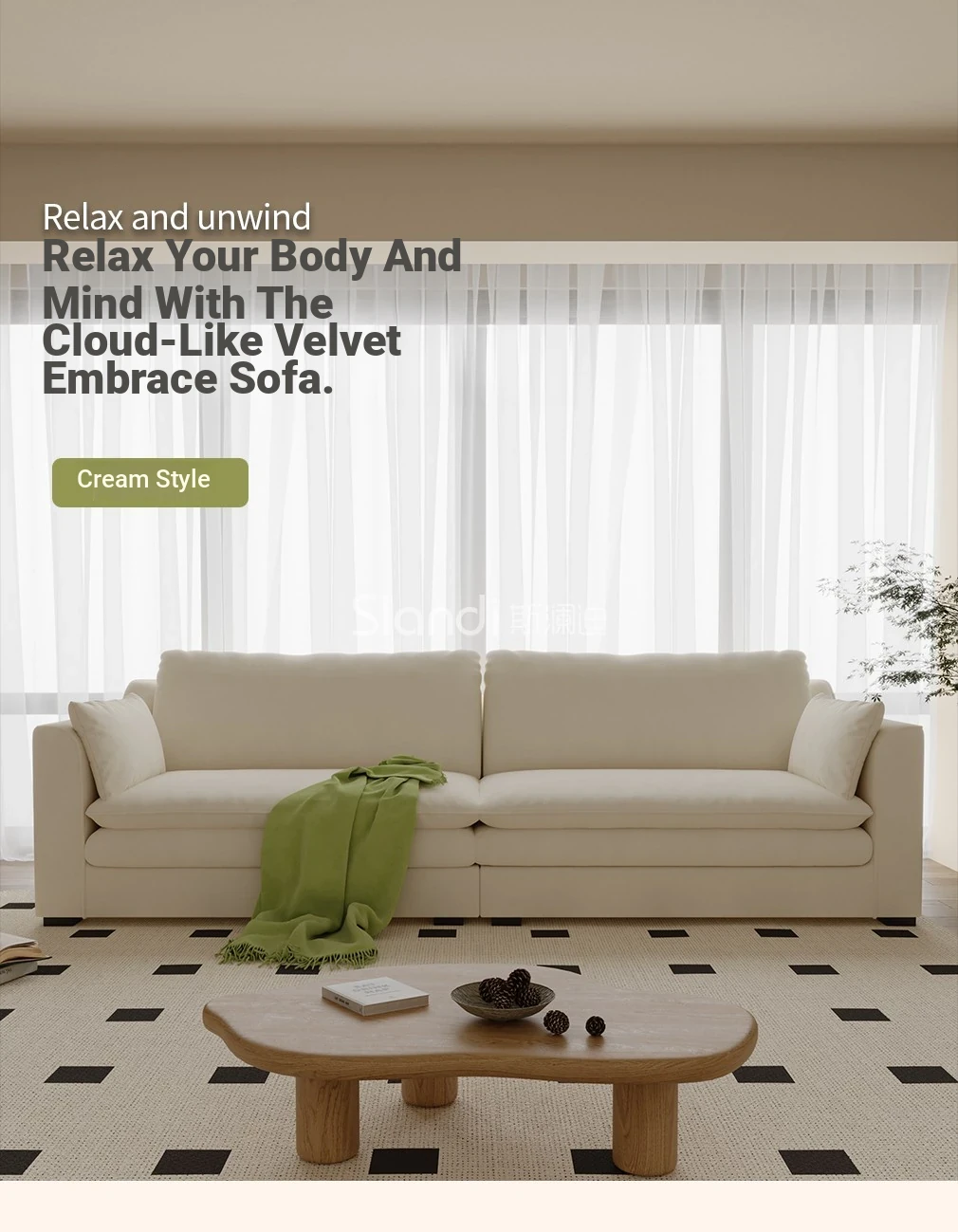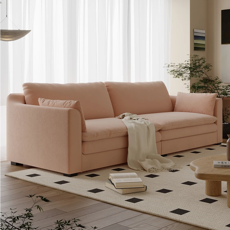 Trendy Fabric Sofa for Small Spaces - Modern Minimalist Cream-Colored Sofa for 3-4 People, Perfect for Stylish Living Rooms
