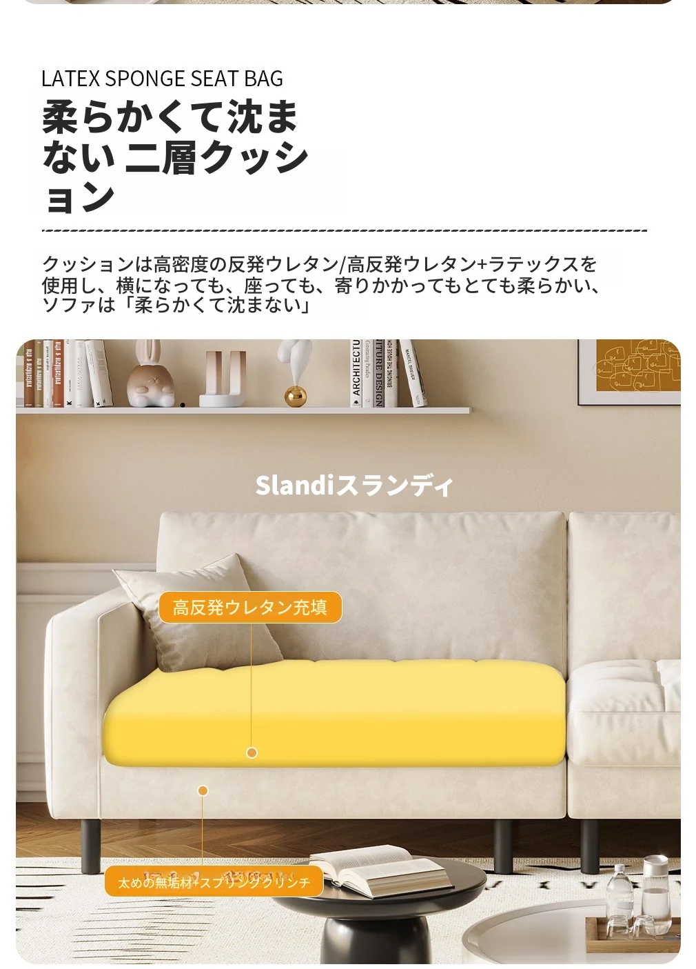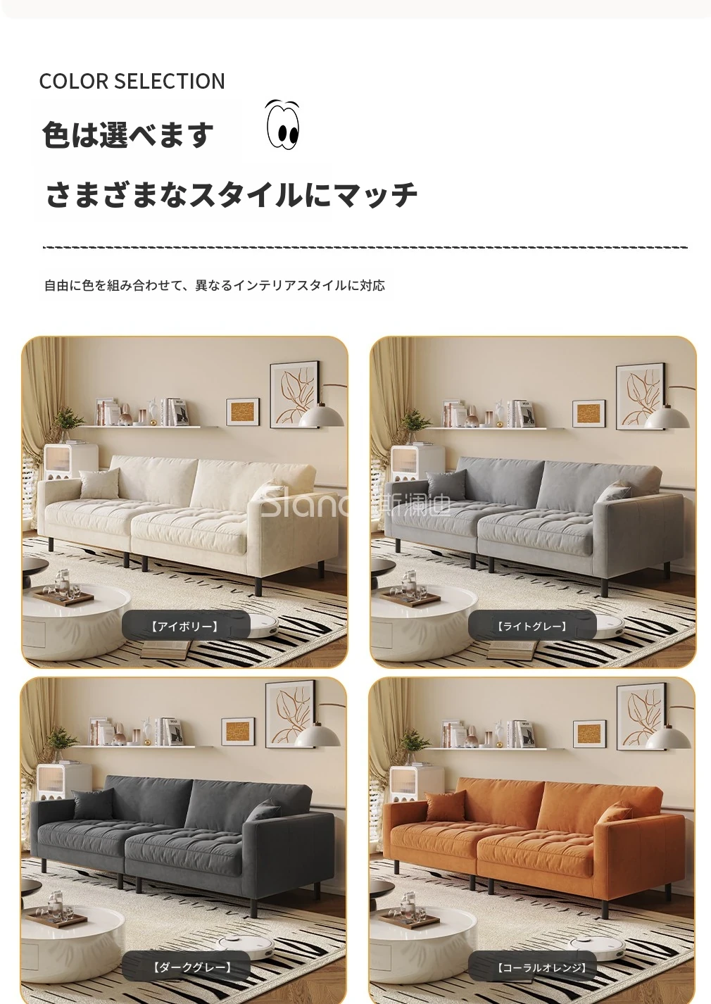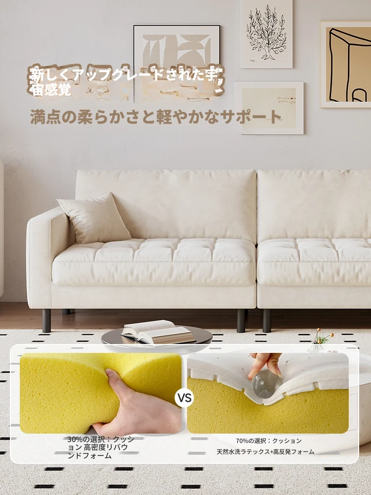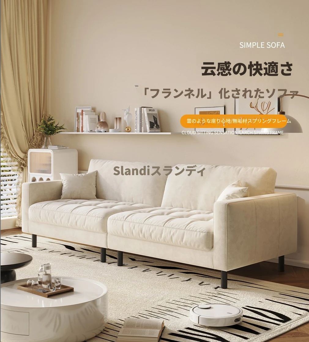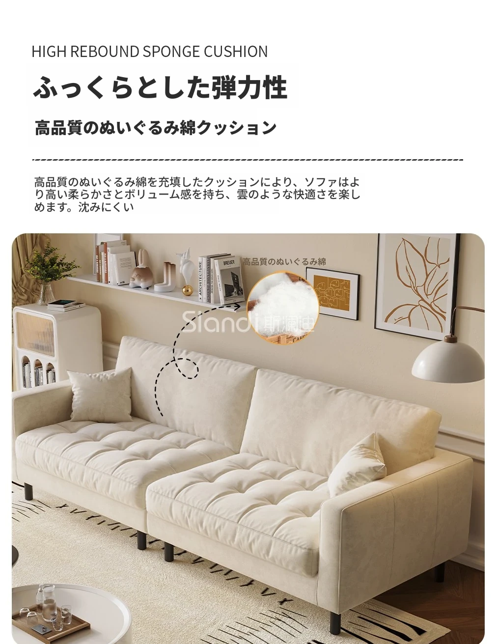 2025年新作!おしゃれな布製ソファ - モダンでシンプルなデザイン、狭いリビングにもぴったりのクリーム風高脚ソファ!トレンドを先取りして、あなたの空間を華やかに演出します。
