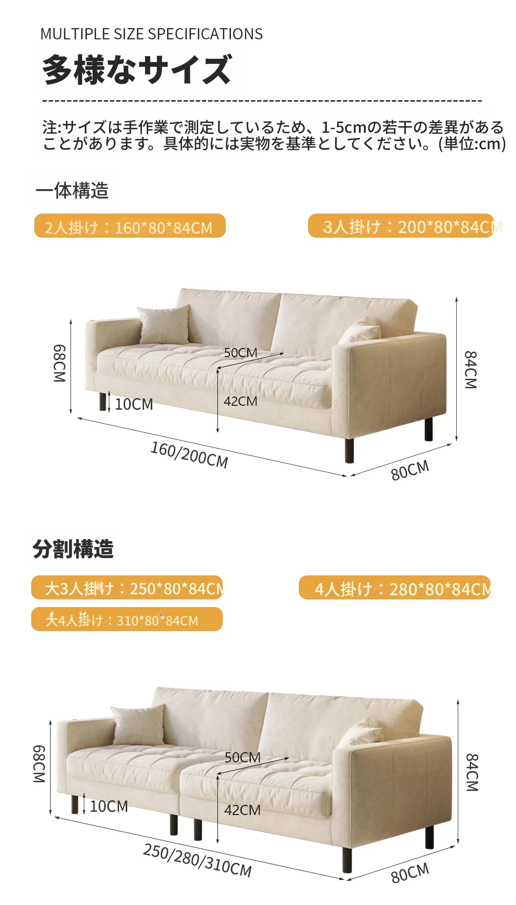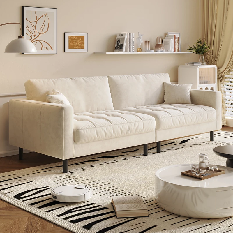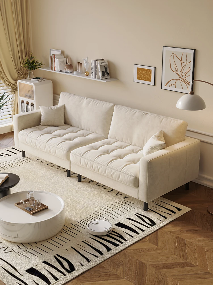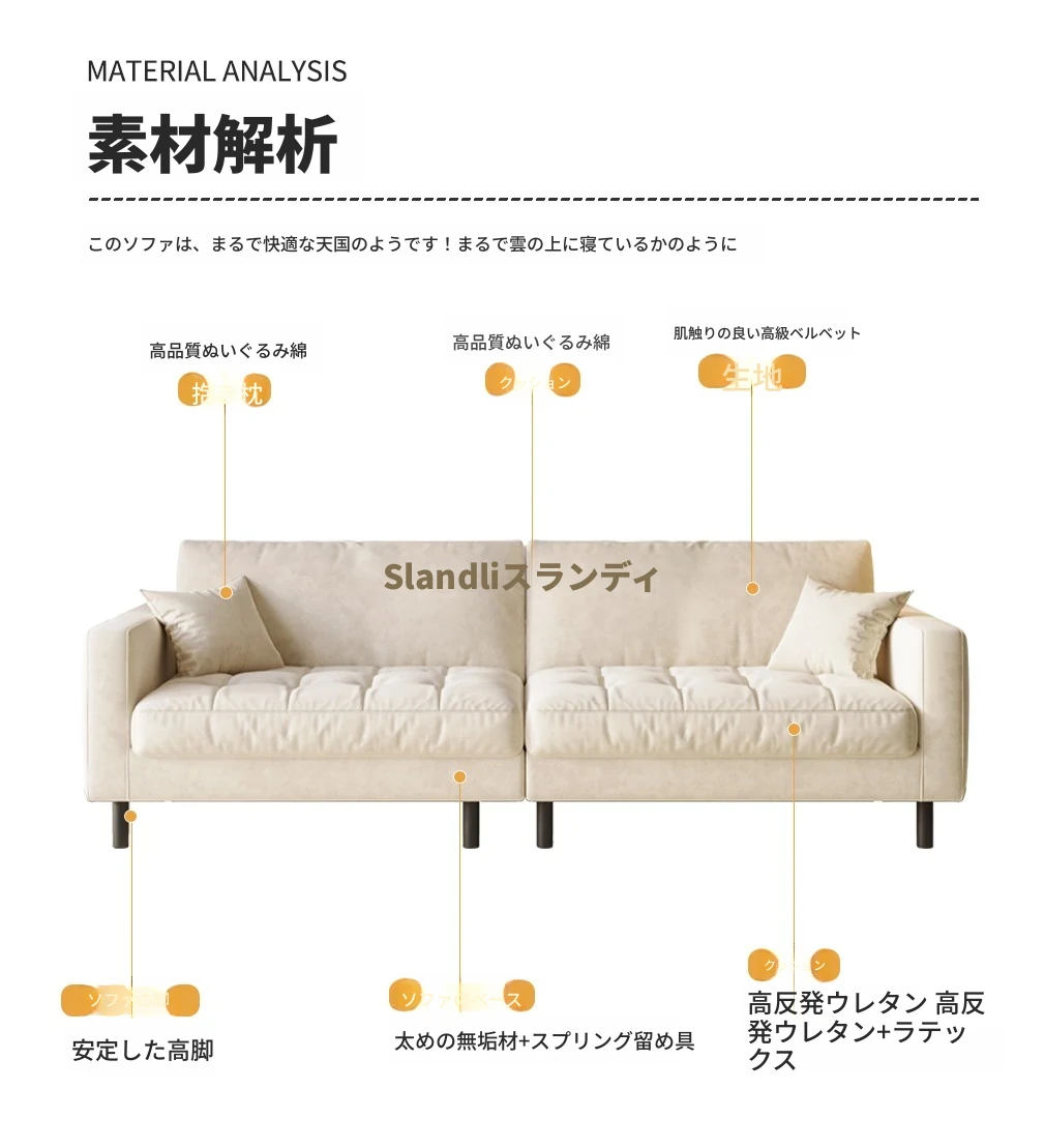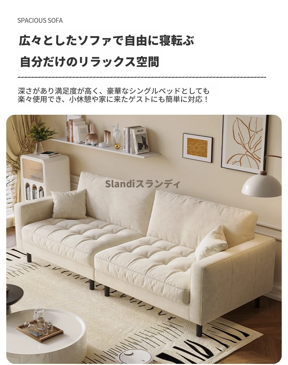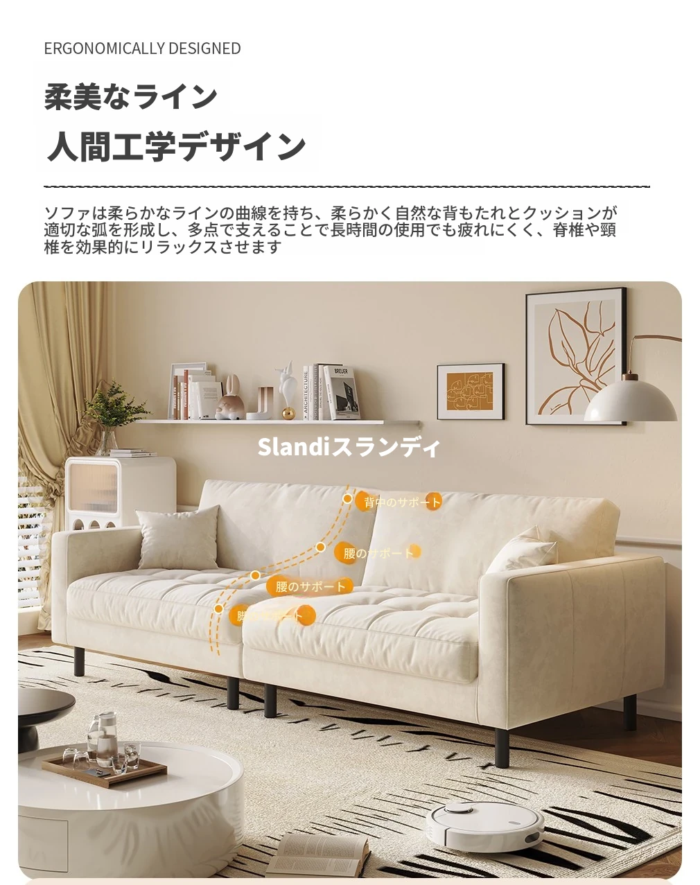 2025年新作!おしゃれな布製ソファ - モダンでシンプルなデザイン、狭いリビングにもぴったりのクリーム風高脚ソファ!トレンドを先取りして、あなたの空間を華やかに演出します。
