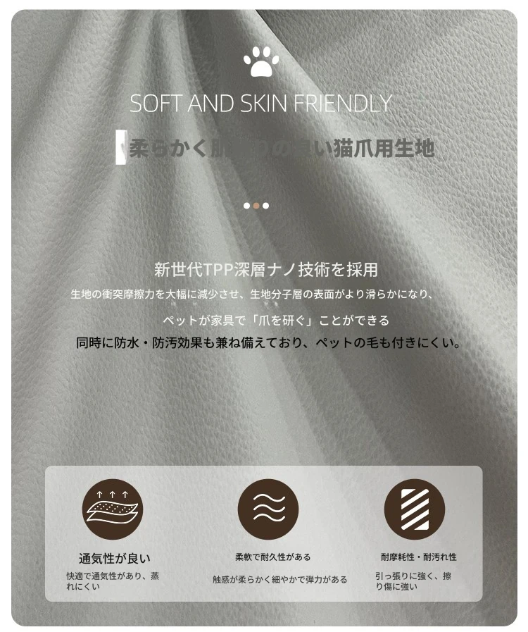 【抗汚れ耐摩耗キャットスクラッチレザー】ライトグレー