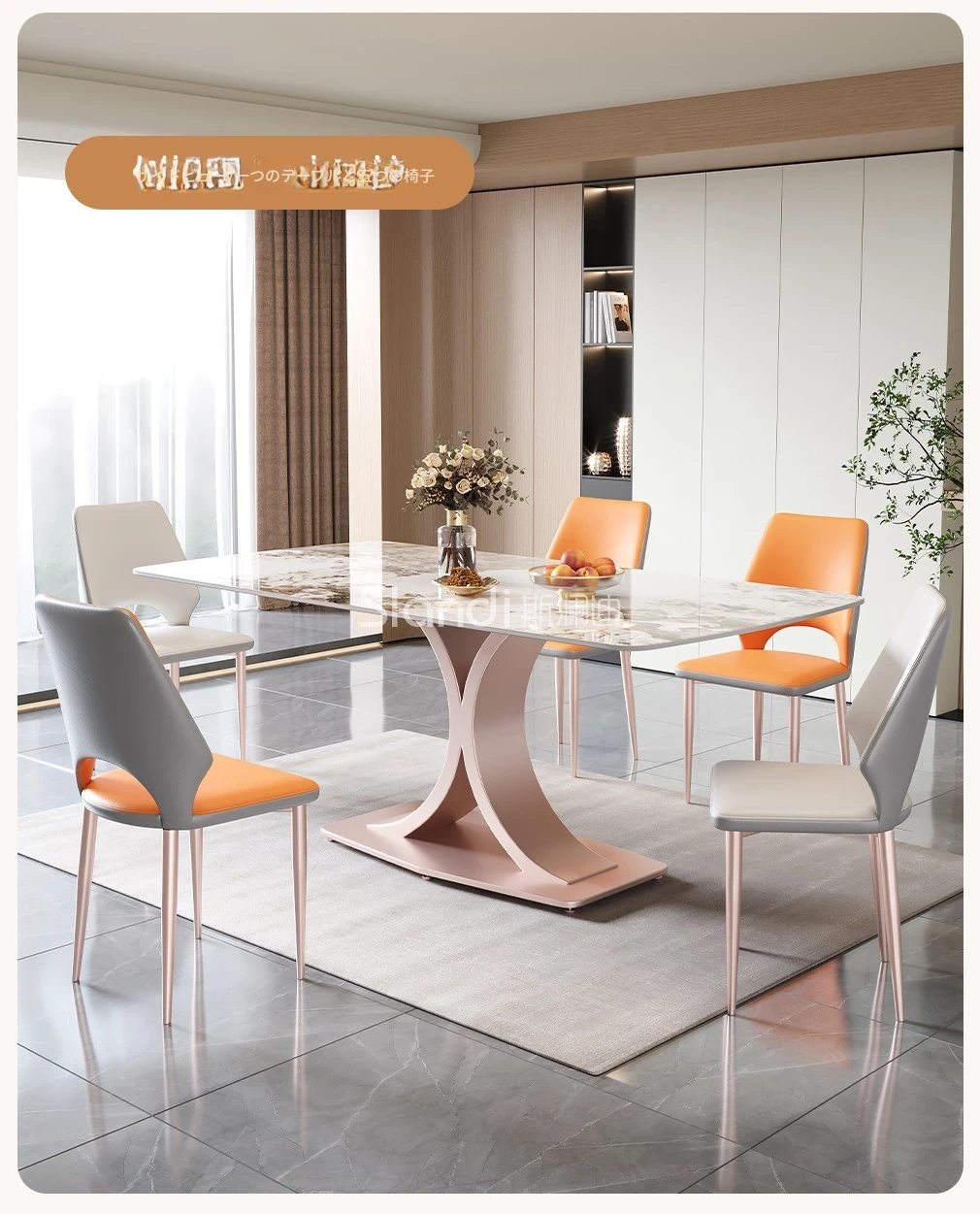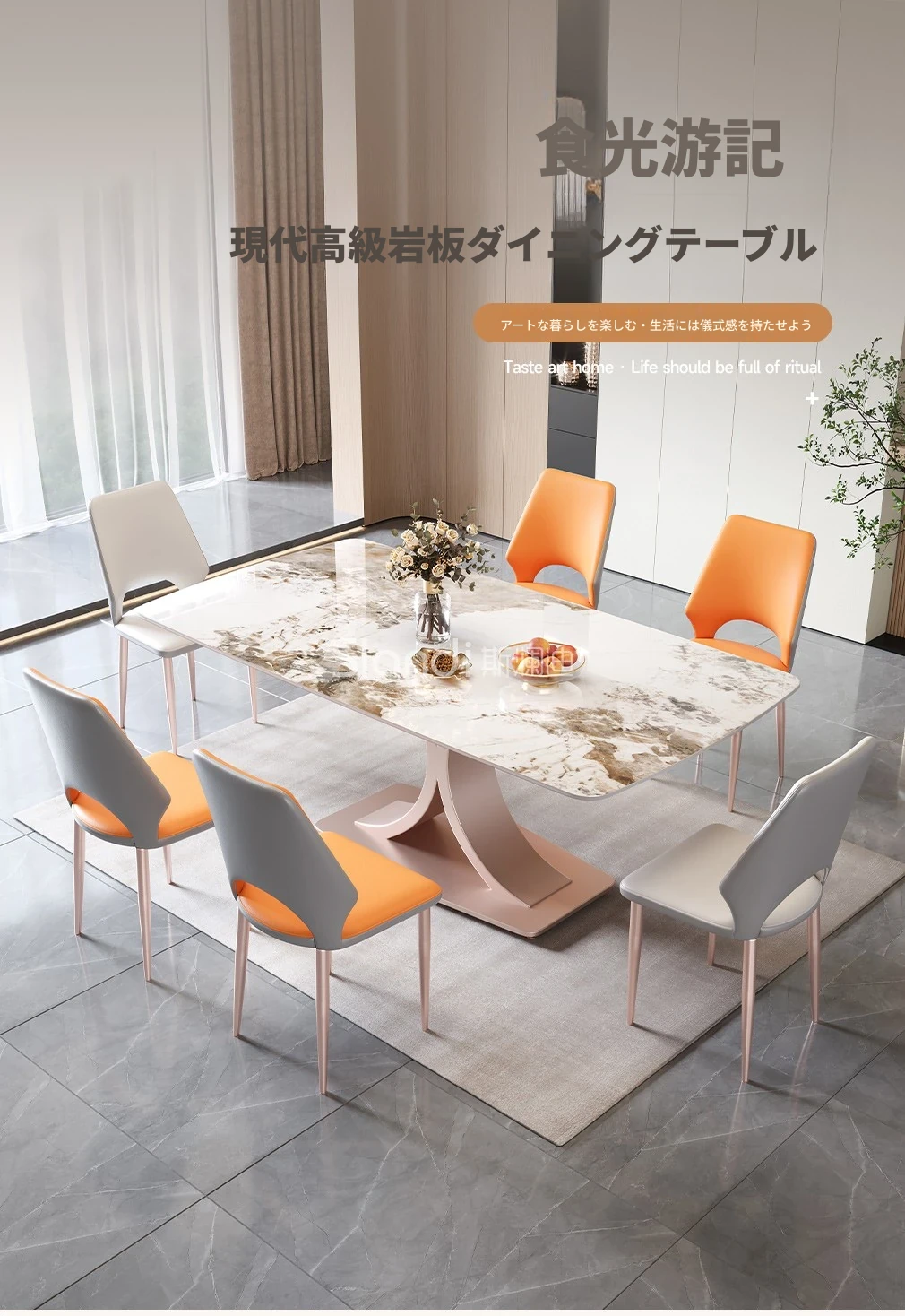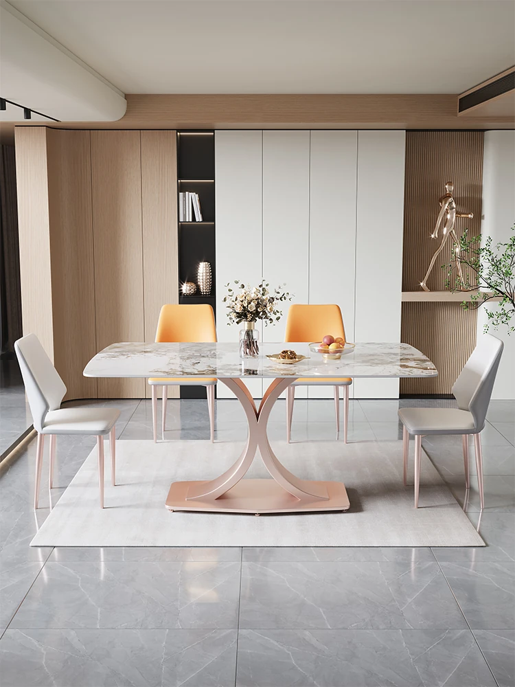 2025年新作!おしゃれな長方形岩板ダイニングテーブル - モダンでミニマリストなデザイン、小型住宅に最適な食卓。デザイナーによる洗練されたスタイルで、家族や友人との特別なひとときを演出します!