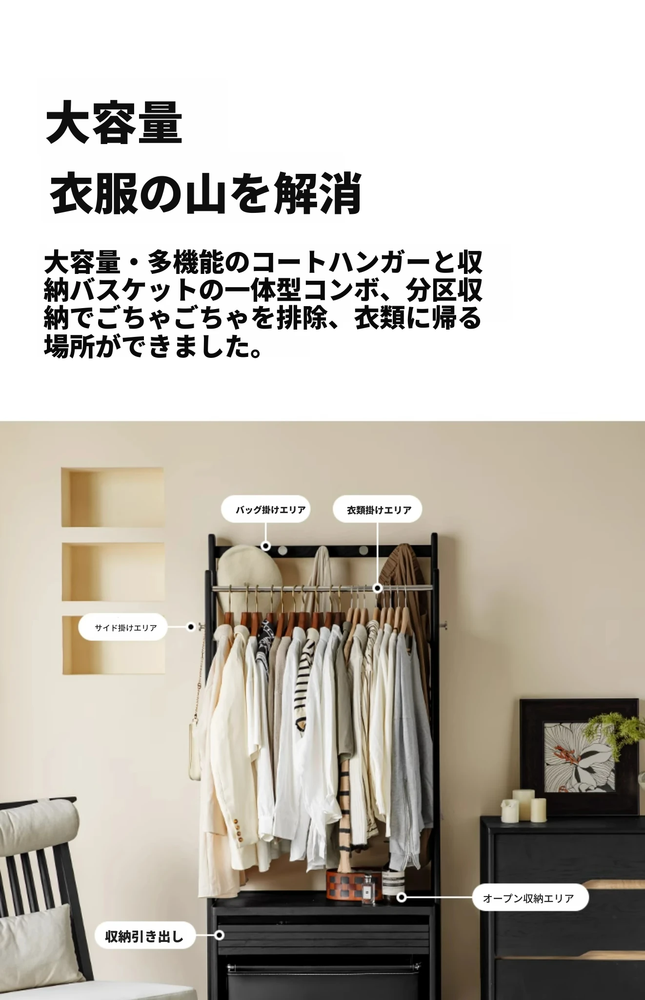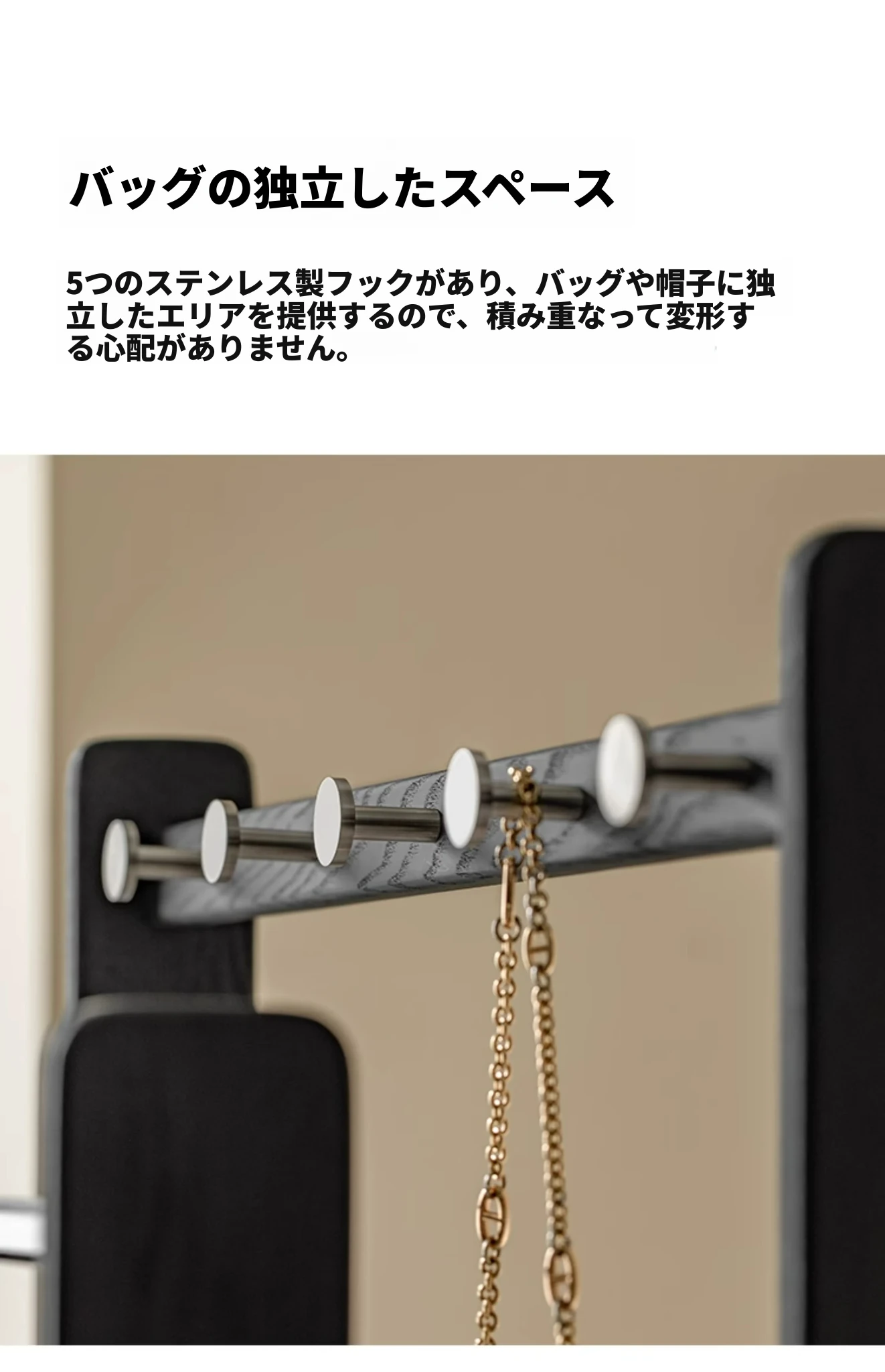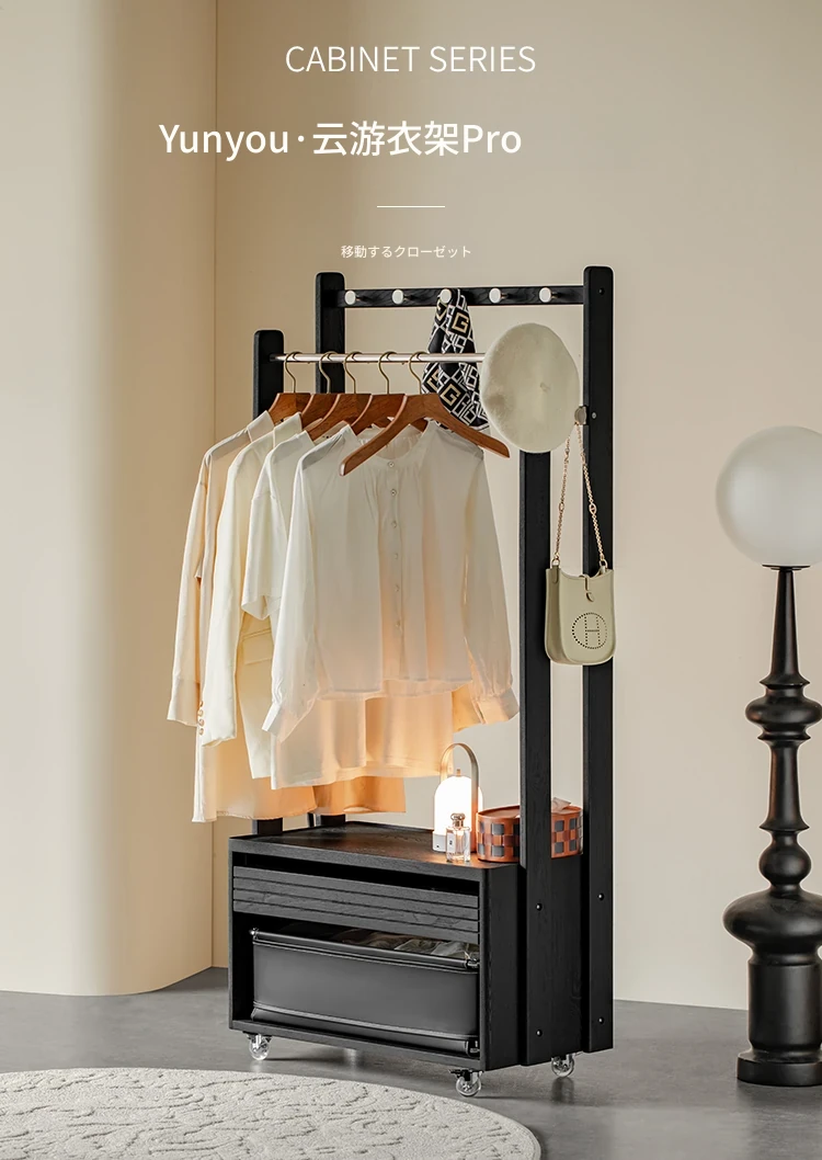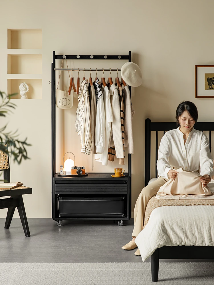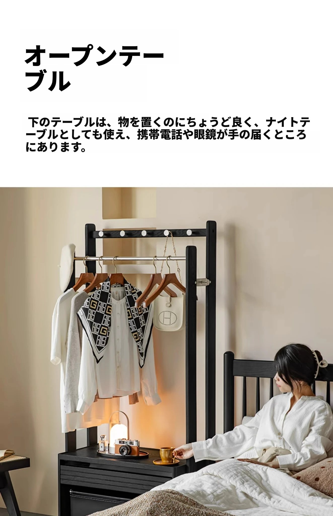 梵也家具のモバイル多機能収納ラック - おしゃれな黒の無垢材製、寝室に最適な衣類・帽子掛け!使い勝手抜群で、どんなインテリアにもマッチします。スタイリッシュな空間を演出しましょう!