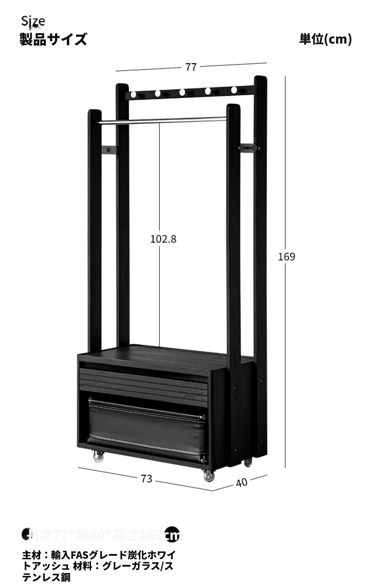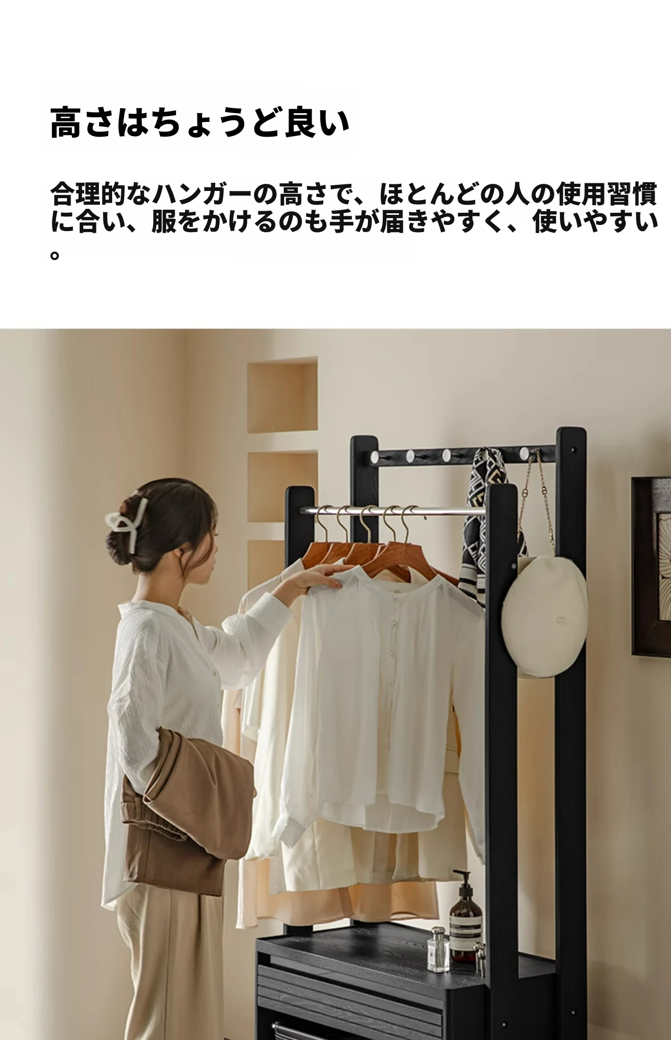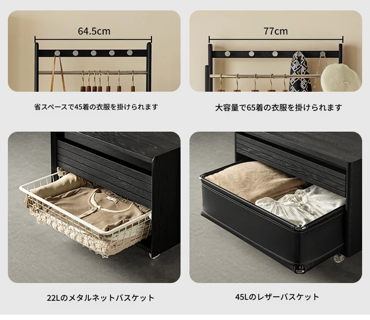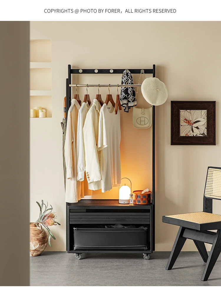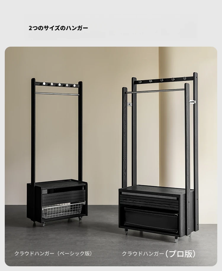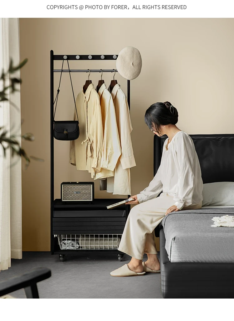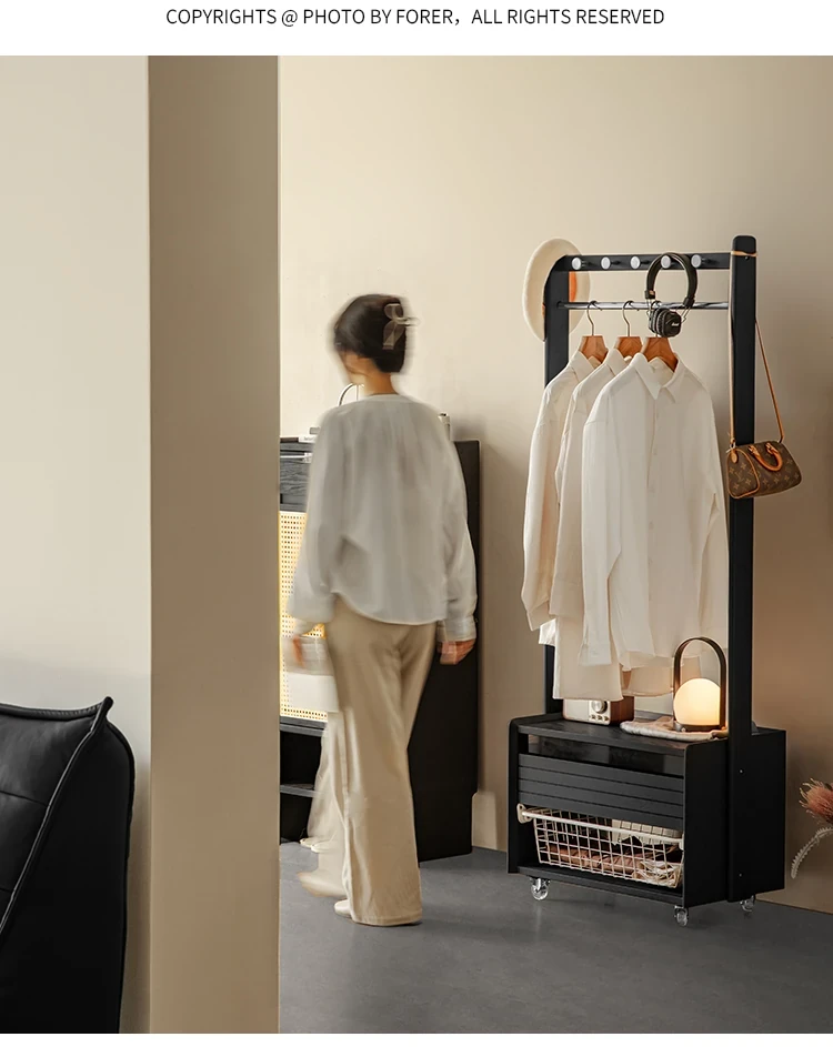 梵也家具のモバイル多機能収納ラック - おしゃれな黒の無垢材製、寝室に最適な衣類・帽子掛け!使い勝手抜群で、どんなインテリアにもマッチします。スタイリッシュな空間を演出しましょう!