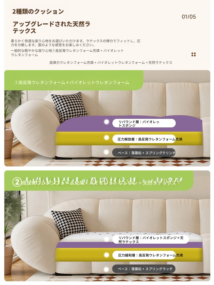 【スリー人220cm | 雲のように楽な座り心地】ロシアシベリア落葉松フレーム
