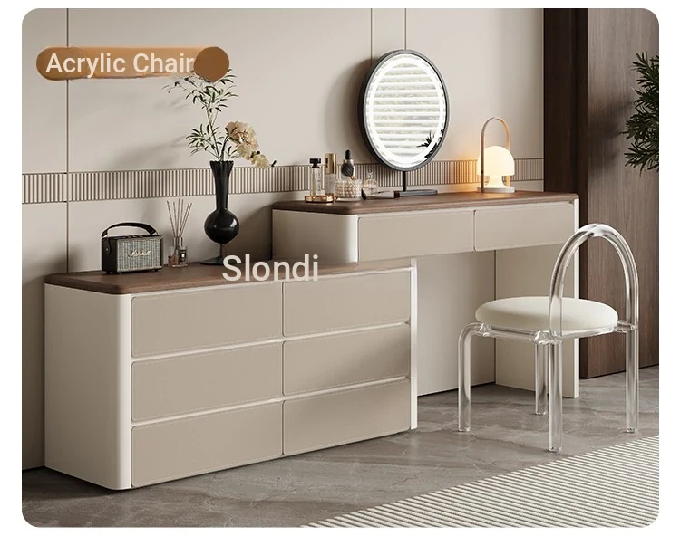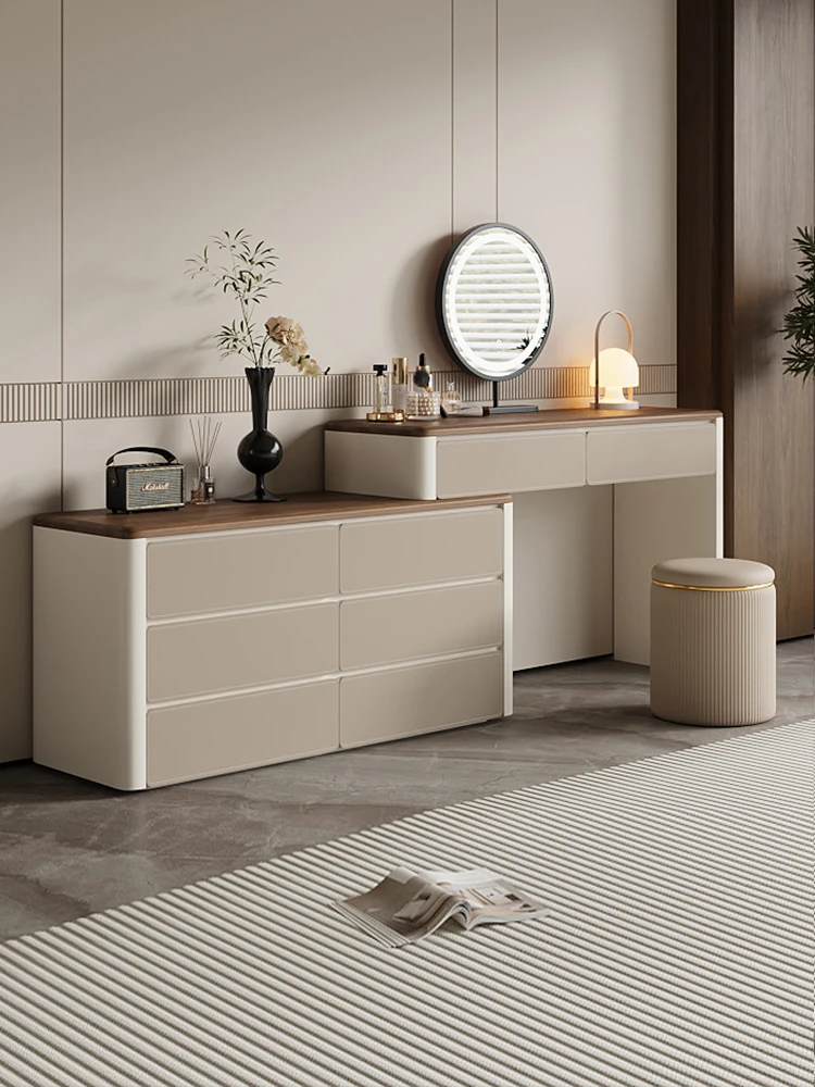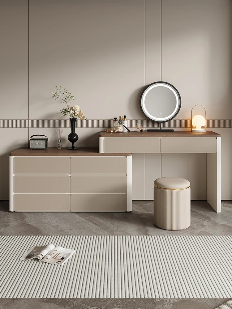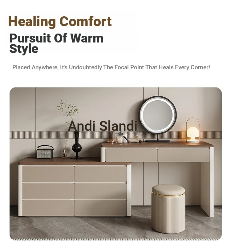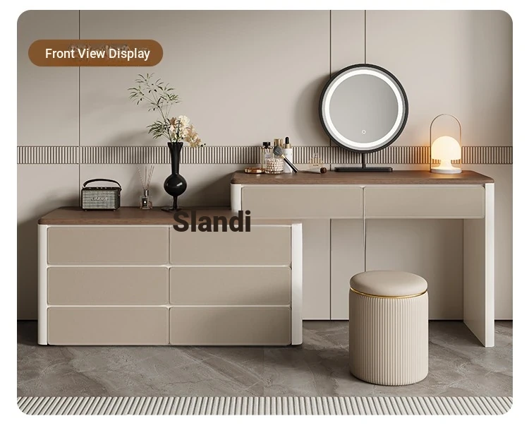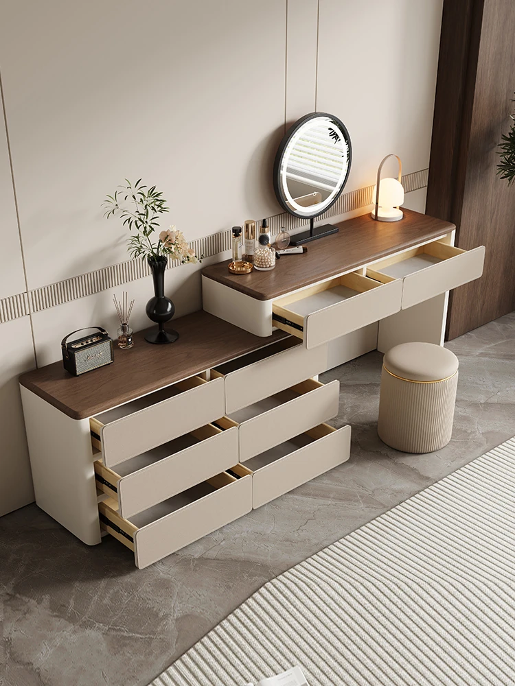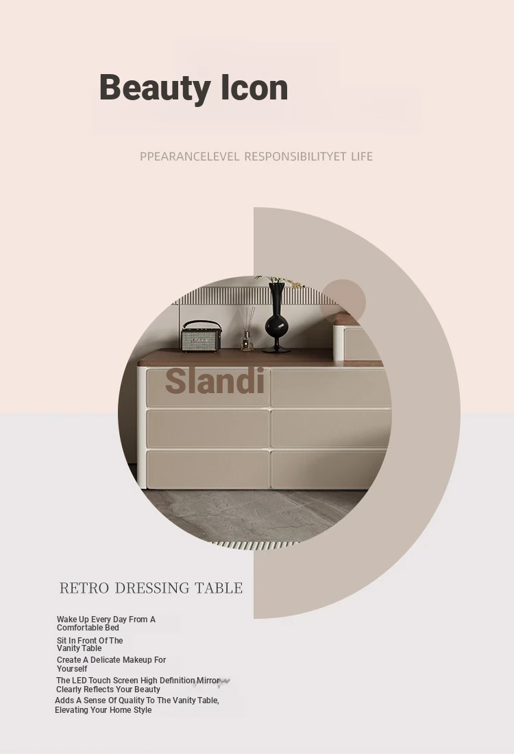 Italian Minimalist Solid Wood Vanity with High-Gloss Finish - Multi-Functional Makeup Storage Table with Color-Changing LED Lights