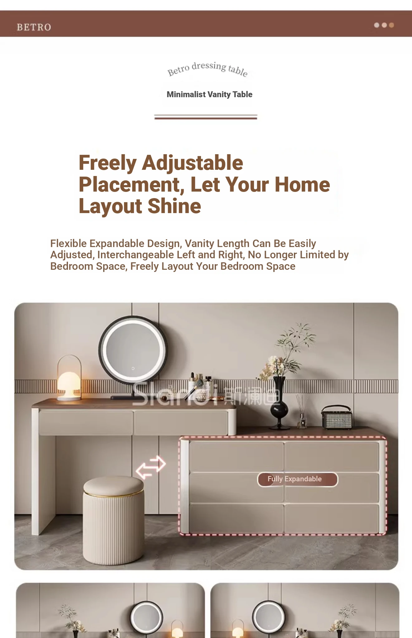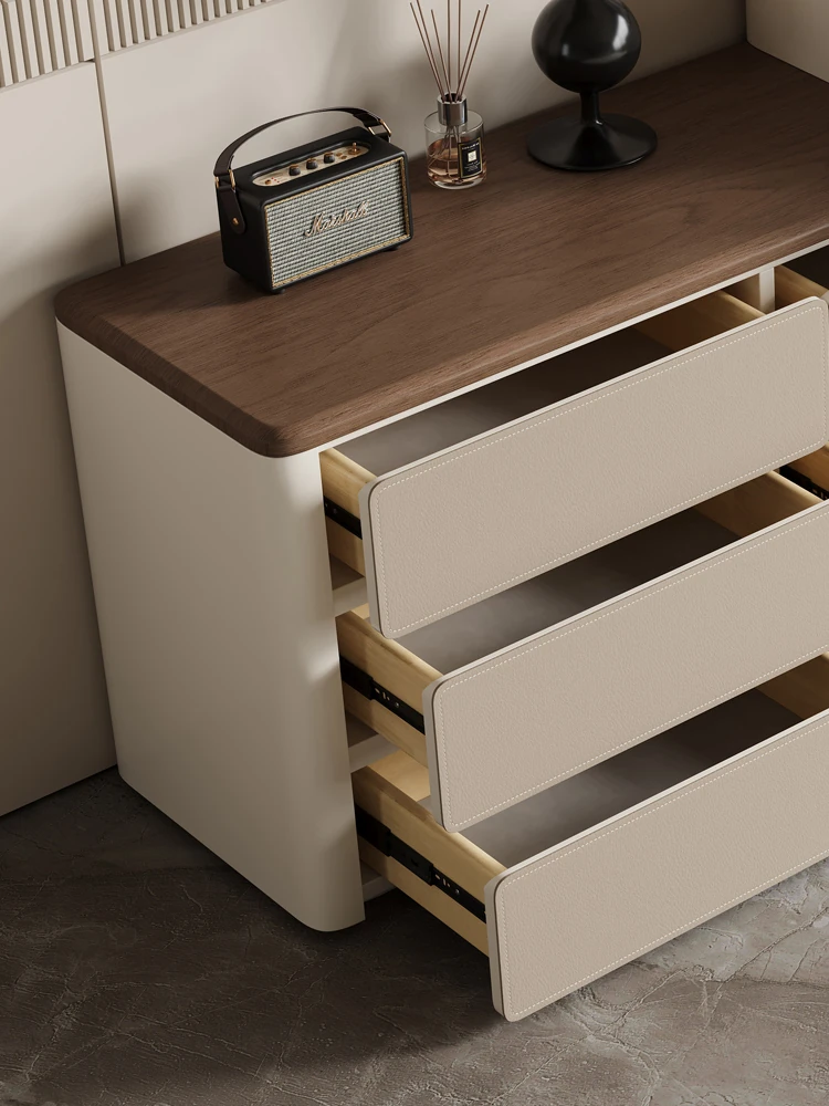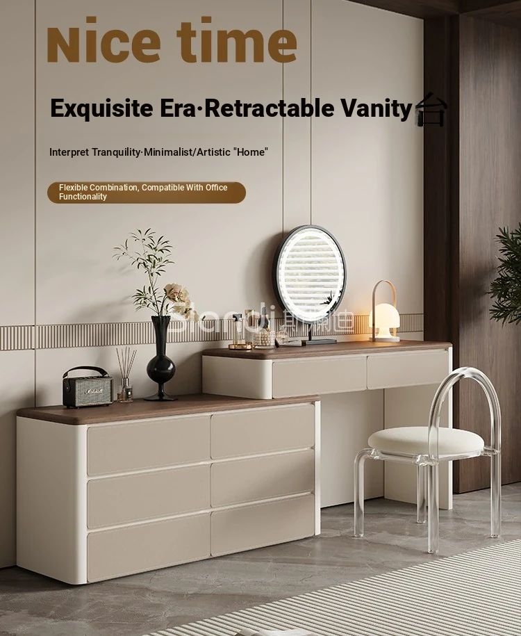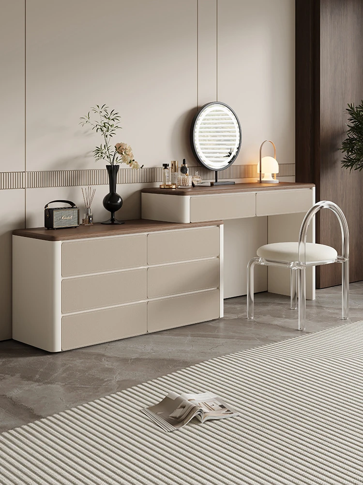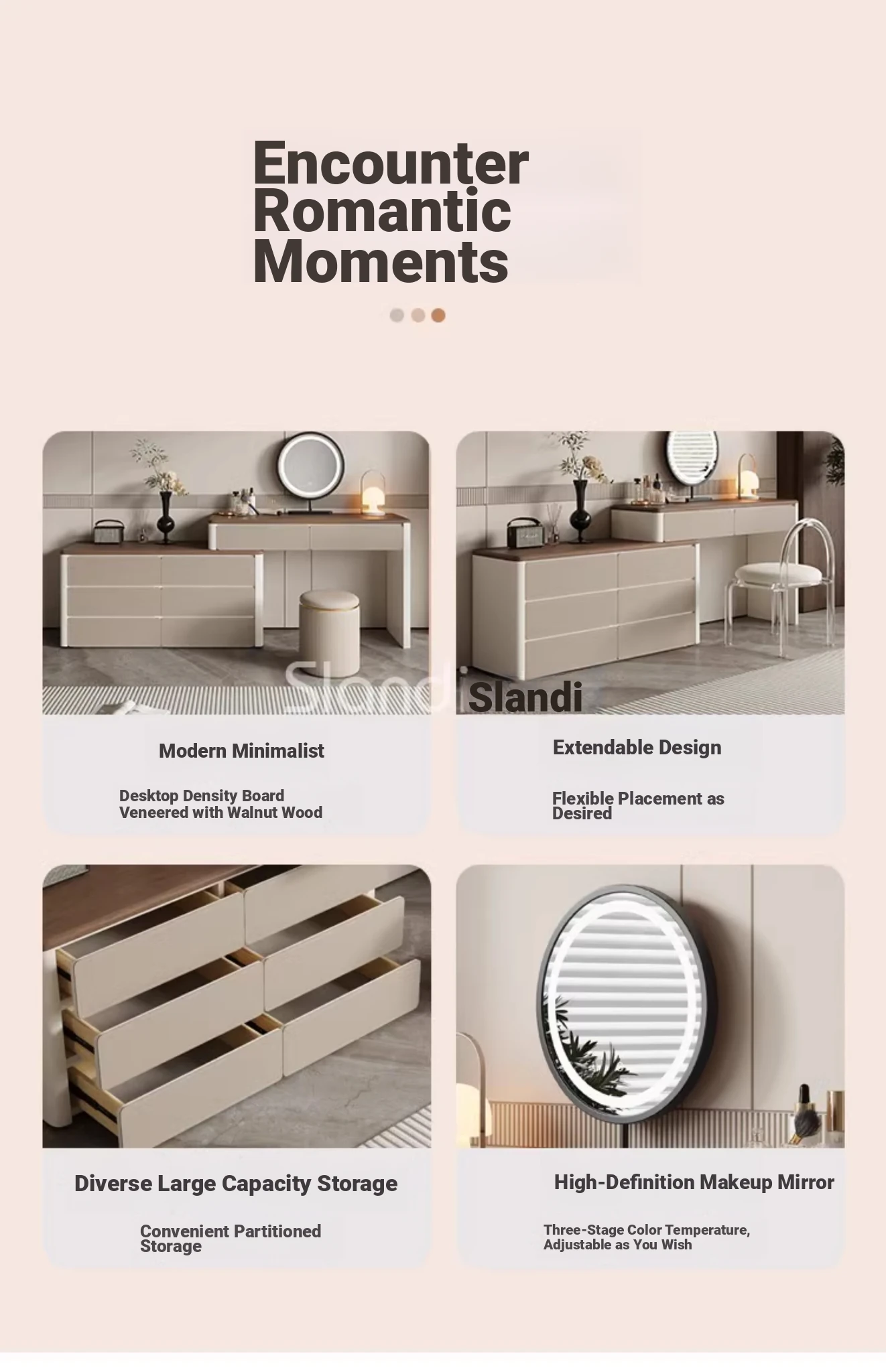 Italian Minimalist Solid Wood Vanity with High-Gloss Finish - Multi-Functional Makeup Storage Table with Color-Changing LED Lights