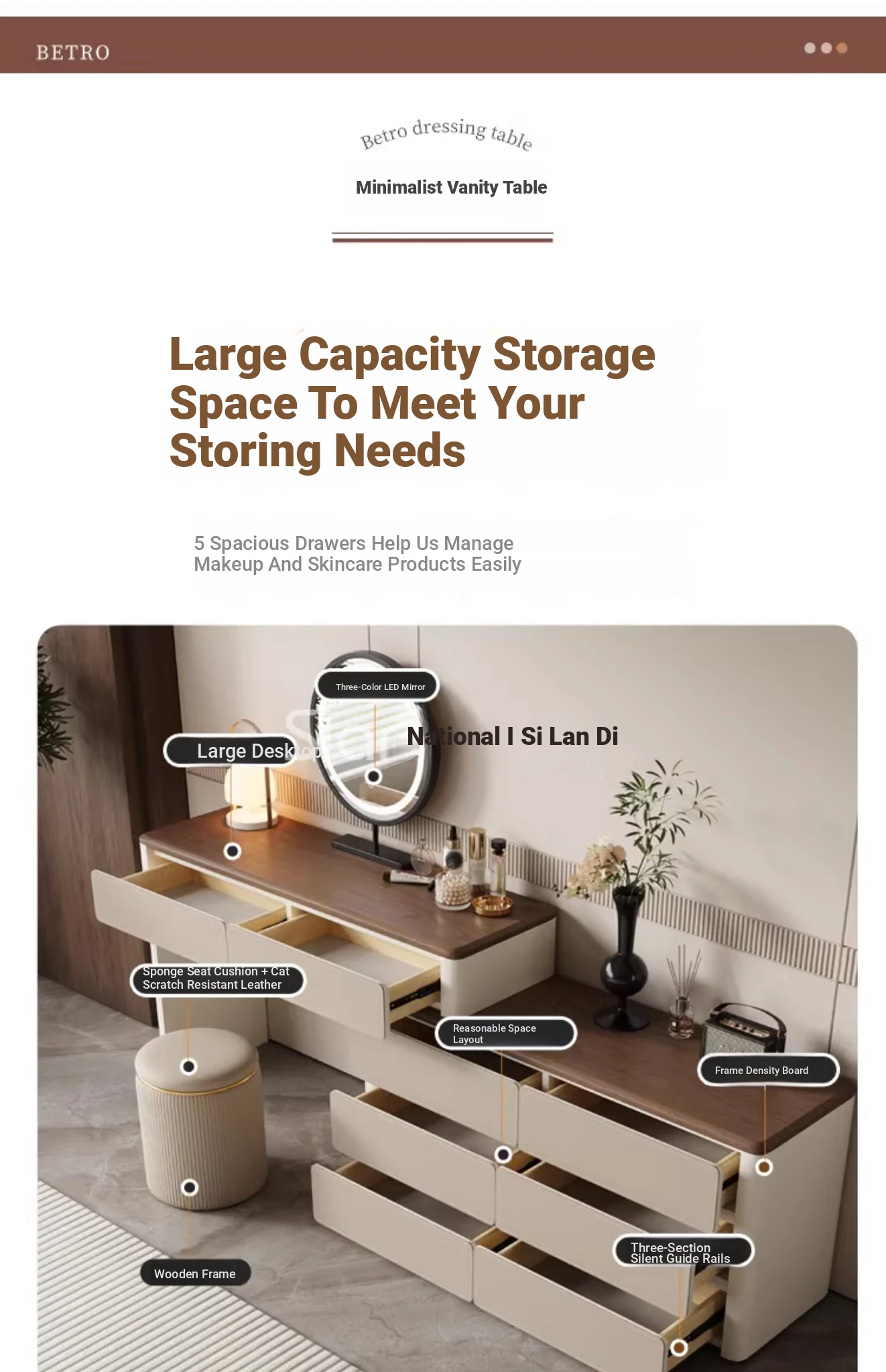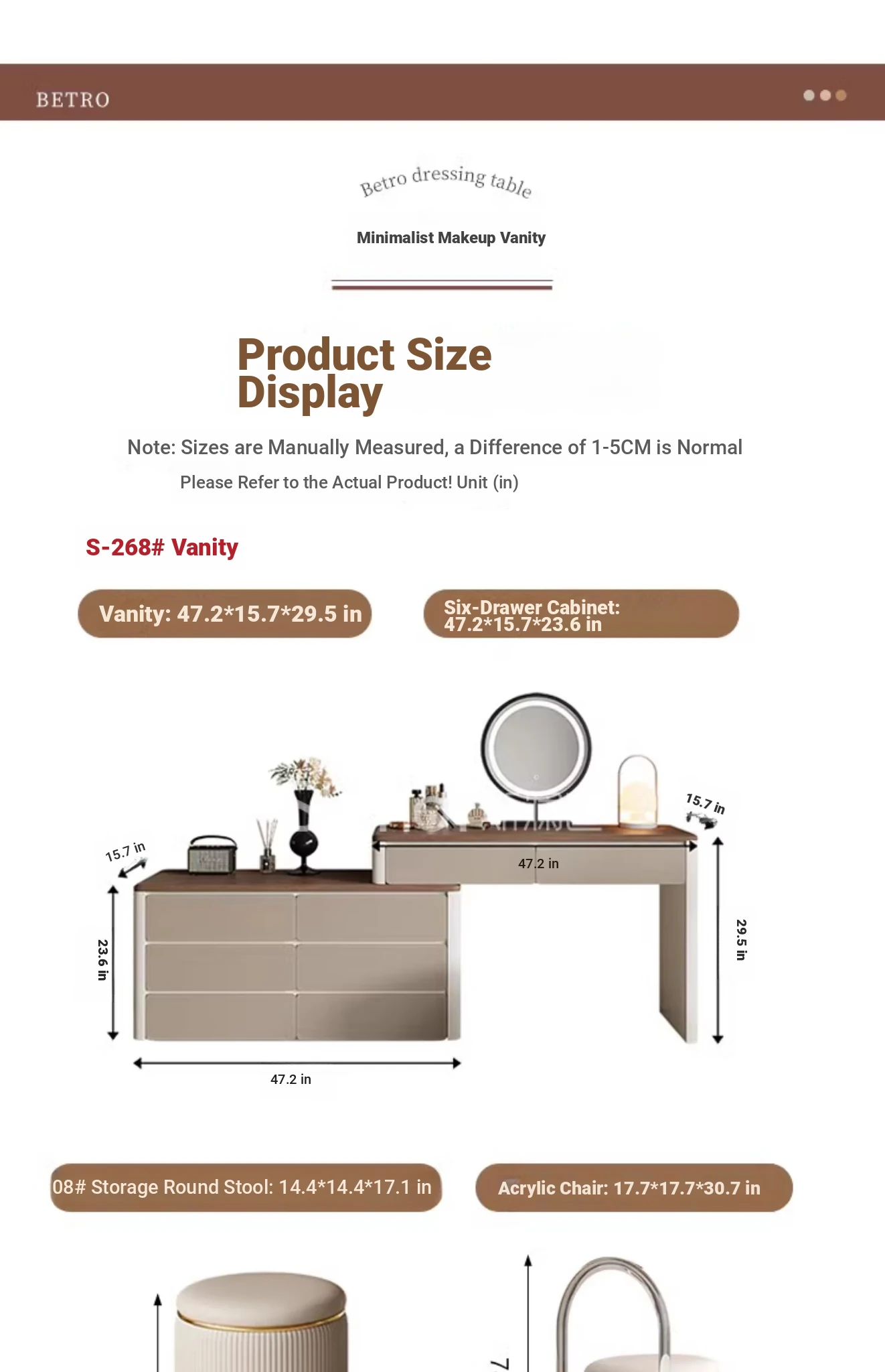 47.24in makeup table +47.24in bucket cabinet + round mirror [storage round leather stool]]