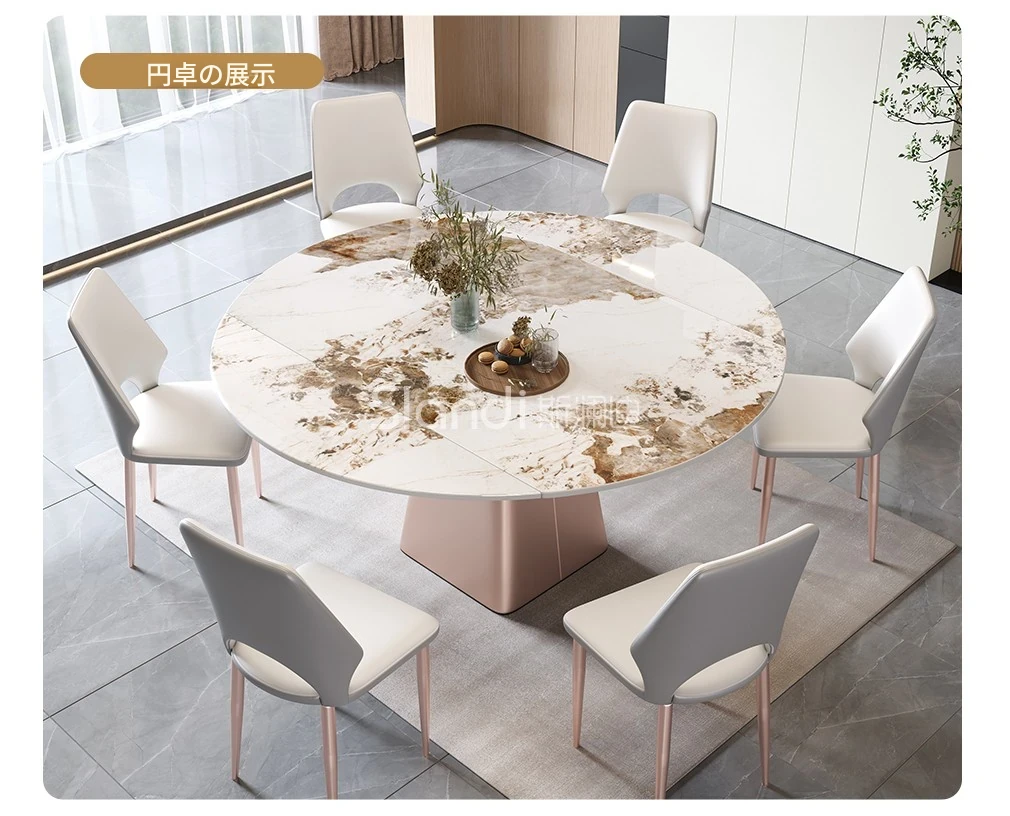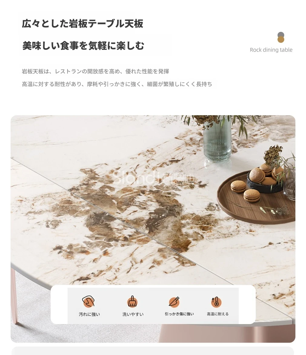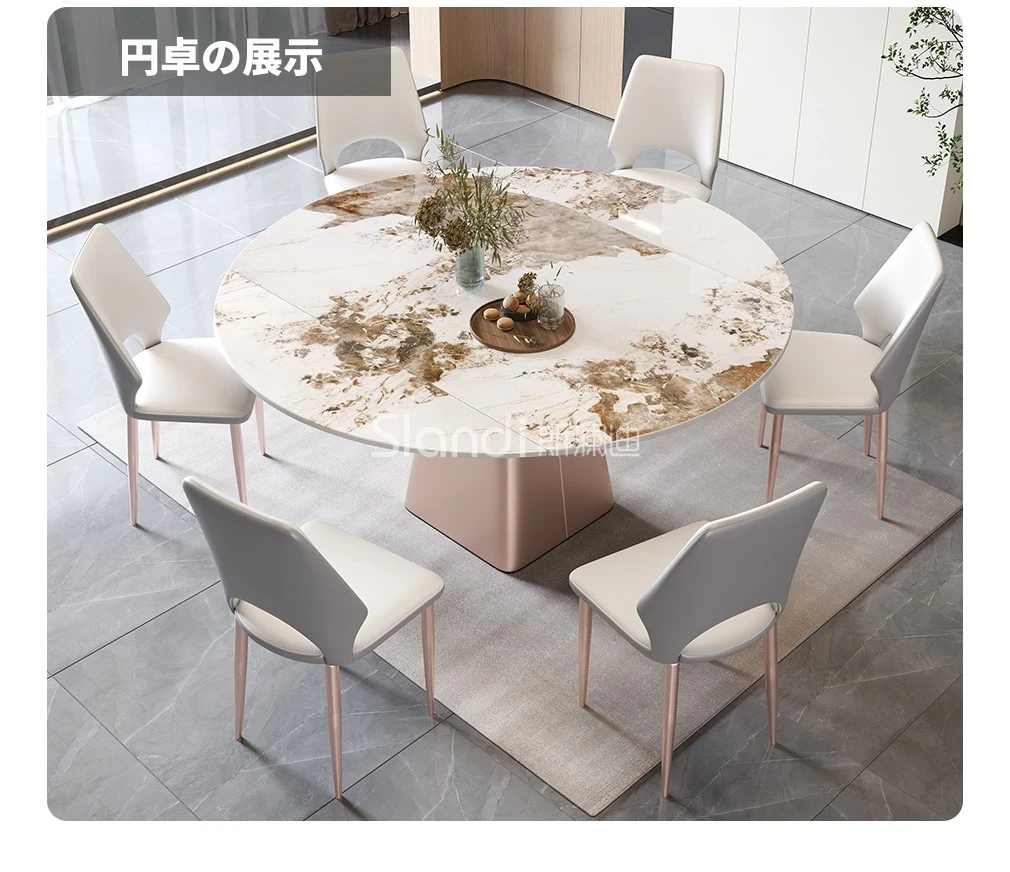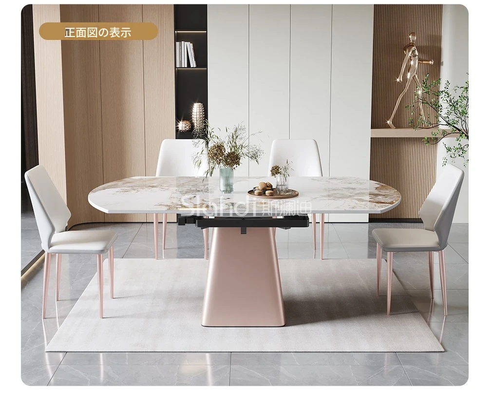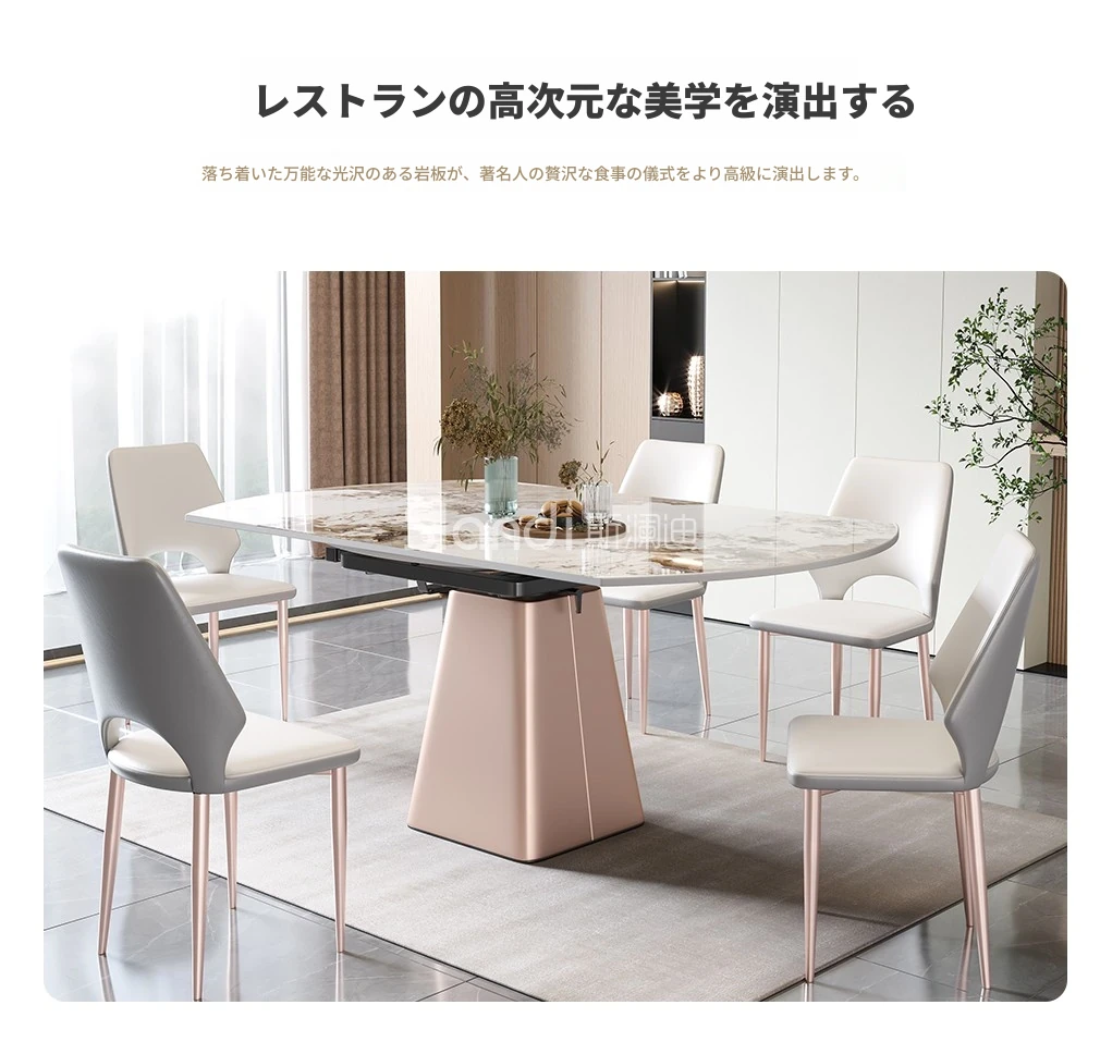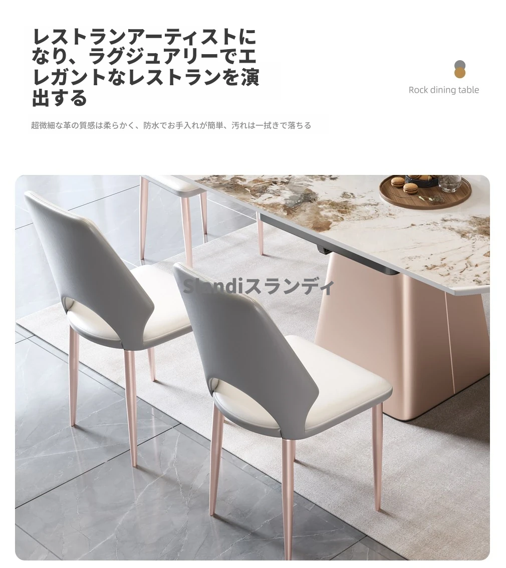 イタリアンミニマルデザインの四角形ベースダイニングテーブル&チェアセット - シンプルでおしゃれ、小スペースに最適な厚みのあるストーンテーブル。形状が変わるのでお部屋に合わせてレイアウト自在!