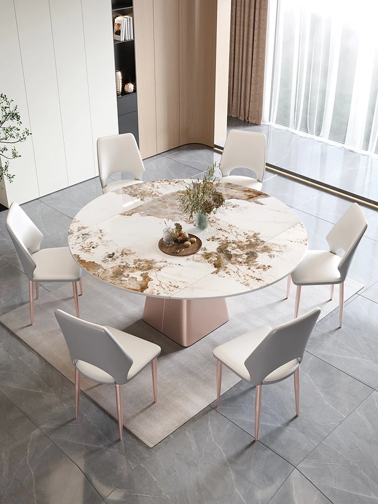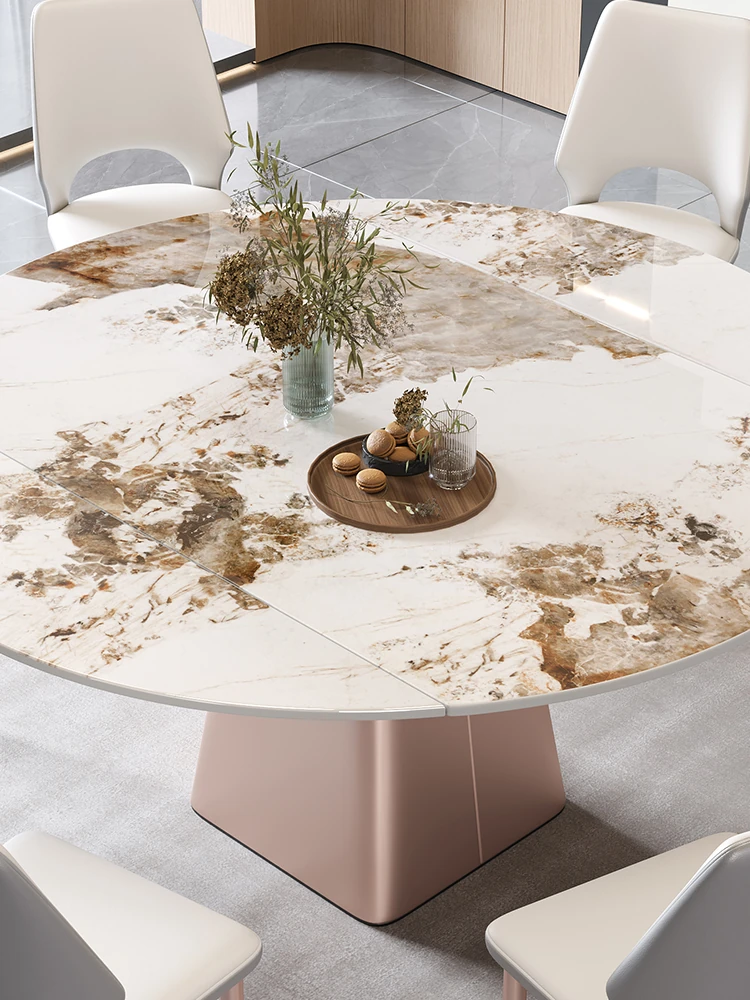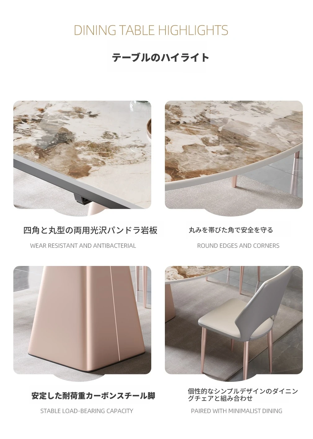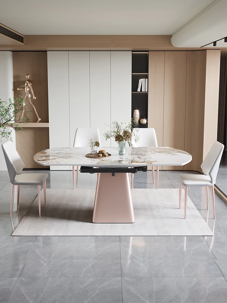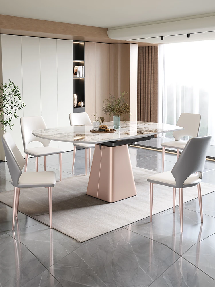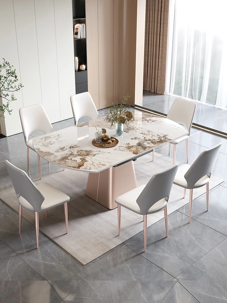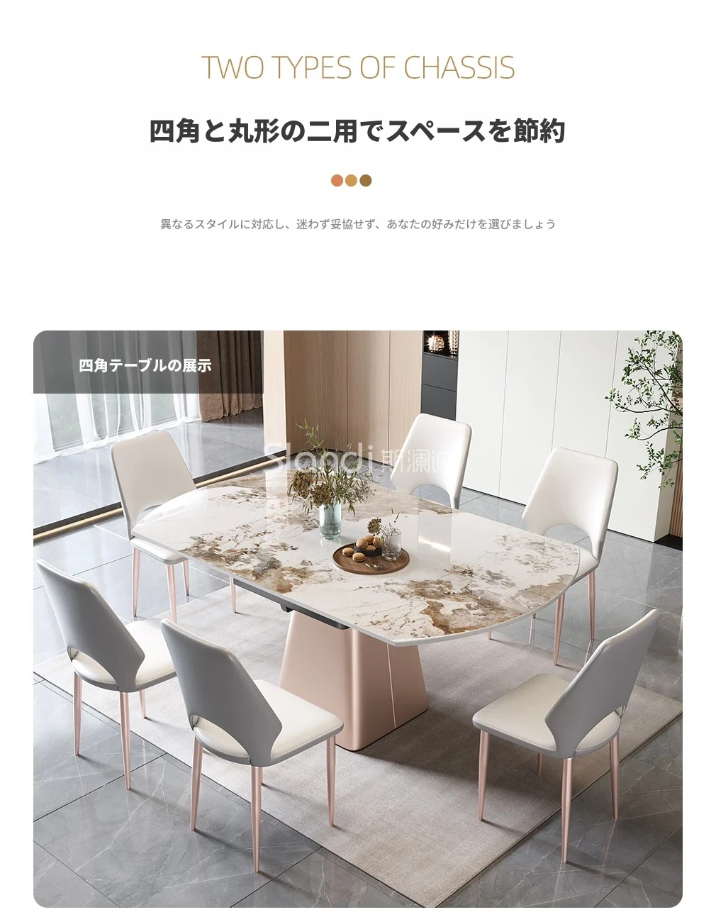 イタリアンミニマルデザインの四角形ベースダイニングテーブル&チェアセット - シンプルでおしゃれ、小スペースに最適な厚みのあるストーンテーブル。形状が変わるのでお部屋に合わせてレイアウト自在!