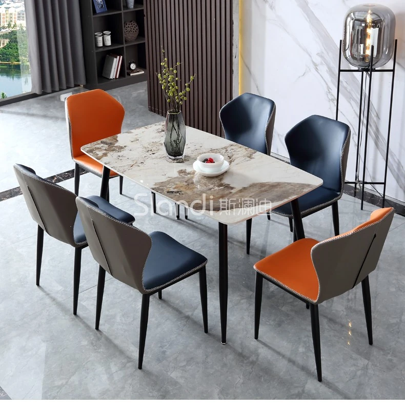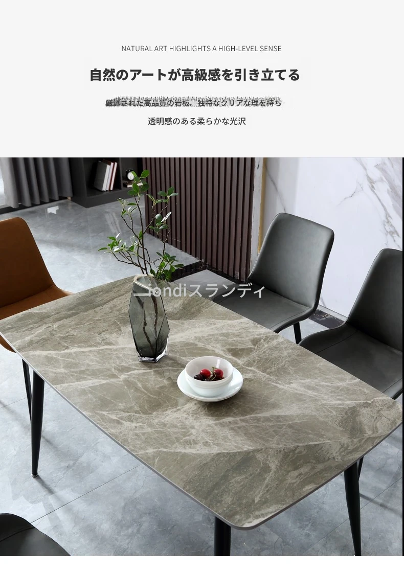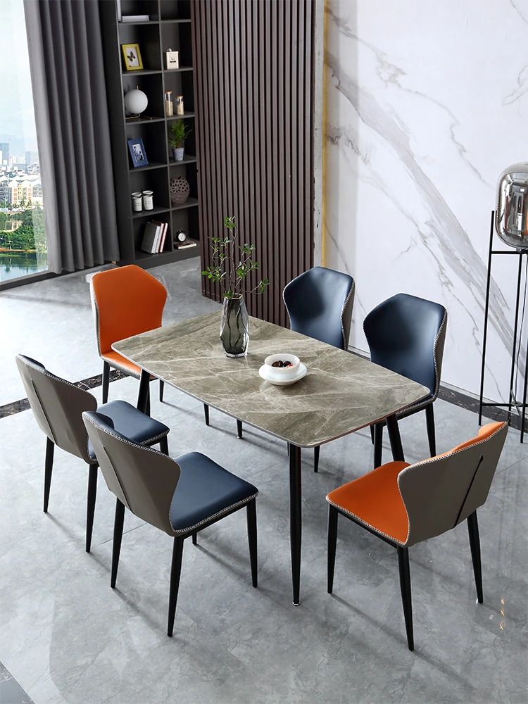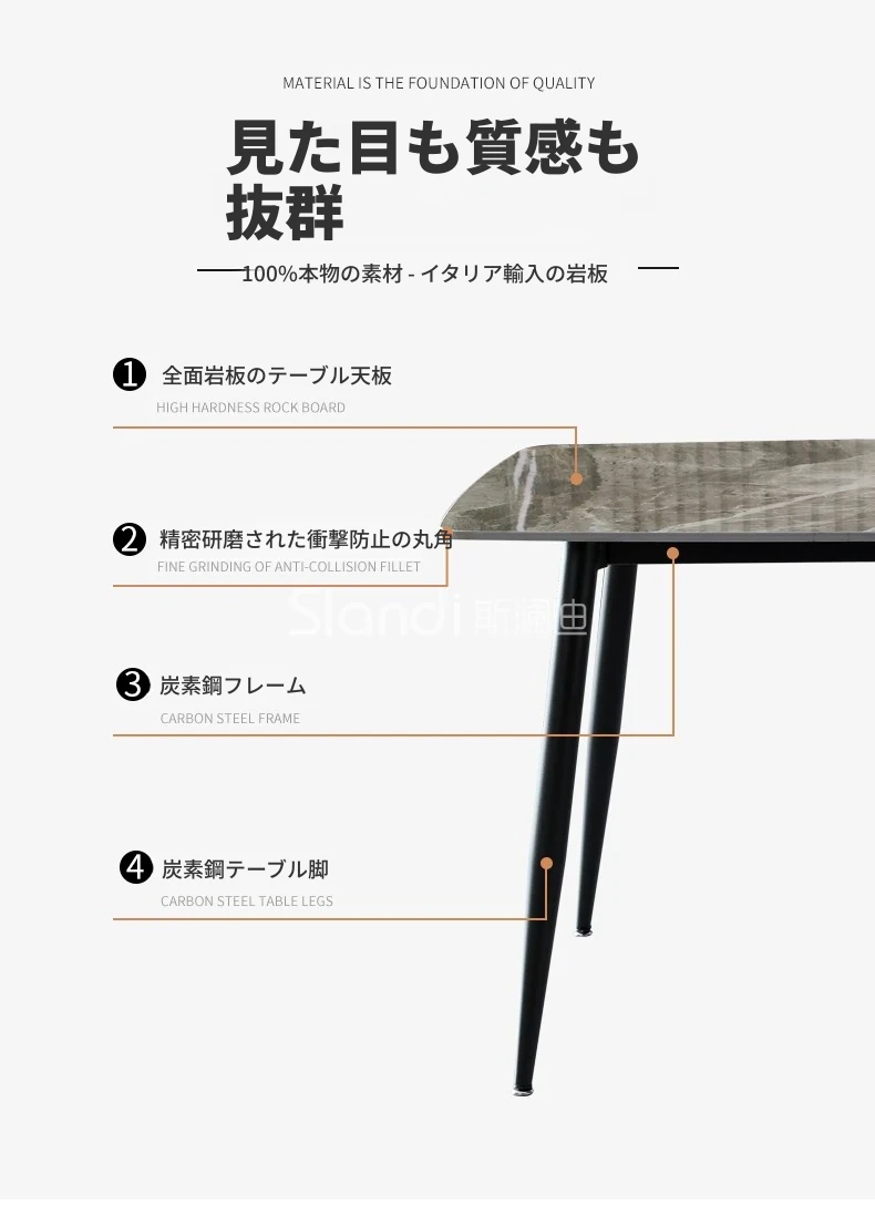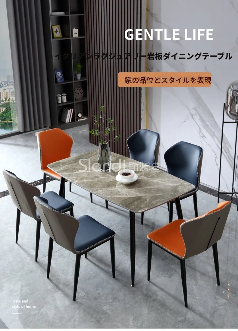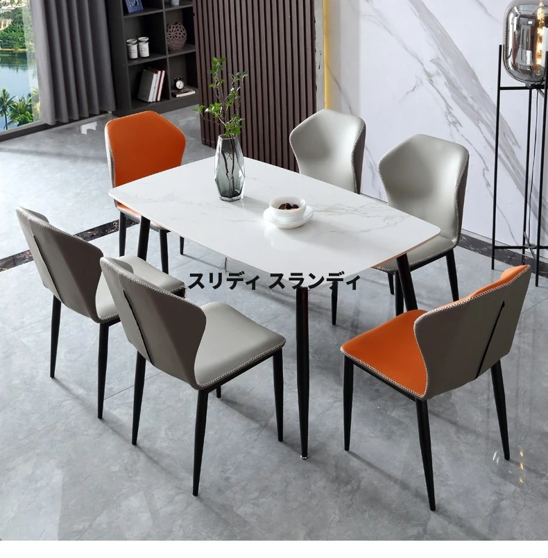 イタリアンラグジュアリー風の小型住宅向け、スタイリッシュな長方形テーブルと椅子のセット。アルミ合金製でモダンなデザイン、狭いスペースにもぴったり!優雅な食事時間を演出します。