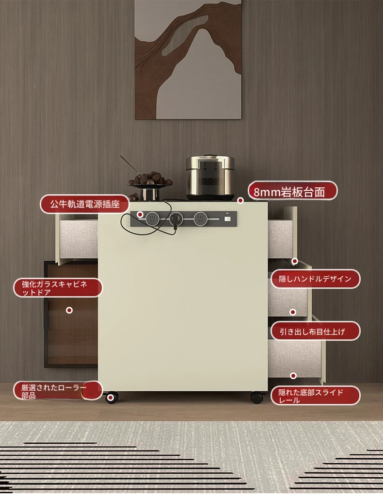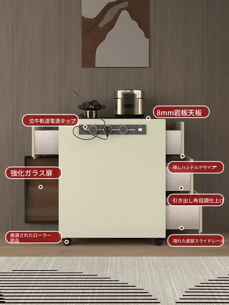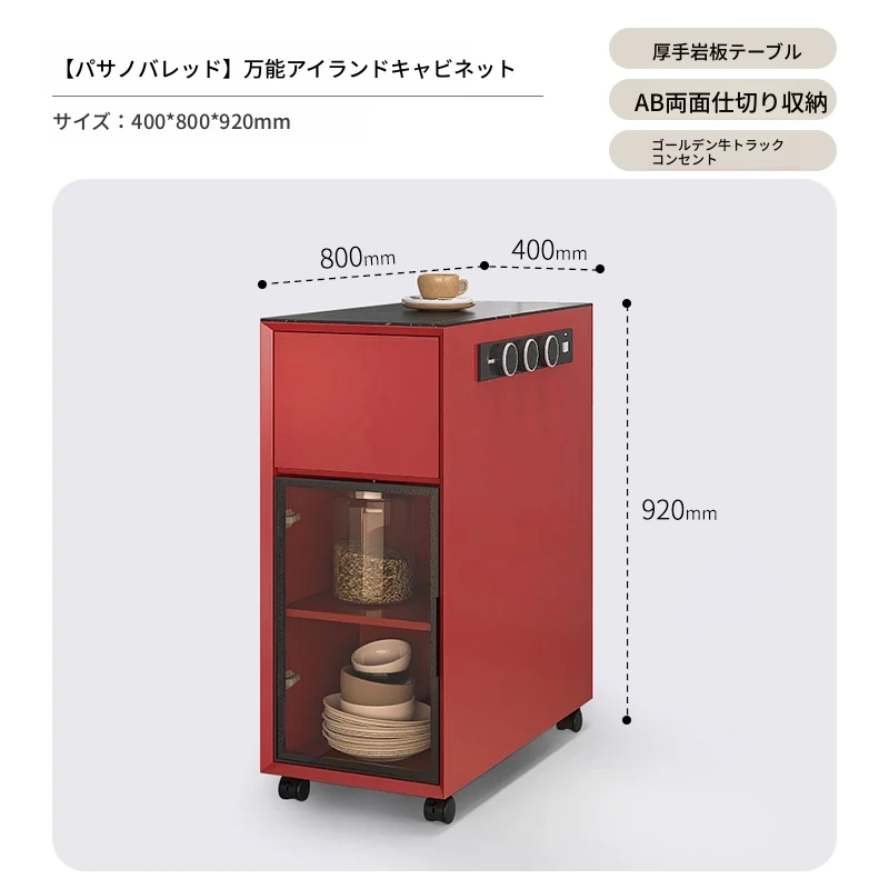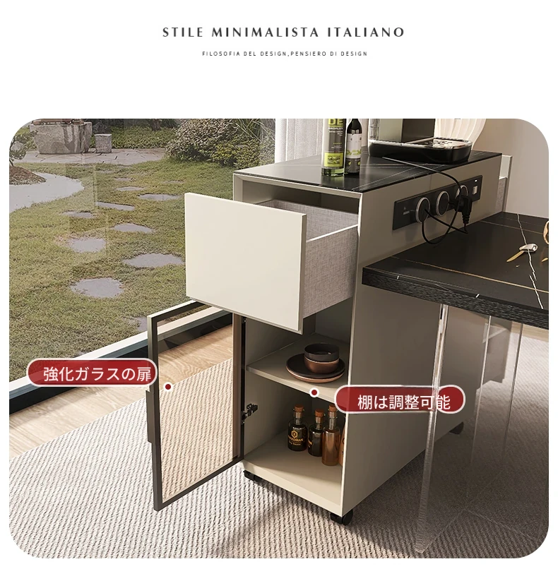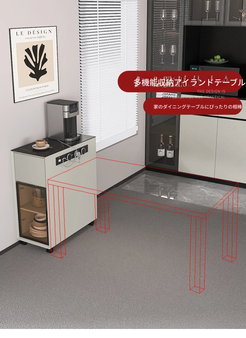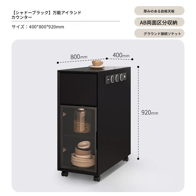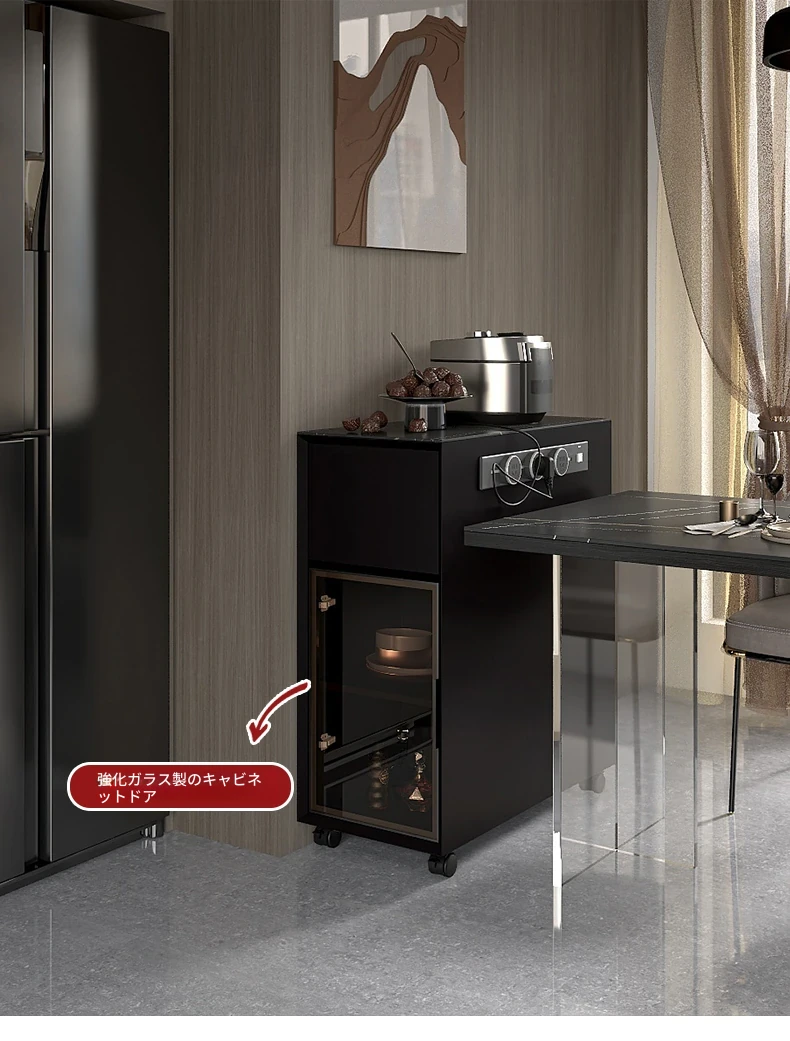 シンプルで移動可能なロックボードアイランドテーブル 小型住宅向けの収納付きダイニングサイドキャビネット 壁沿いに設置できるスリムなティーキャビネット