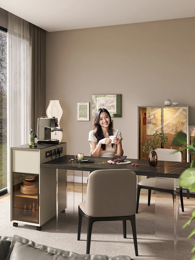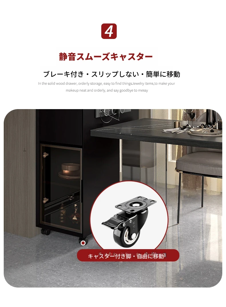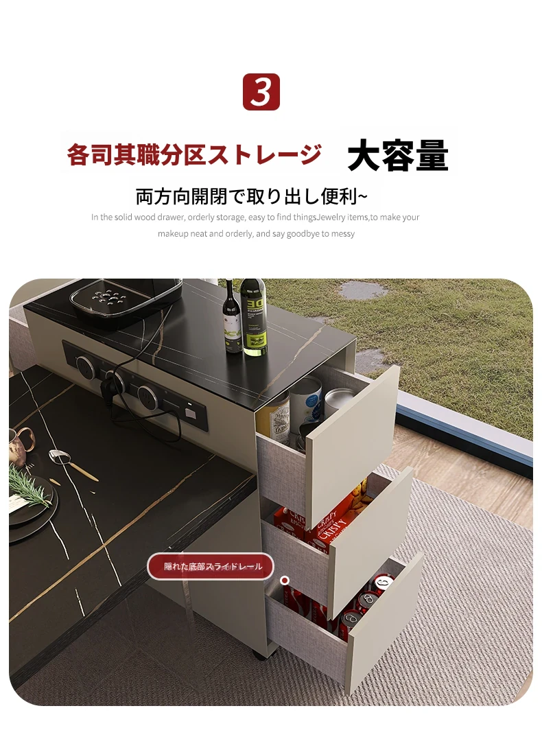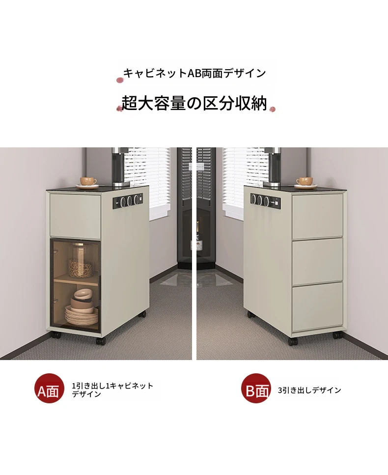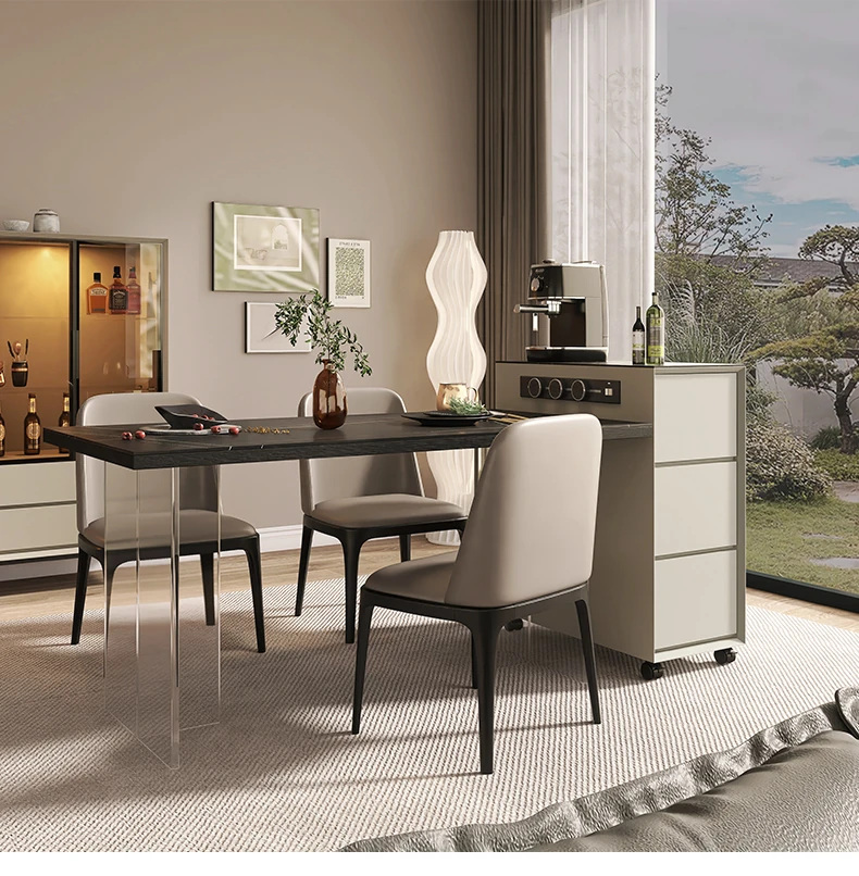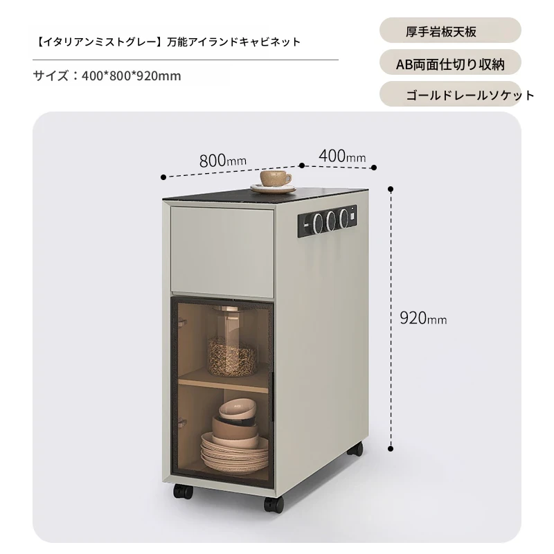 シンプルで移動可能なロックボードアイランドテーブル 小型住宅向けの収納付きダイニングサイドキャビネット 壁沿いに設置できるスリムなティーキャビネット