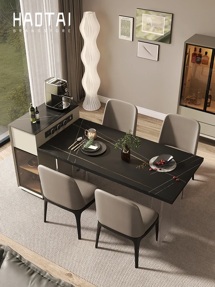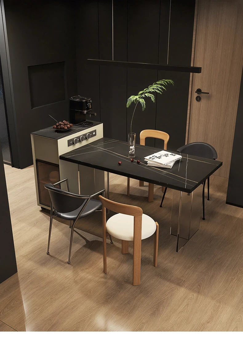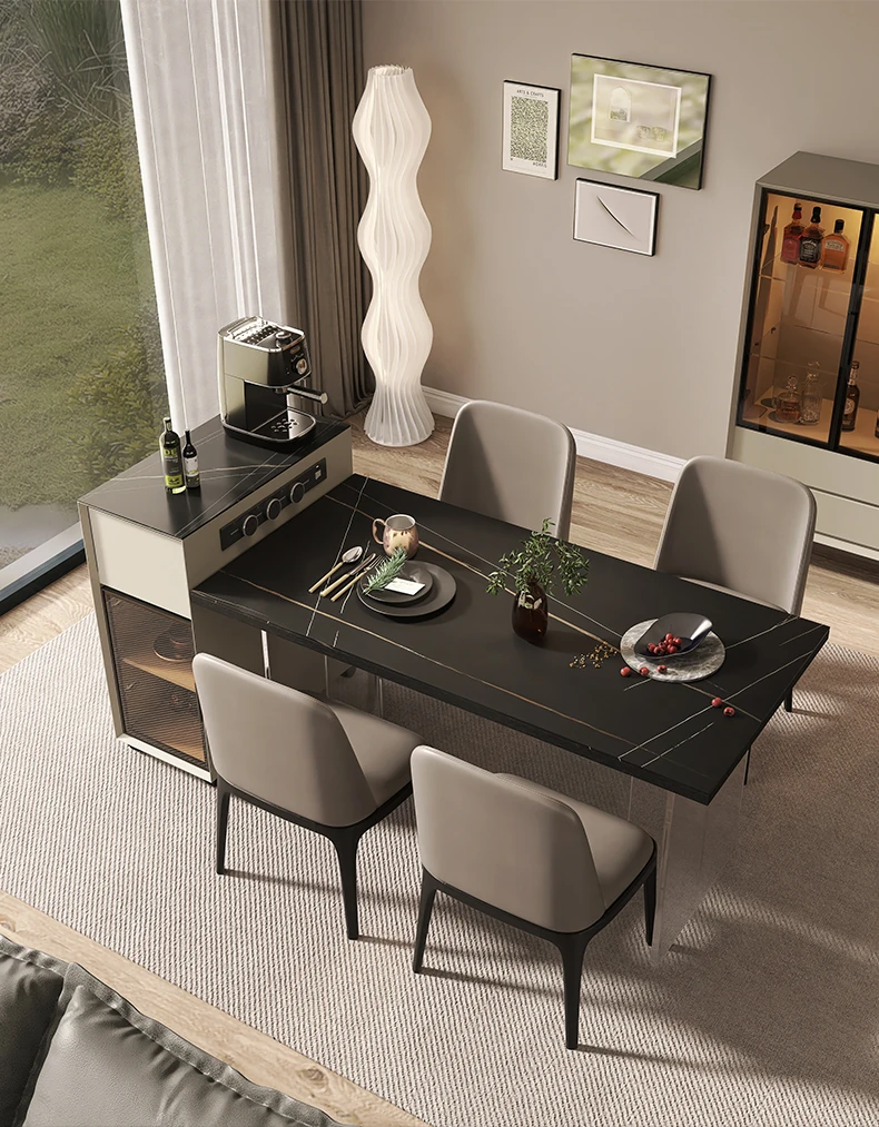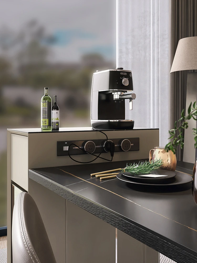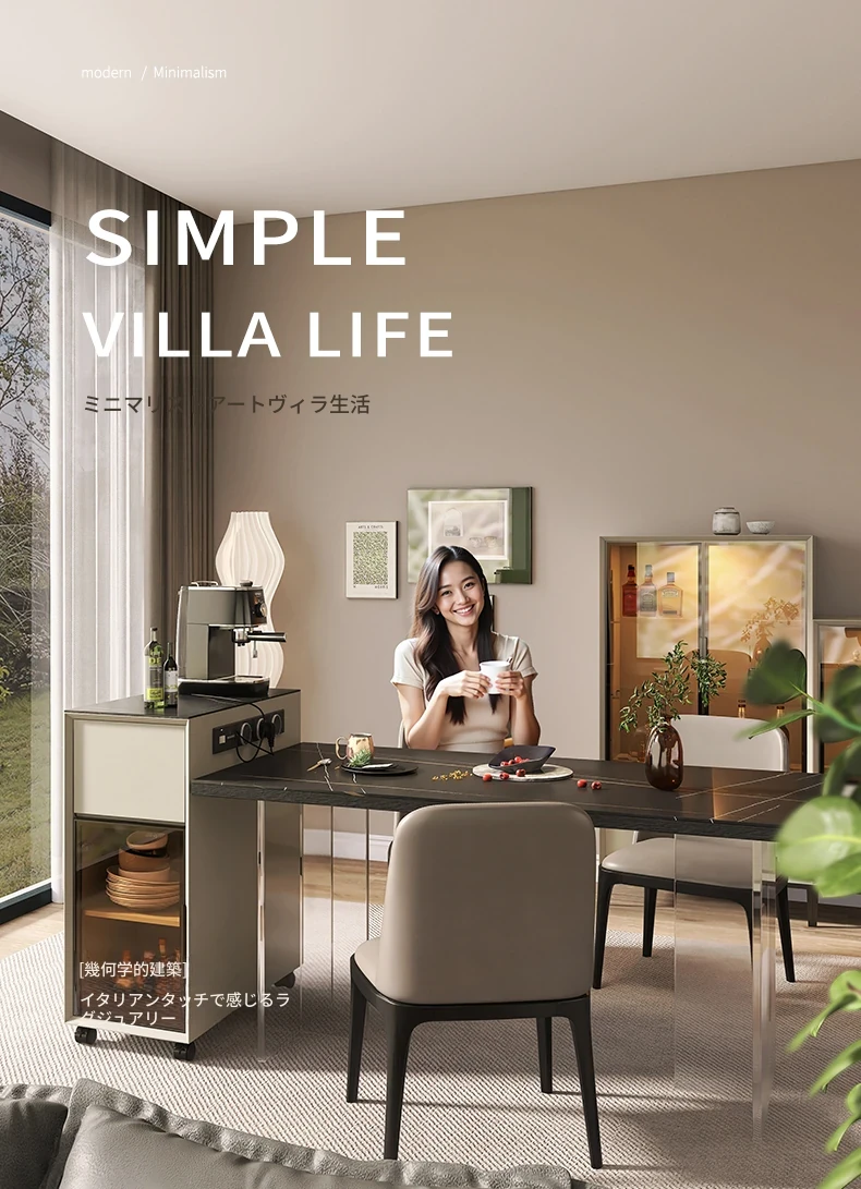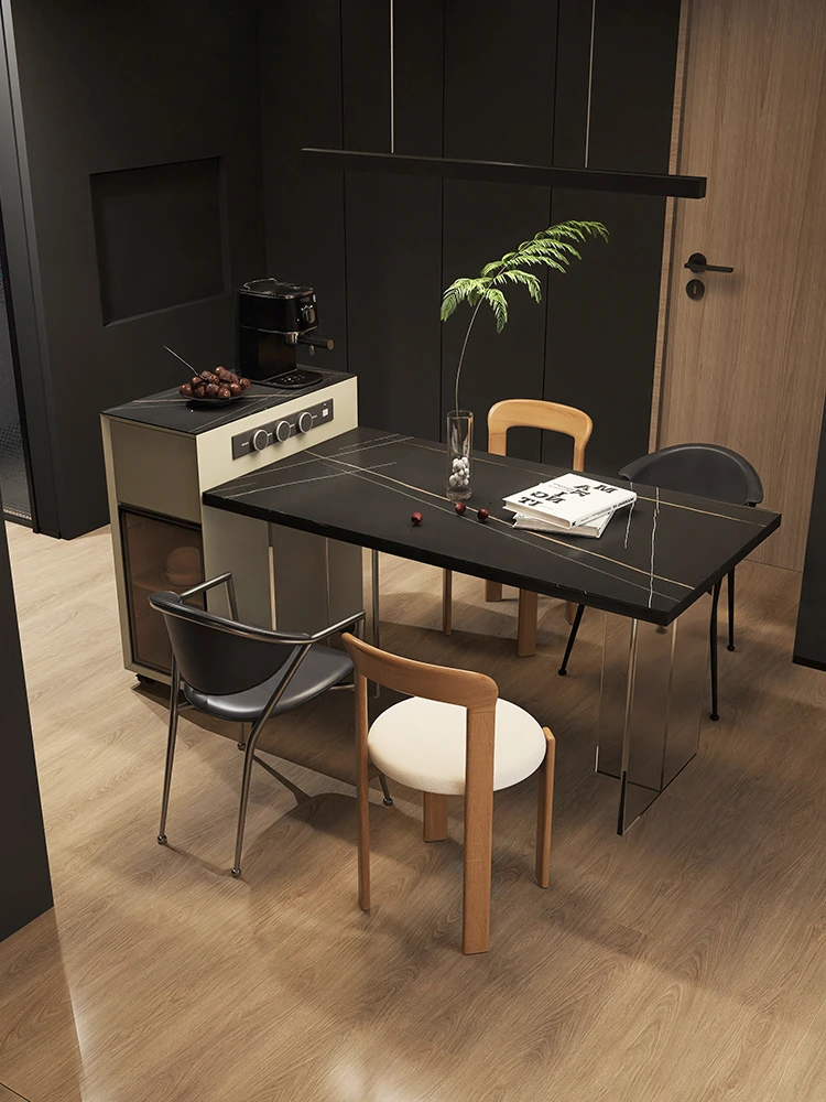 シンプルで移動可能なロックボードアイランドテーブル 小型住宅向けの収納付きダイニングサイドキャビネット 壁沿いに設置できるスリムなティーキャビネット