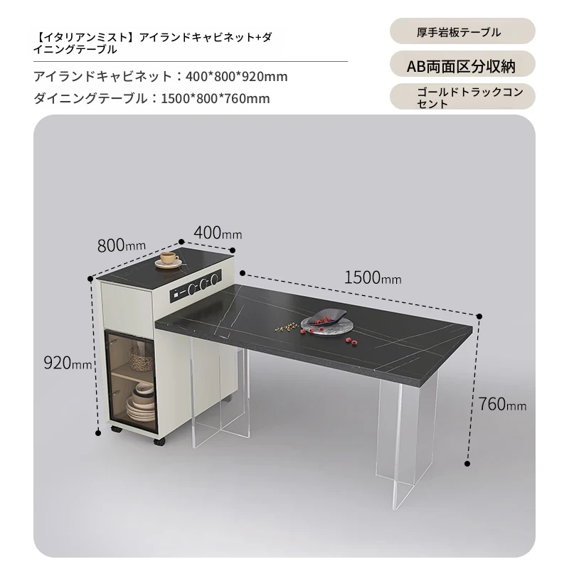 アイランドキャビネット+ダイニングテーブル【イタリアンミ灰】