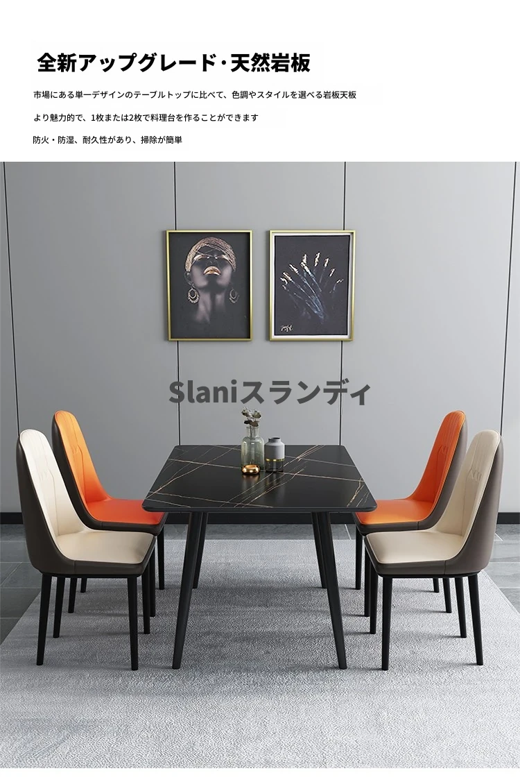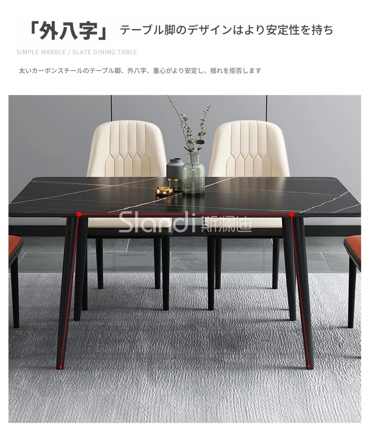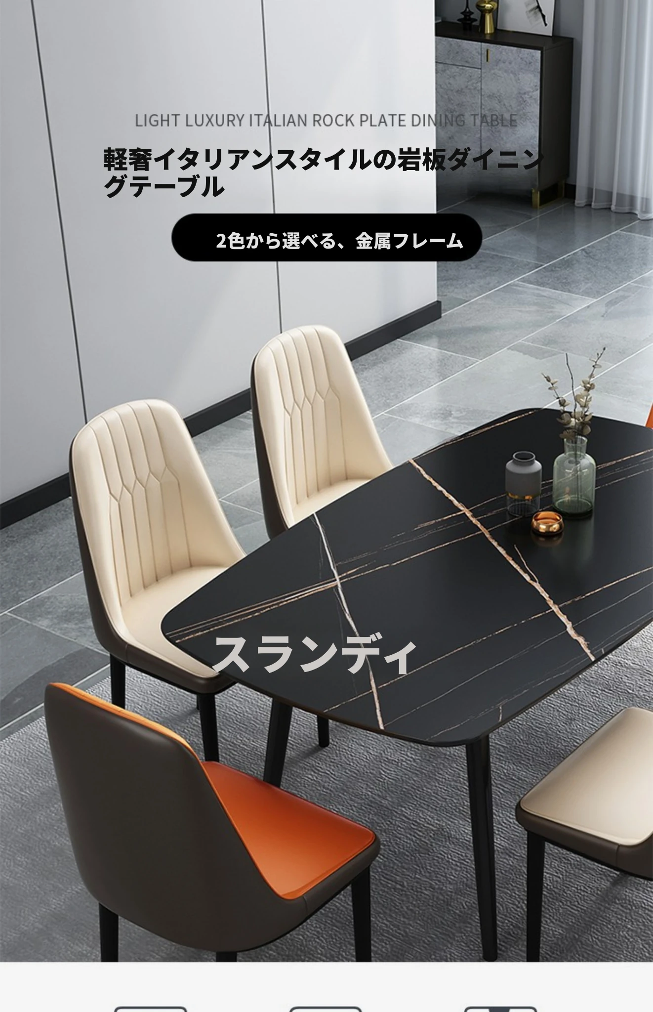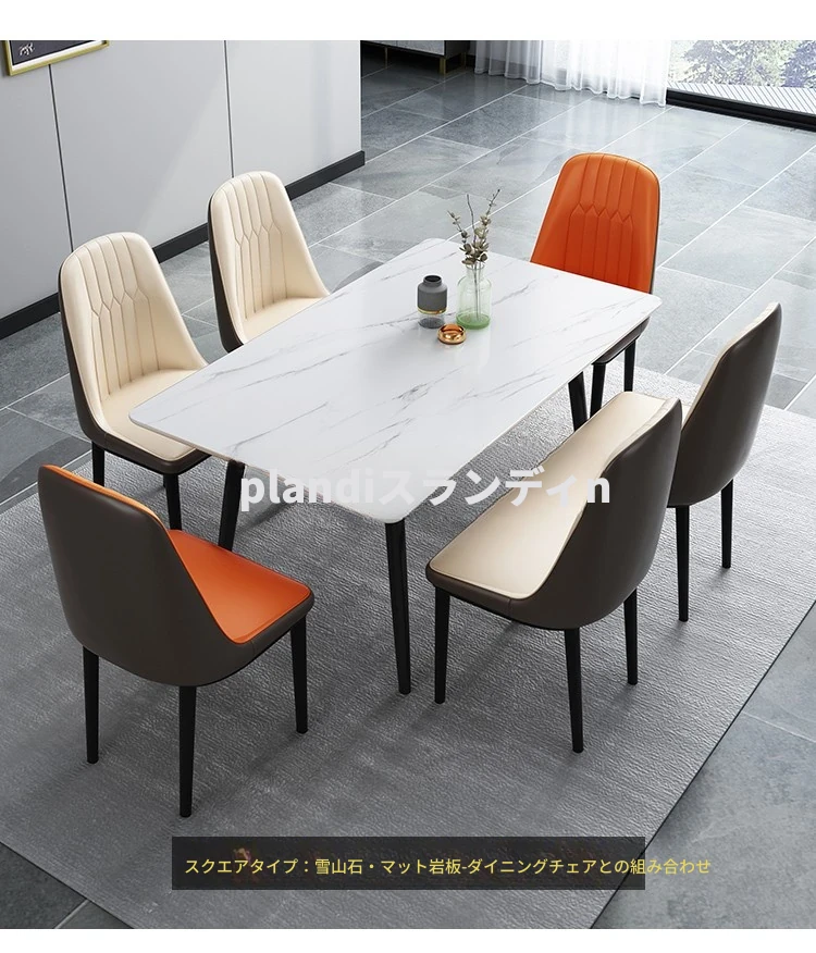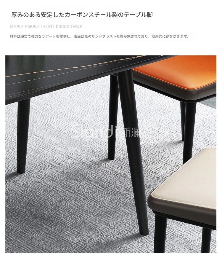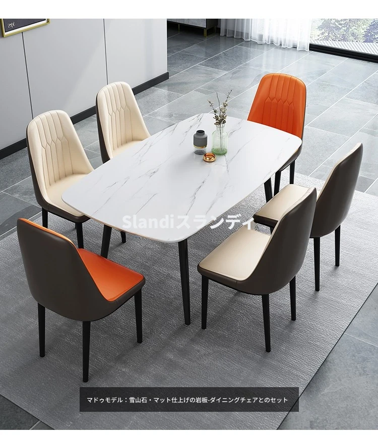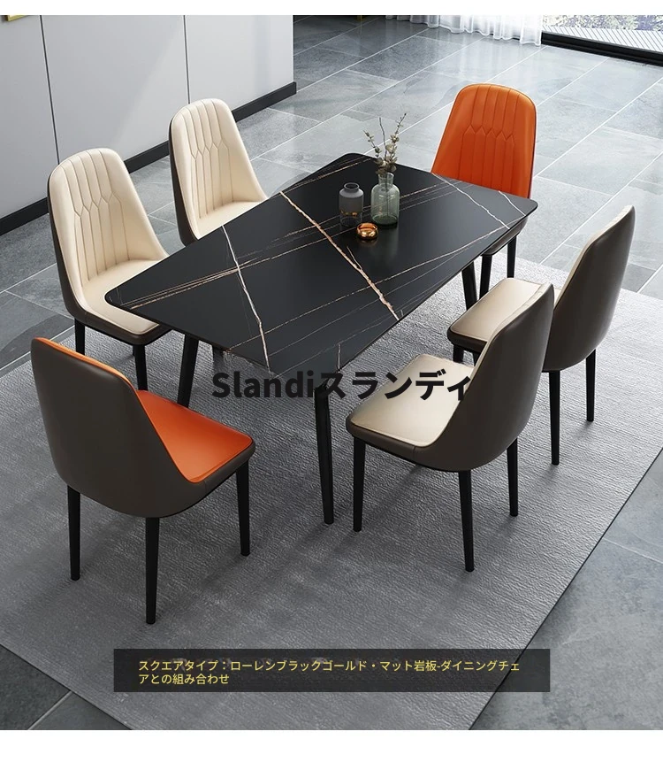 現代的でシンプルな金属製長方形ダイニングテーブルとチェアセット|二色のコンパクトな方形テーブル|小さなお部屋に最適な経済的な岩板製ダイニングテーブル