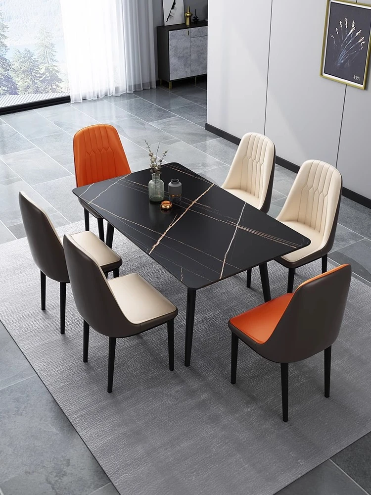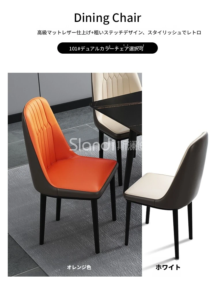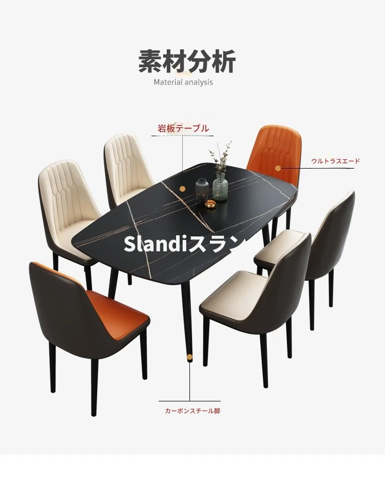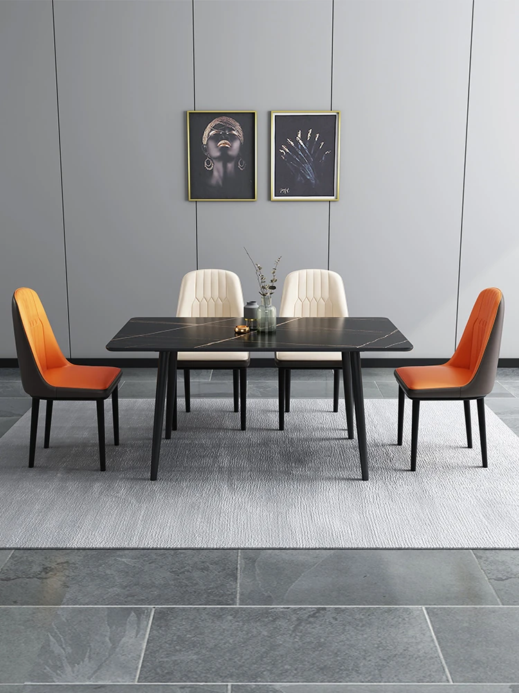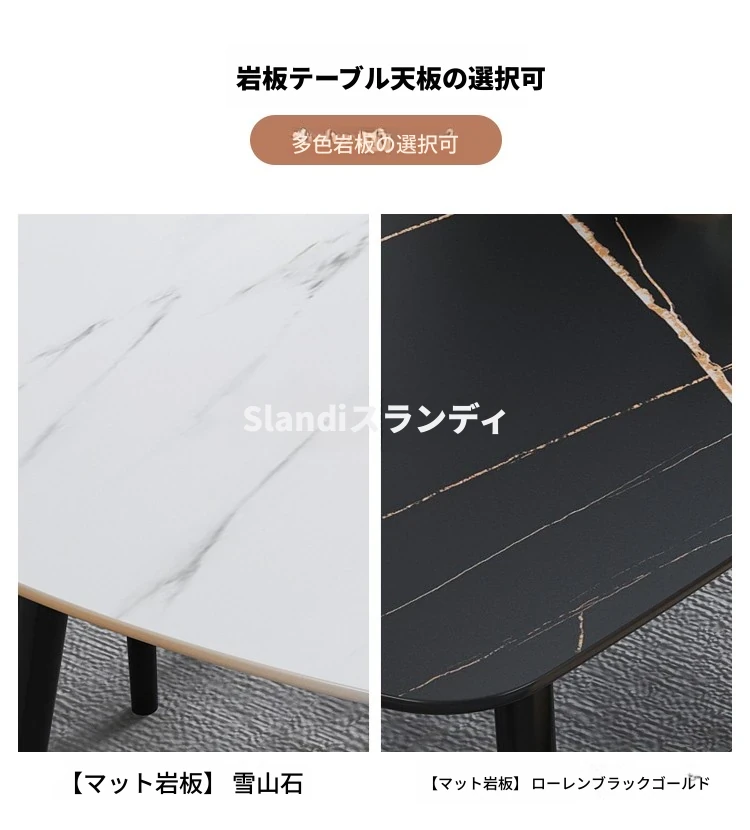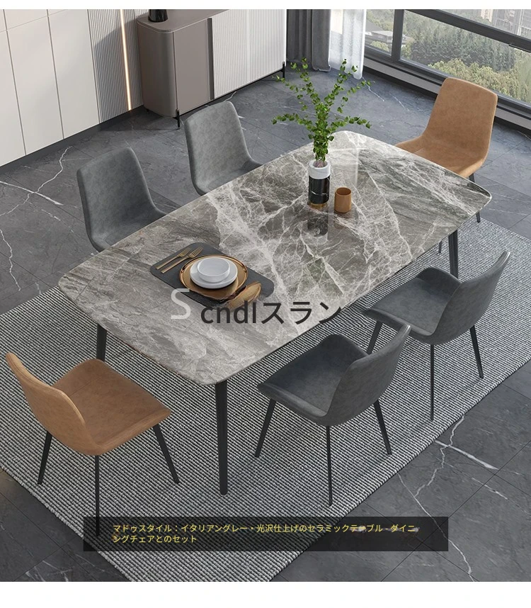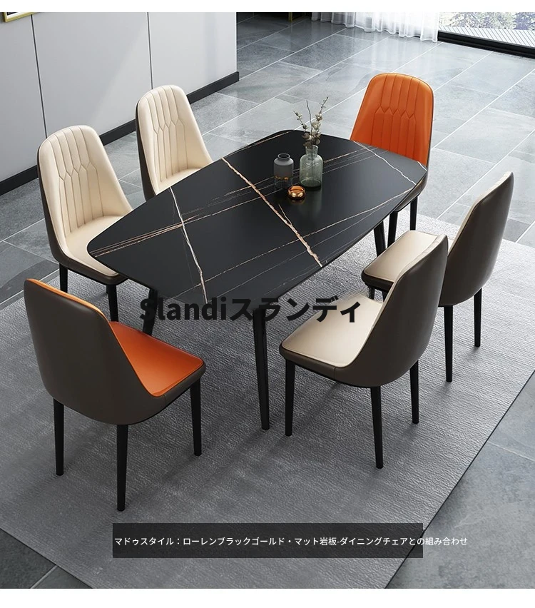 現代的でシンプルな金属製長方形ダイニングテーブルとチェアセット|二色のコンパクトな方形テーブル|小さなお部屋に最適な経済的な岩板製ダイニングテーブル