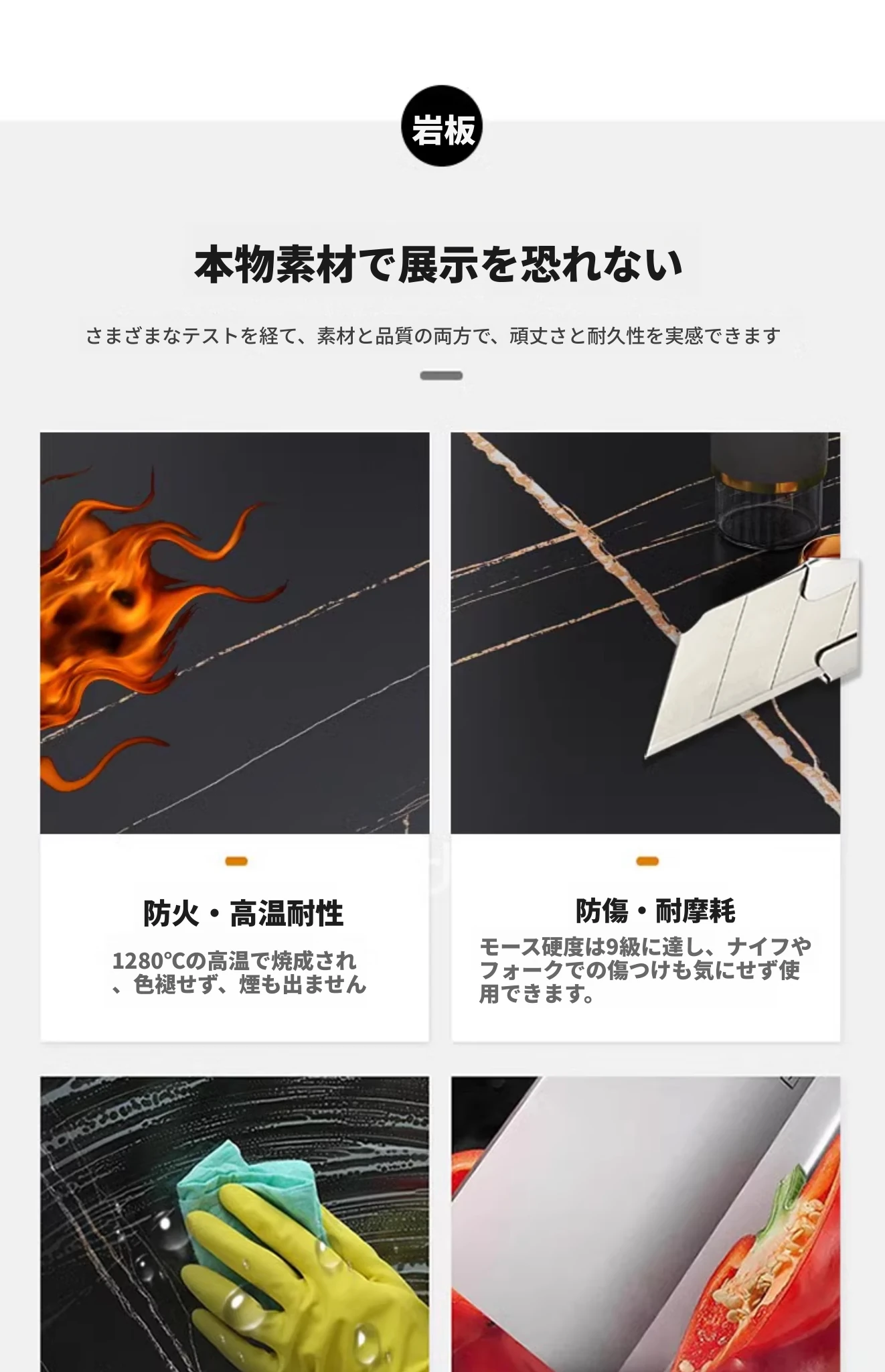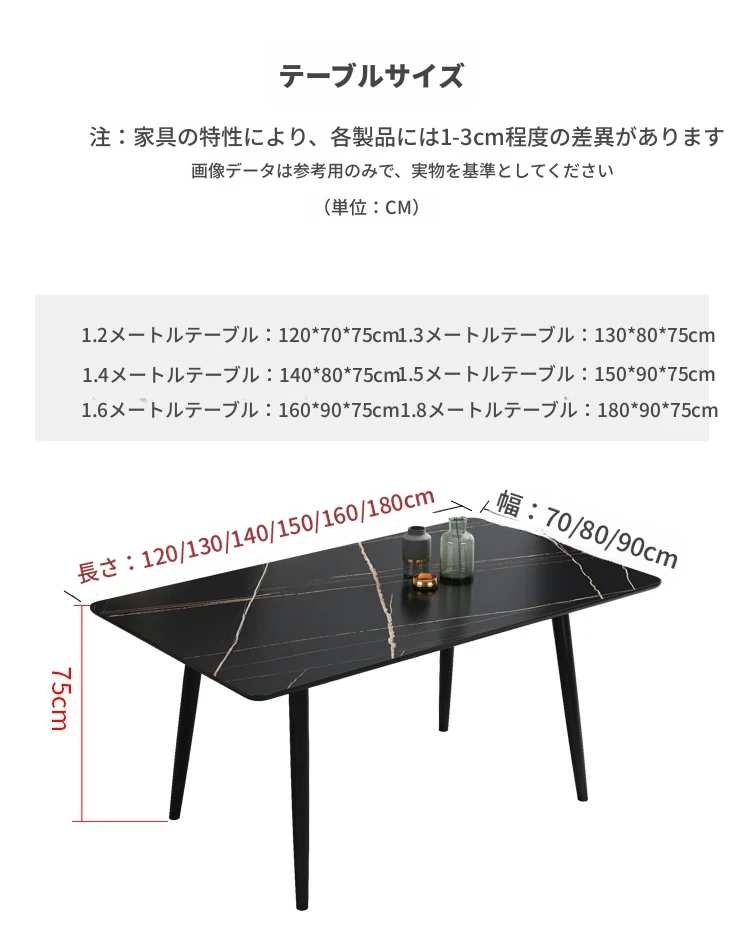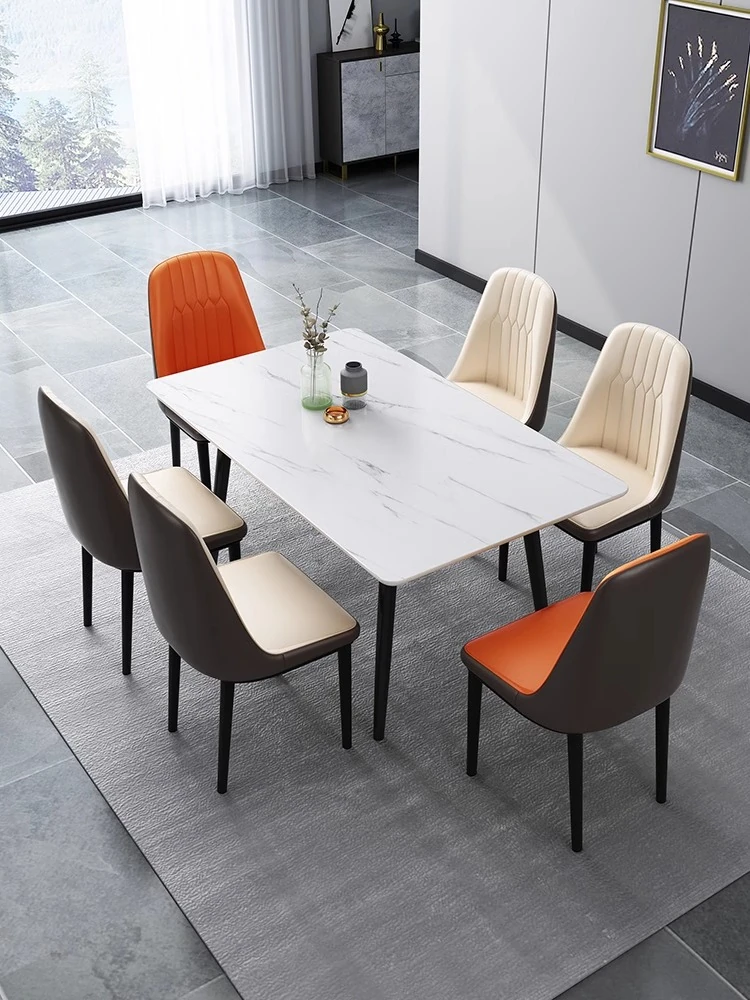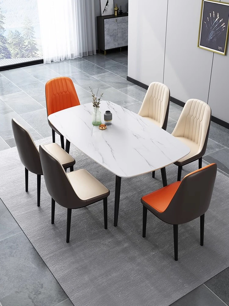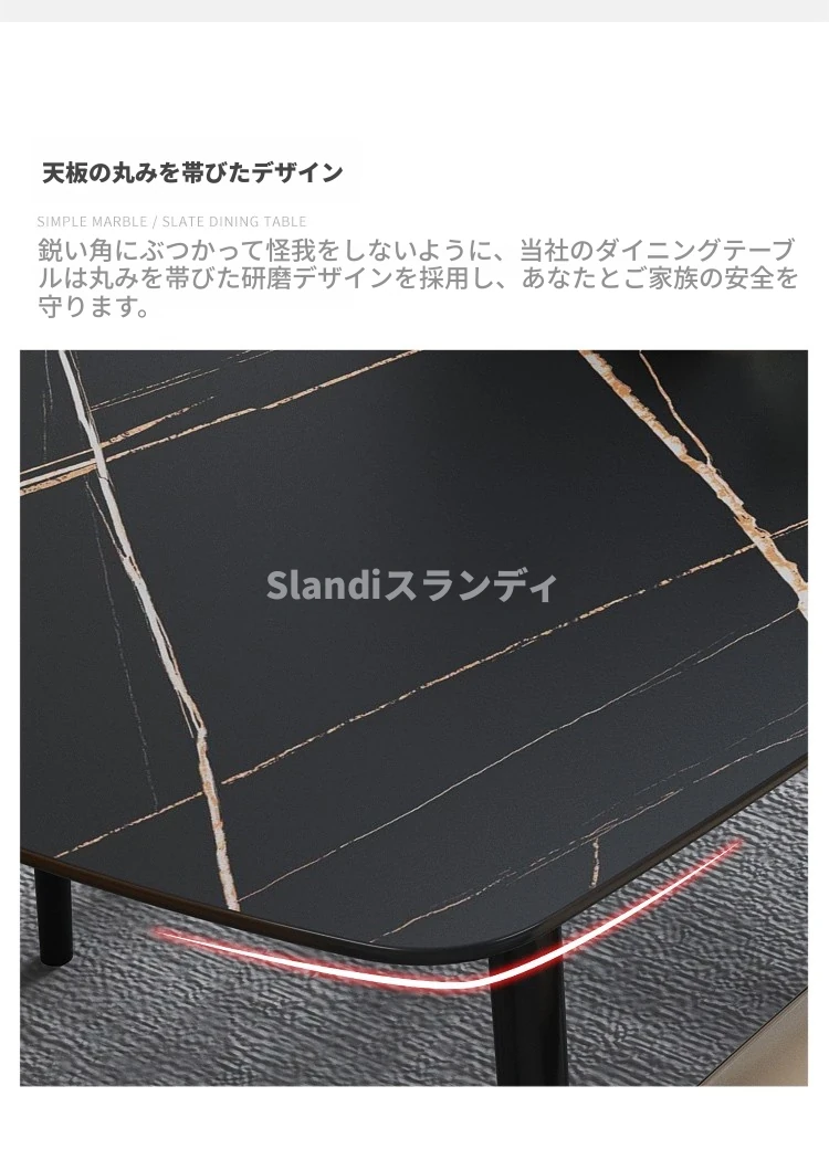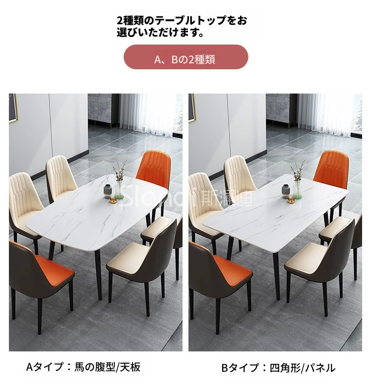現代的でシンプルな金属製長方形ダイニングテーブルとチェアセット|二色のコンパクトな方形テーブル|小さなお部屋に最適な経済的な岩板製ダイニングテーブル