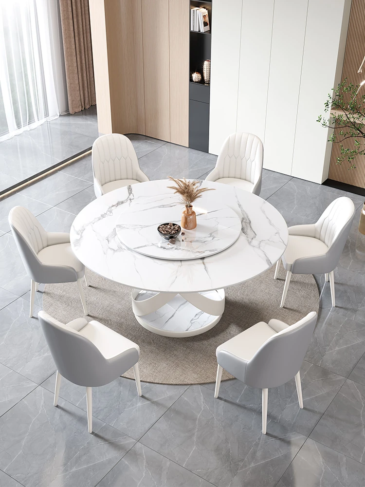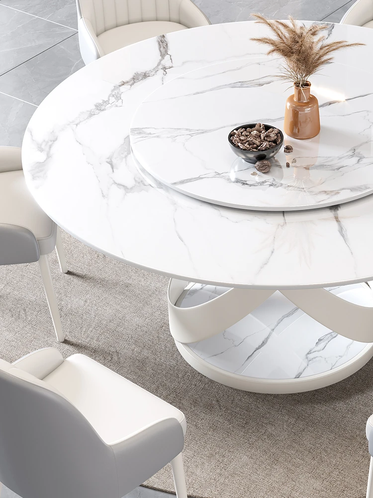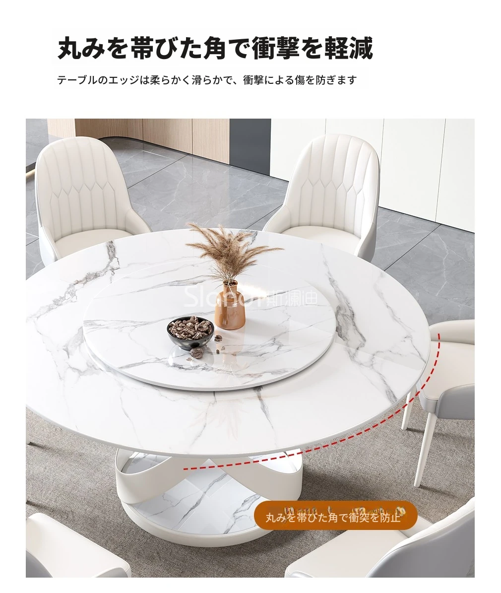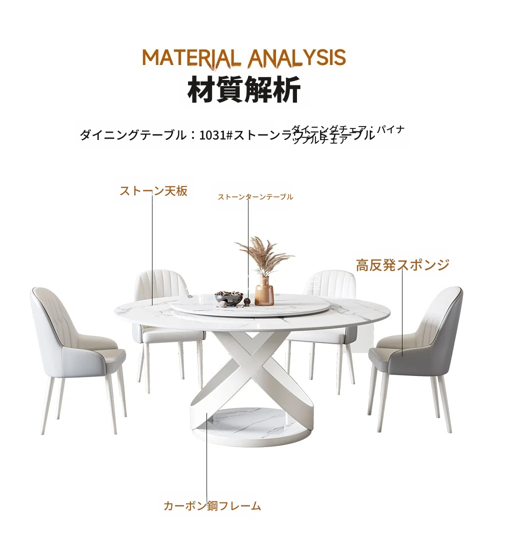 新作!シンプルで洗練されたラウンド大理石ダイニングテーブルセット - モダンなホテルやレストランに最適な回転式デザイン!快適さとスタイルを両立した一品。