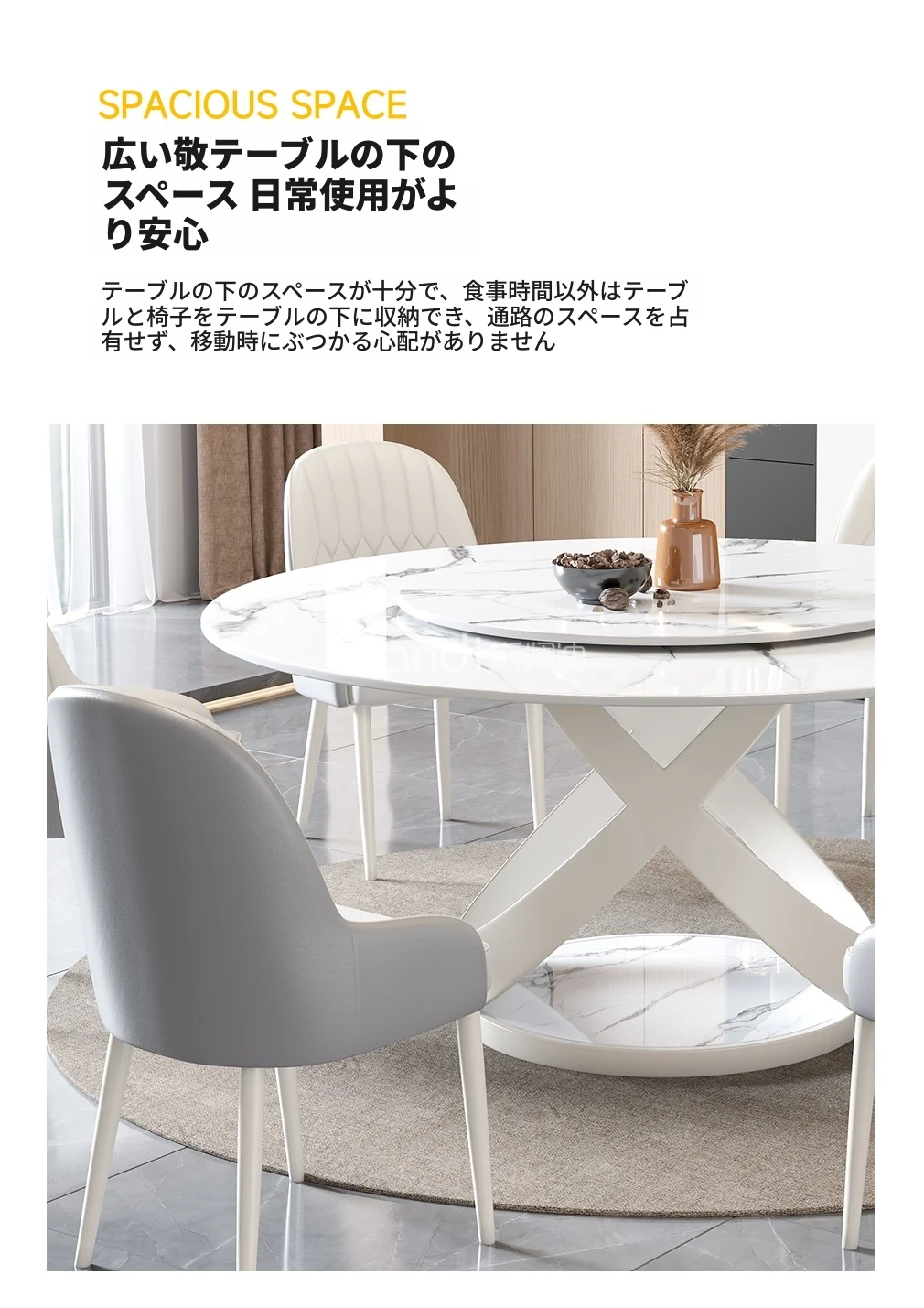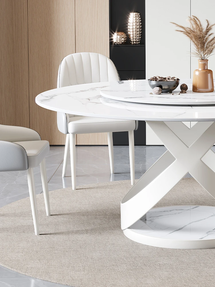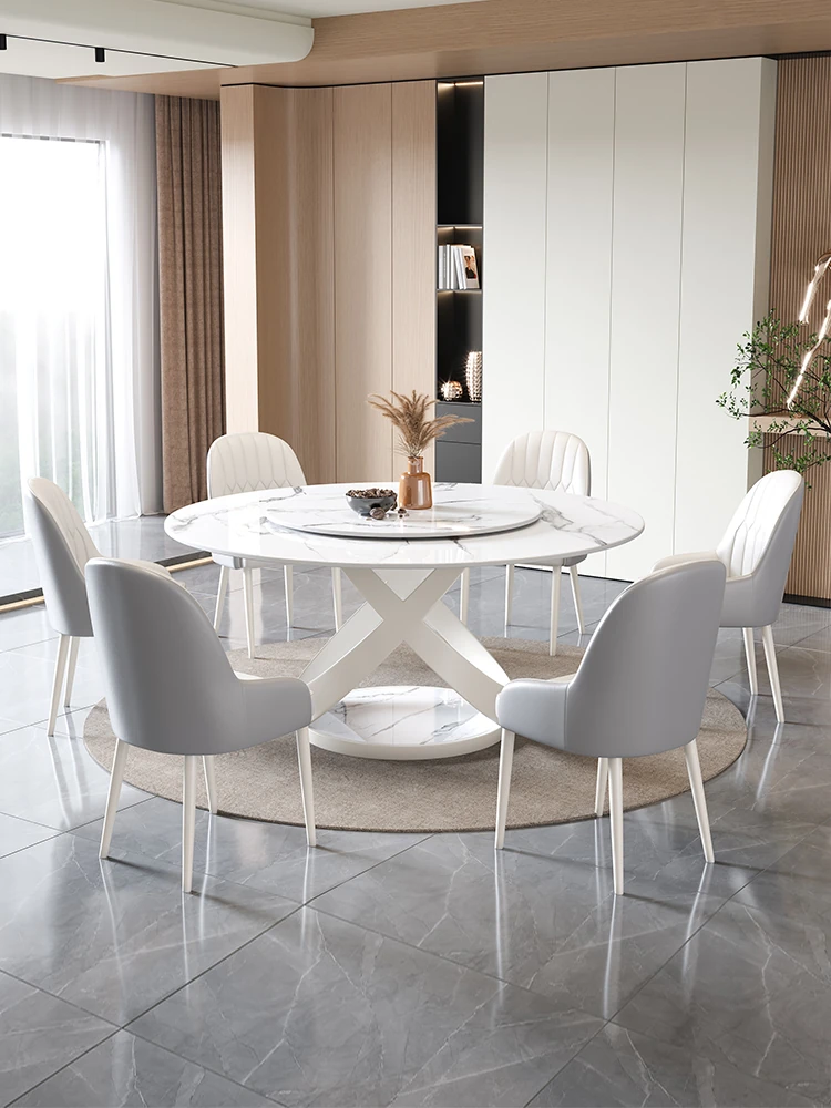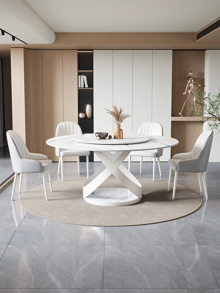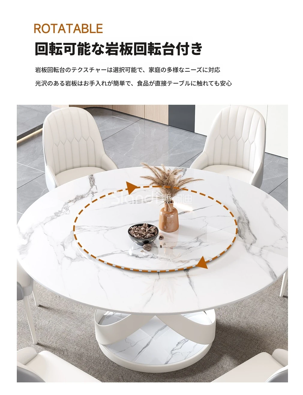 新作!シンプルで洗練されたラウンド大理石ダイニングテーブルセット - モダンなホテルやレストランに最適な回転式デザイン!快適さとスタイルを両立した一品。